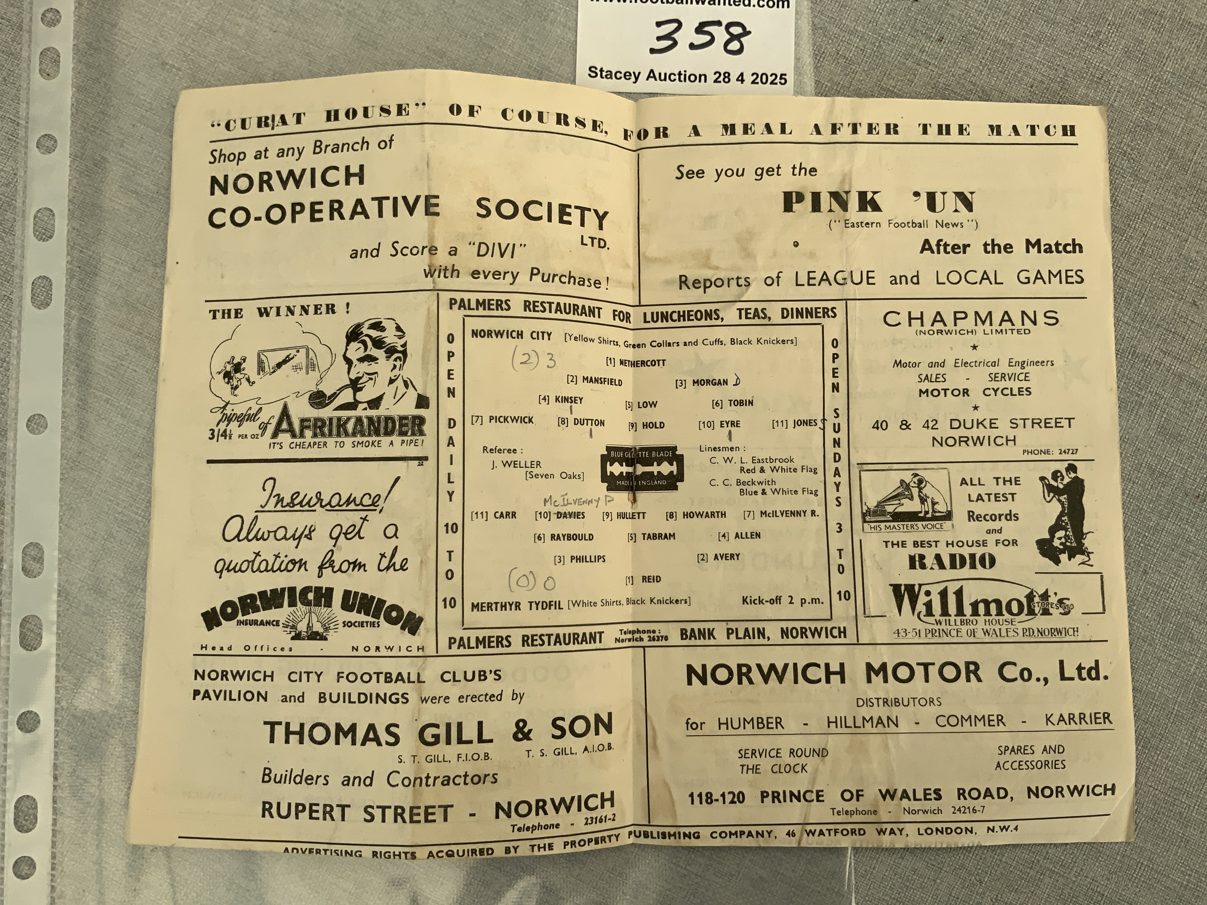47/48 Norwich City v Merthyr Tydfil FA Cup Football Programme: Good condition with score to team page.