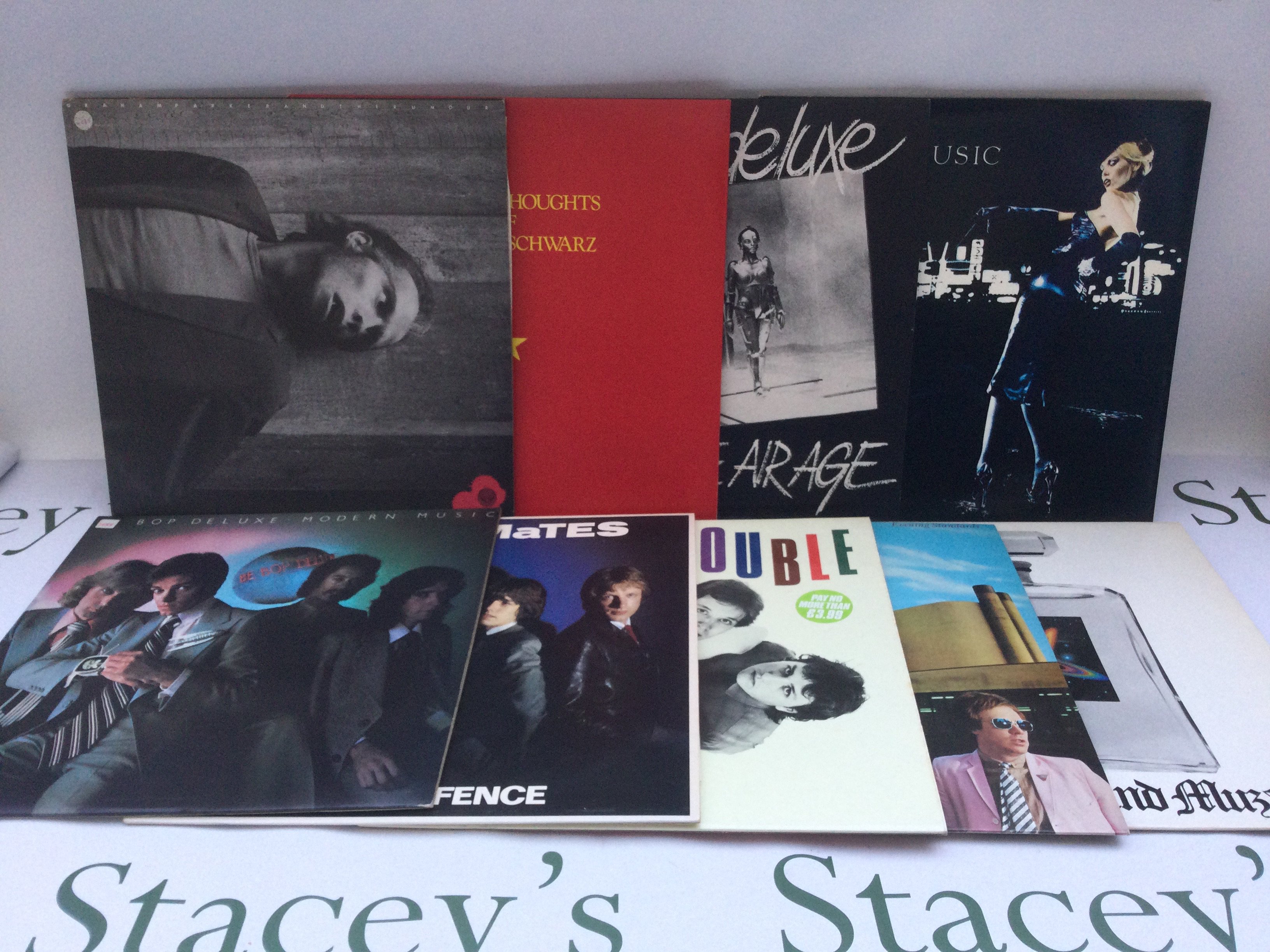 Two bags containing 20 rock and new wave LPs and 12" singles by various artists including Dr Feelgood, Roxy Music, Be Bop Deluxe and others. Includes a Roxy Music promo disc.