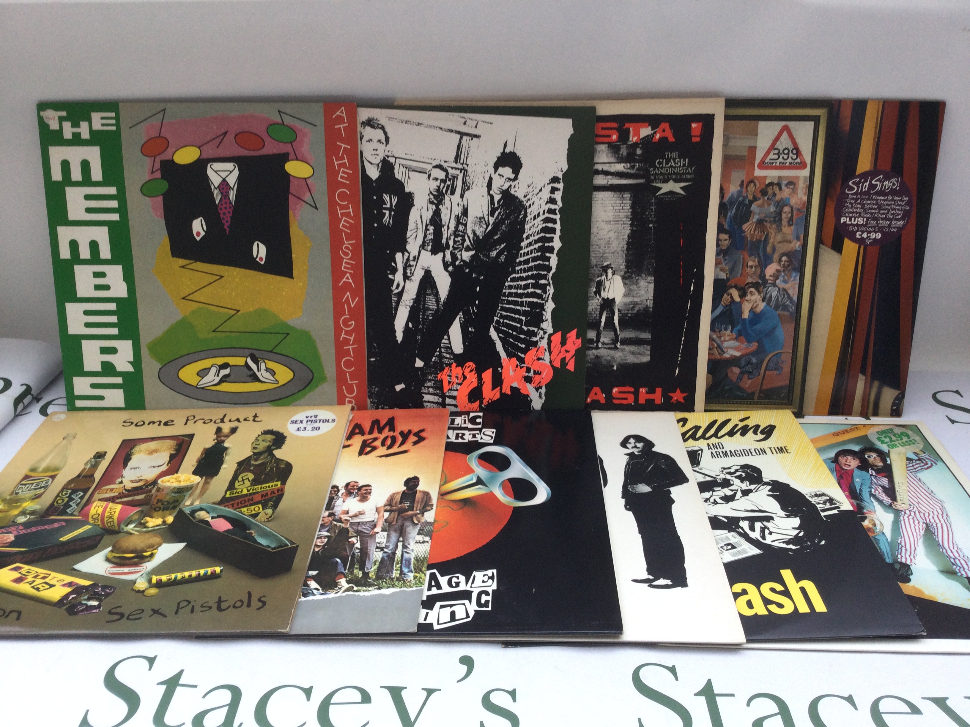 Two bags containing 21 punk rock LPs and 12" singles by various artists including Sex Pistols, The Clash, Buzzcocks and others. Includes two promo LP by The Tubes and The Dickies.