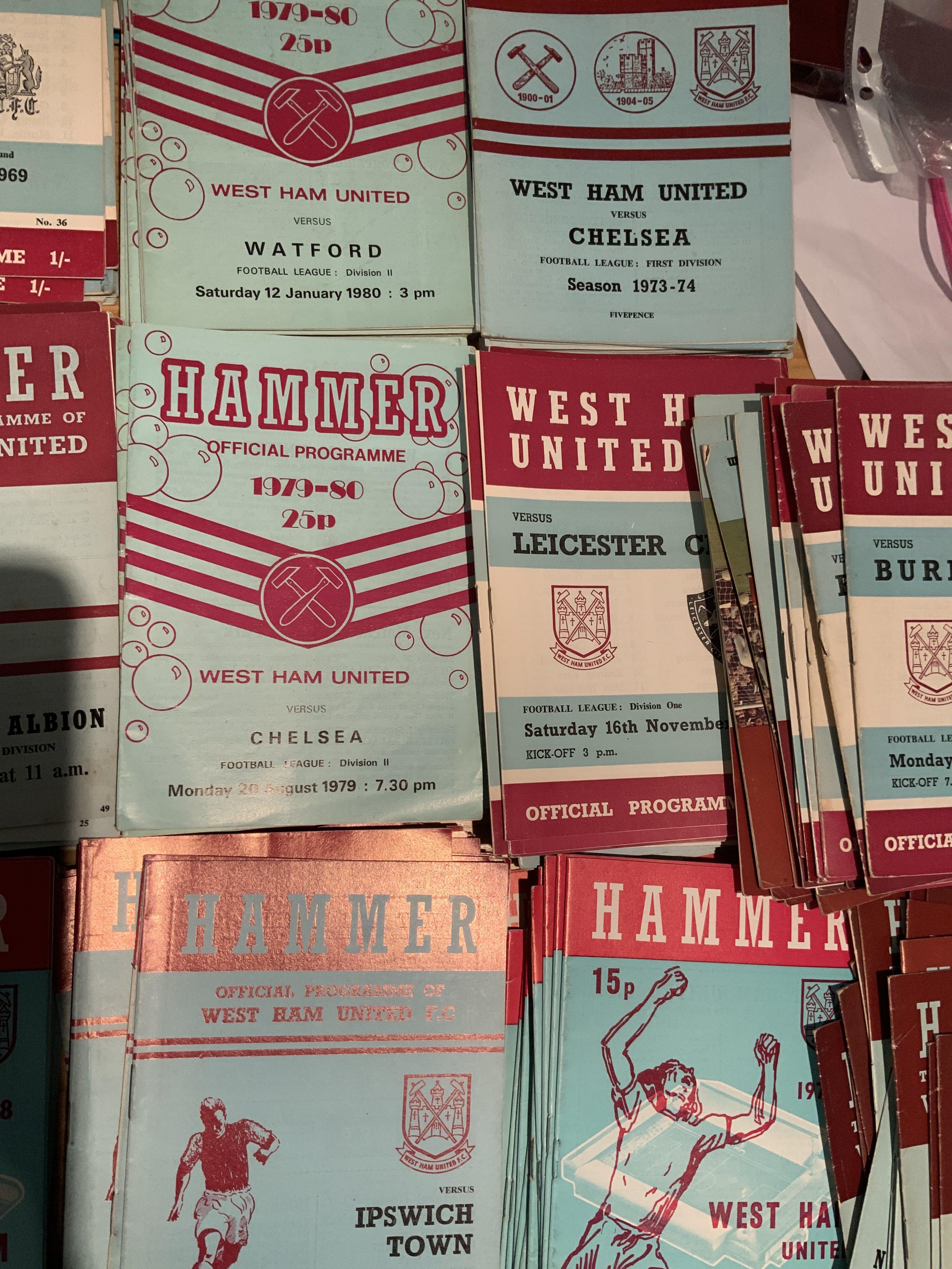 West Ham Home Football Programmes: From the 60s to the 80s in good condition with duplication. Quantity in large box.