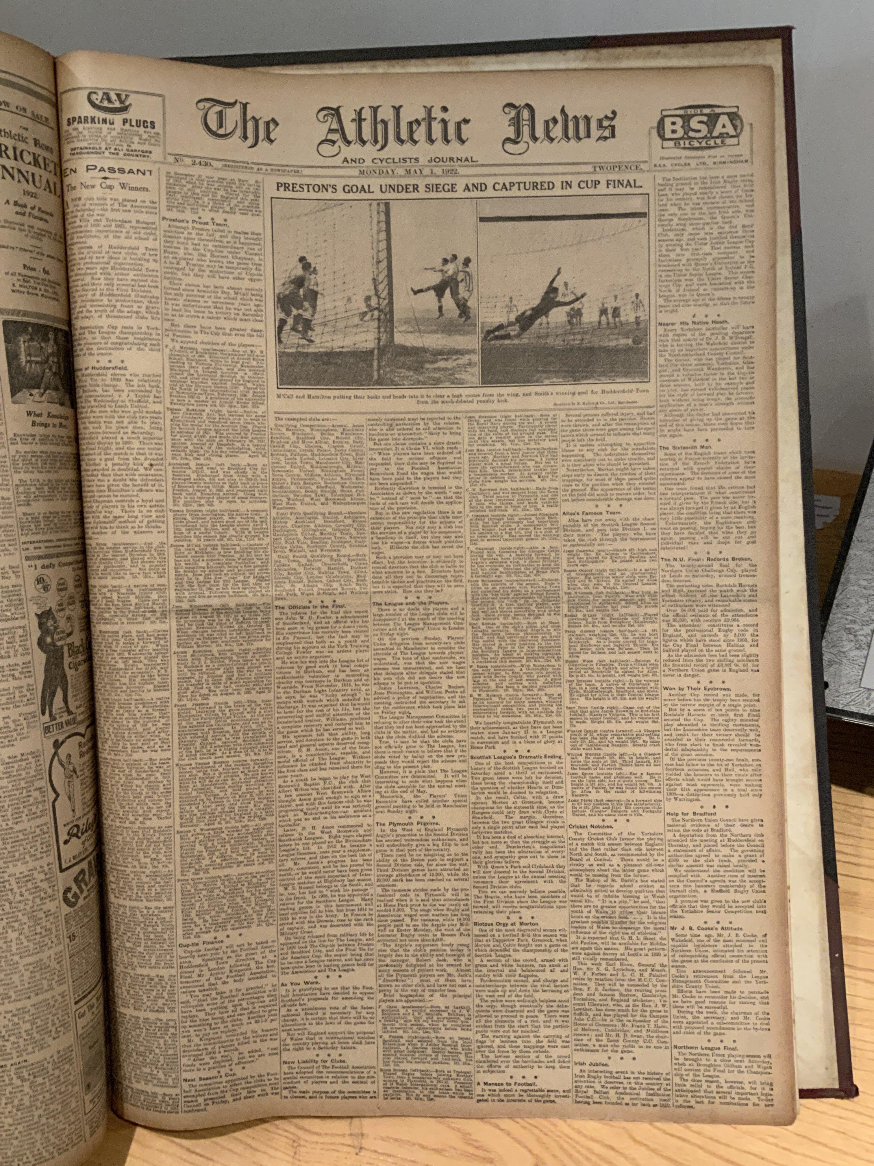 1921 - 1922 Athletic News Bound Volume Of Sport Magazines: From May 1921 to May 1922 and we believe this is a complete run of the weekly newspaper. Every volume covers football and other sports in the First World War. Includes Liverpool winning the league and Preston v Huddersfield FA Cup final 1922.