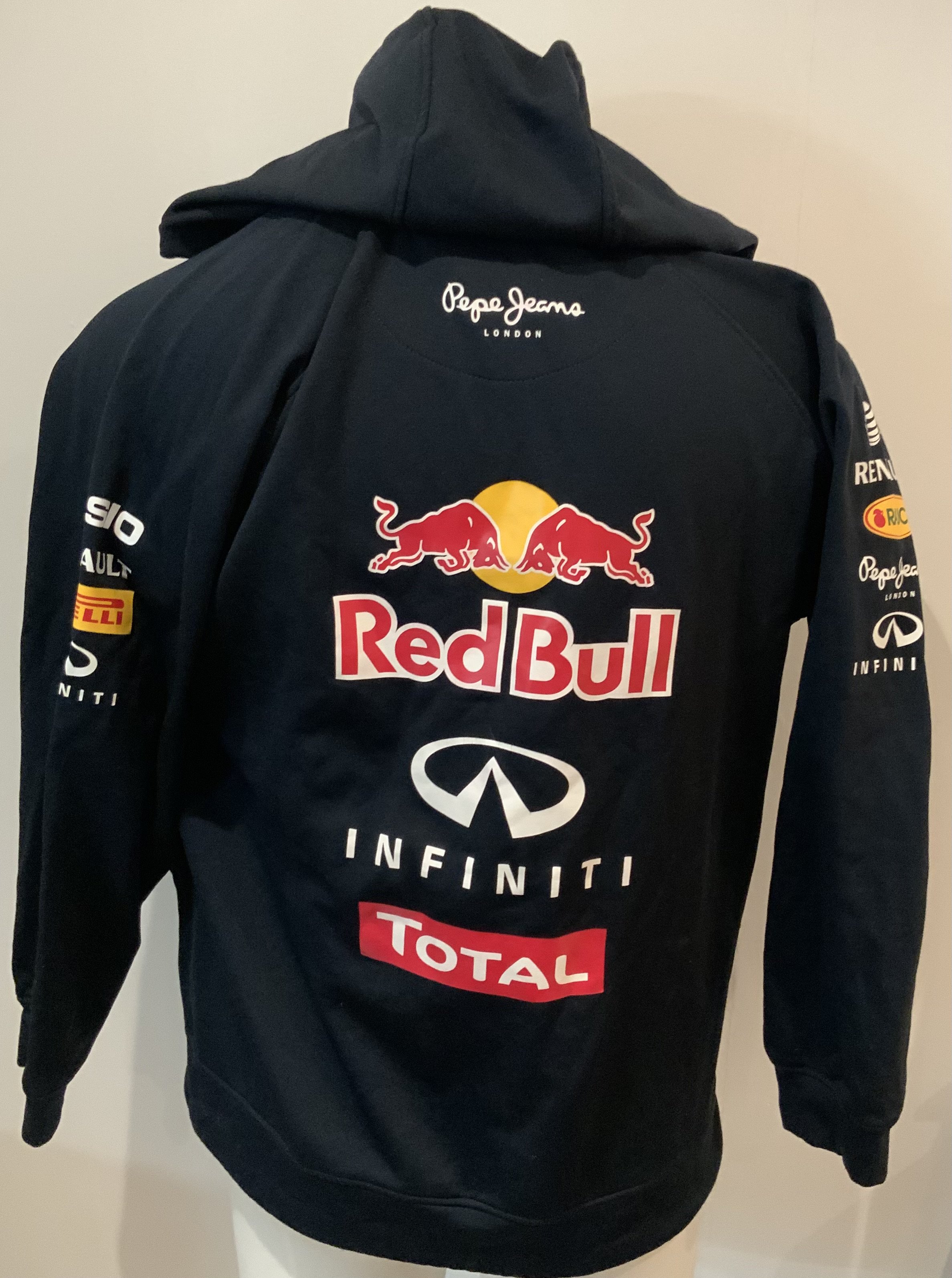 Red Bull Racing Motor Racing Sweatshirt: Unused XL hoody in navy with red trim. Advertising from Red Bull Pepe Jeans Total Geox Infiniti and Renault. Brand new condition without tags.