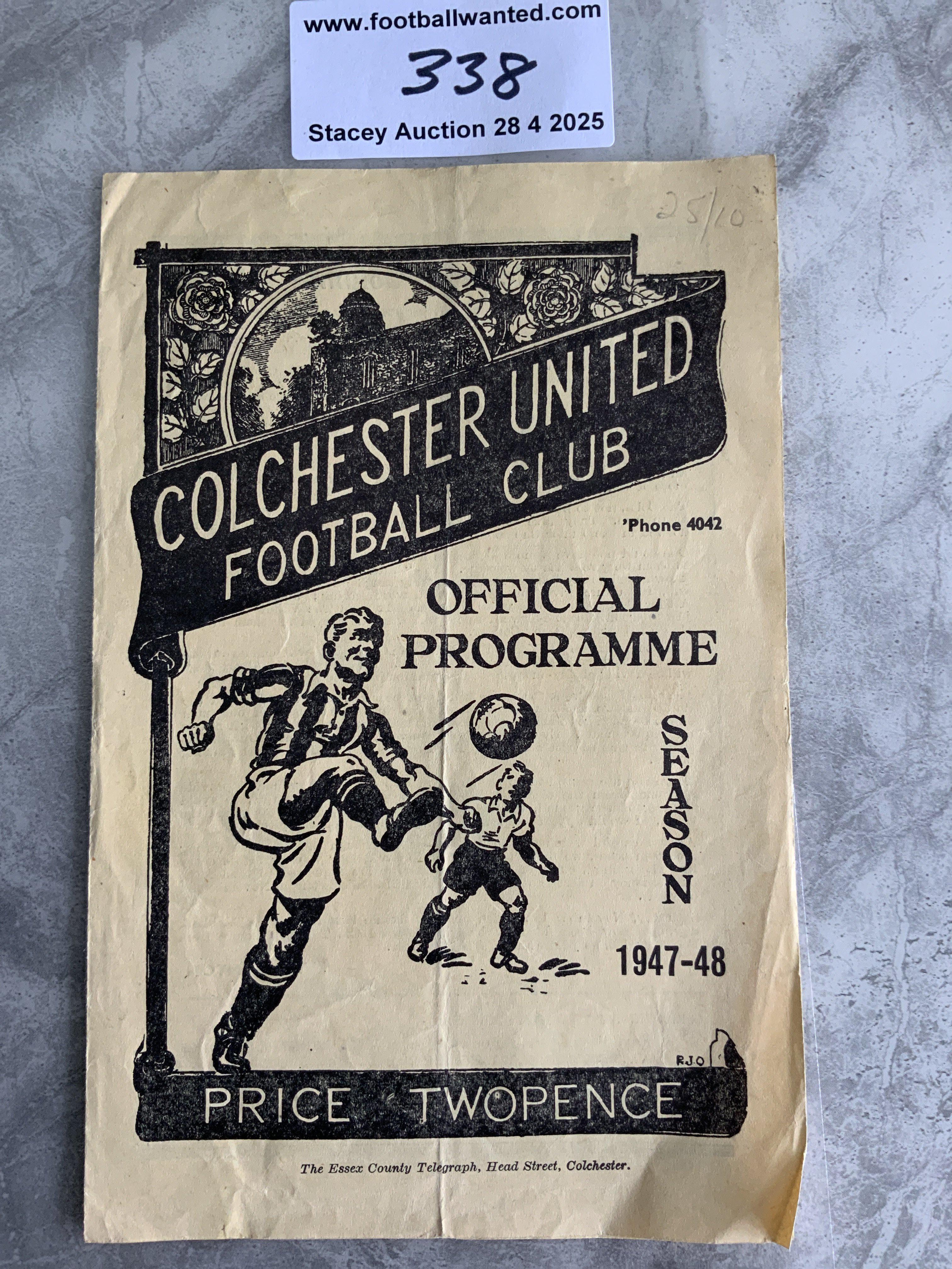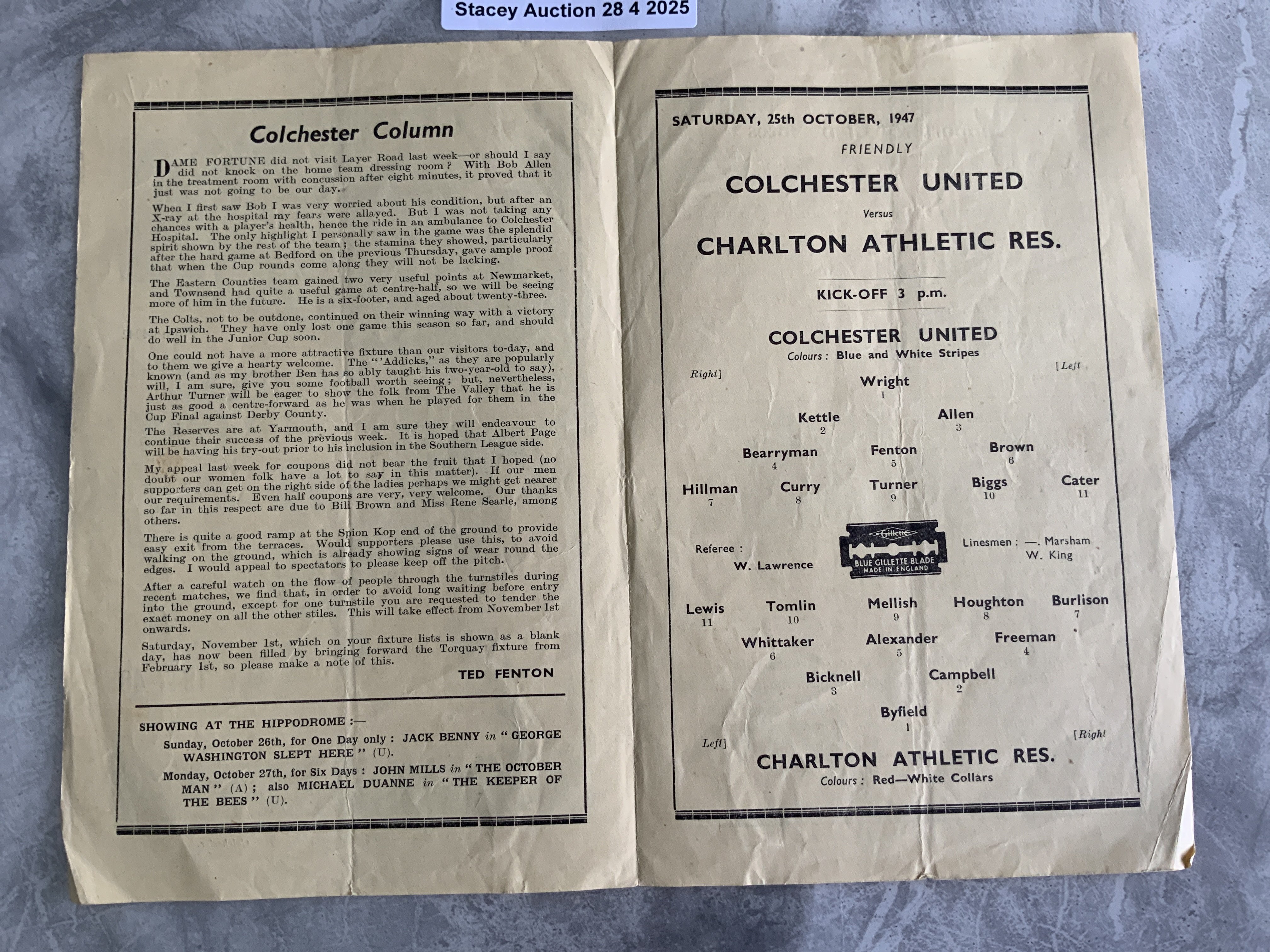 47/48 Colchester United v Charlton Reserves Football Programme: Good condition with no team changes. Friendly dated 25 10 1947.