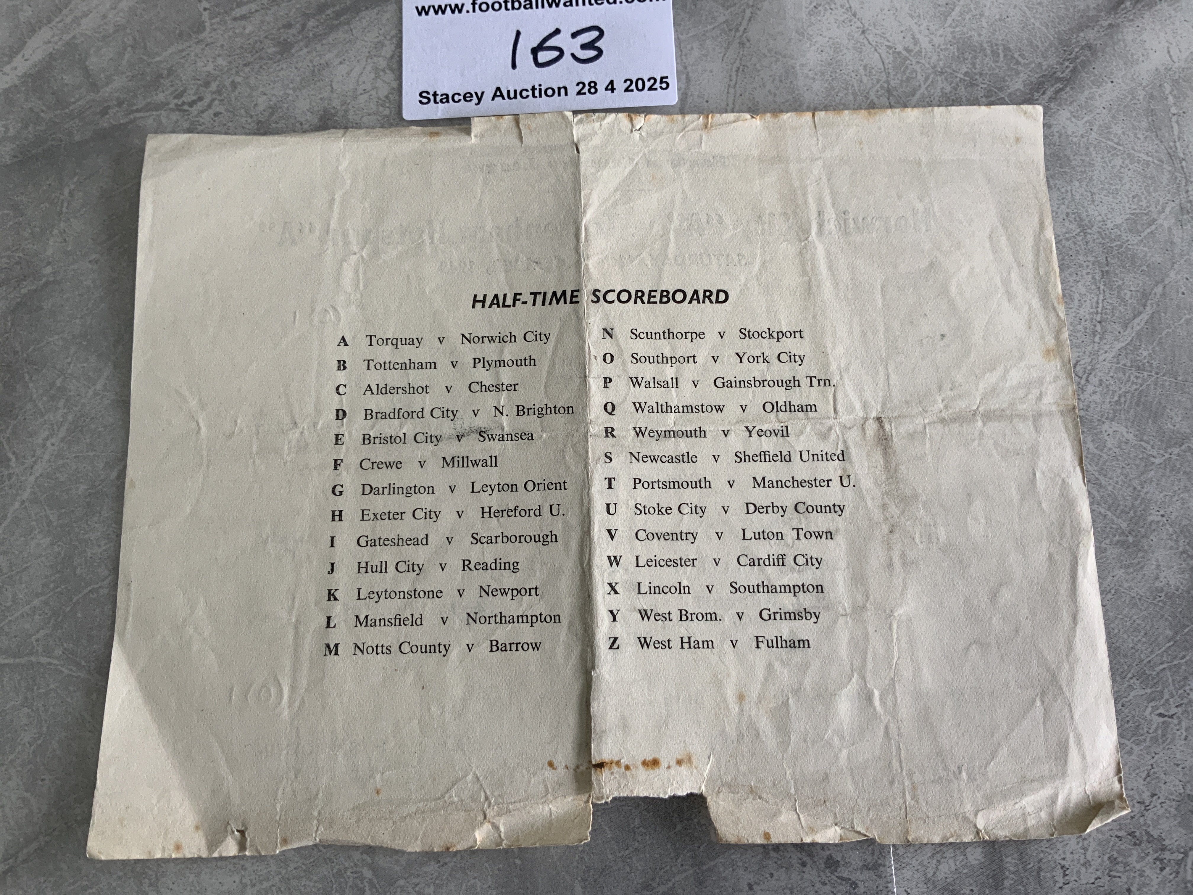 48/49 Norwich City v Tottenham ECL Football Programme: Rare Eastern Counties League single sheet programme with team changes and score. Dated 11 12 1948. A team match programme has piece missing from lower border and a bit tatty to edges.