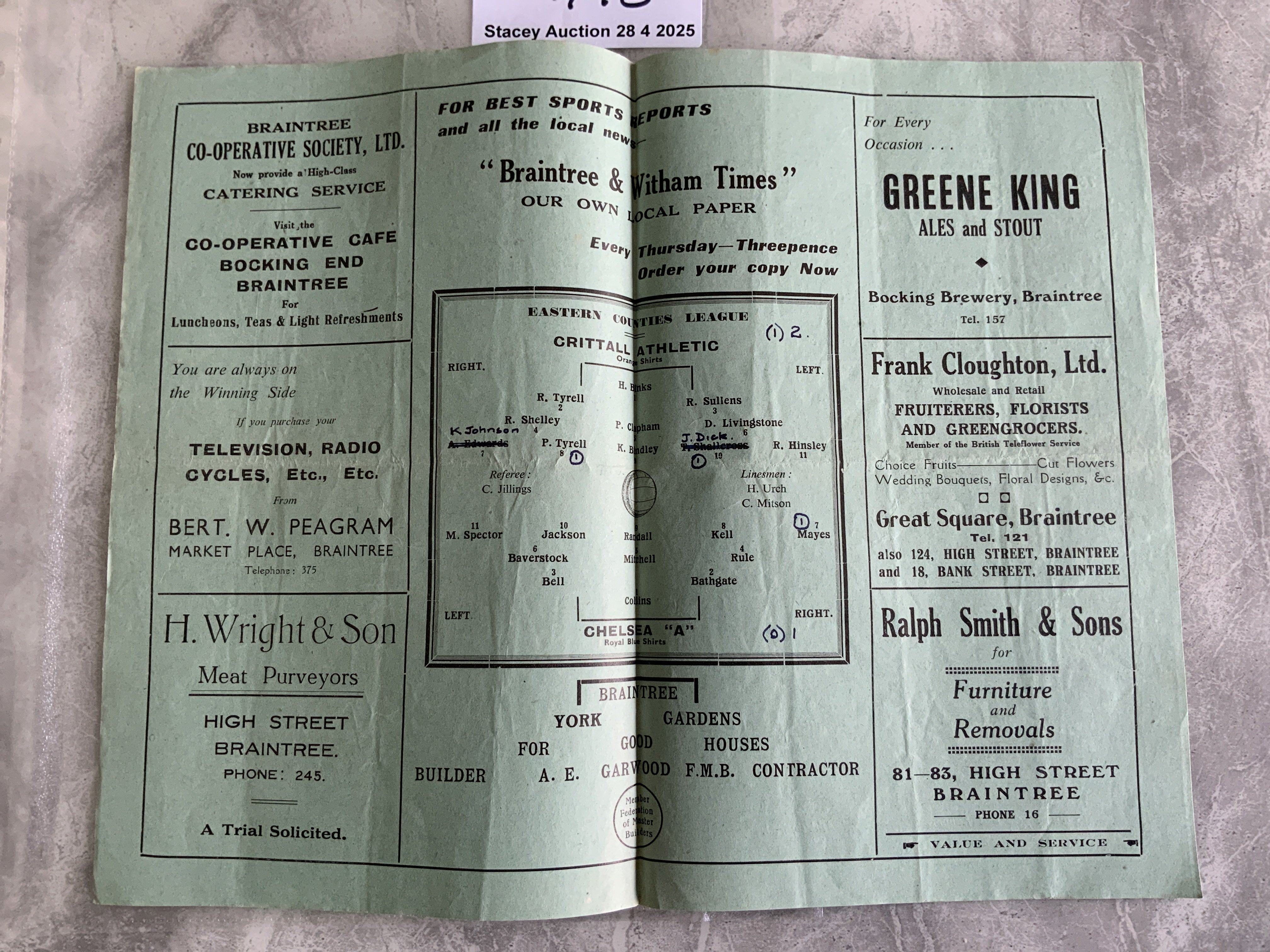 52/53 Crittall Athletic v Chelsea A Football Programme: Very good condition Eastern Counties League programme with team changes and score to team page. Dated 13 12 1952. Fold.