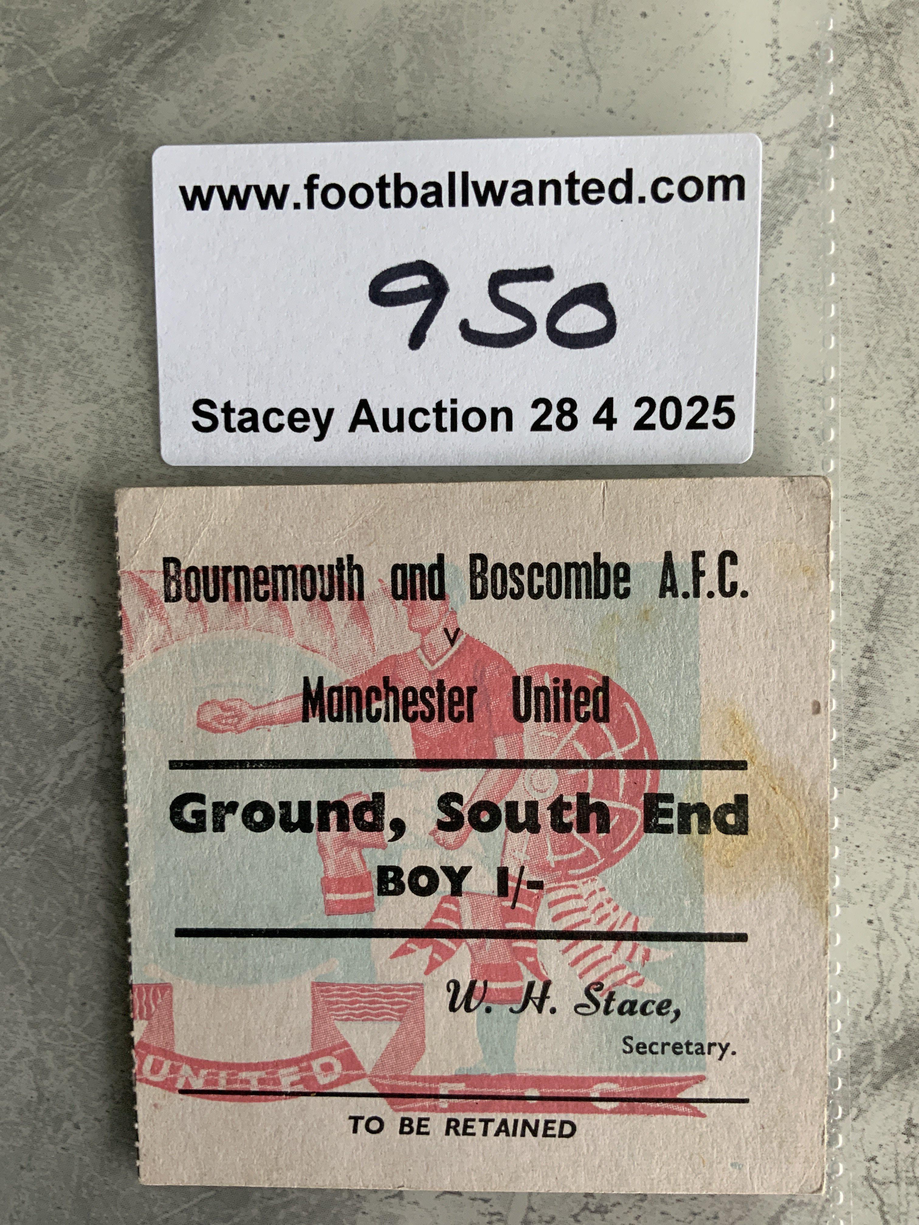 56/57 Bournemouth v Manchester United FA Cup Football Ticket: Tiniest mark on good condition ticket for match played on 2 3 1957. Man Utd got to the final this season.