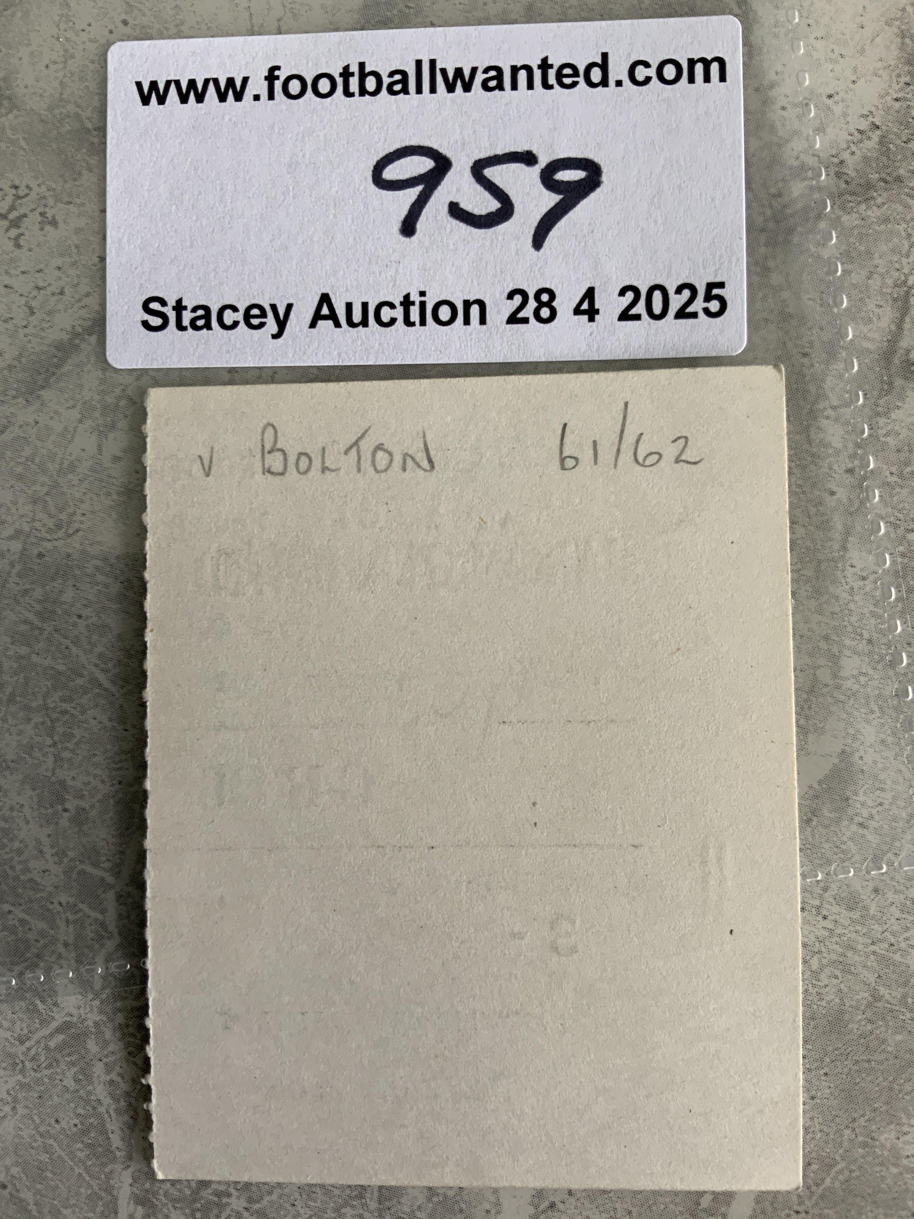 61/62 Manchester United v Bolton FA Cup Football Ticket: Dated 6 1 1962 in excellent condition.