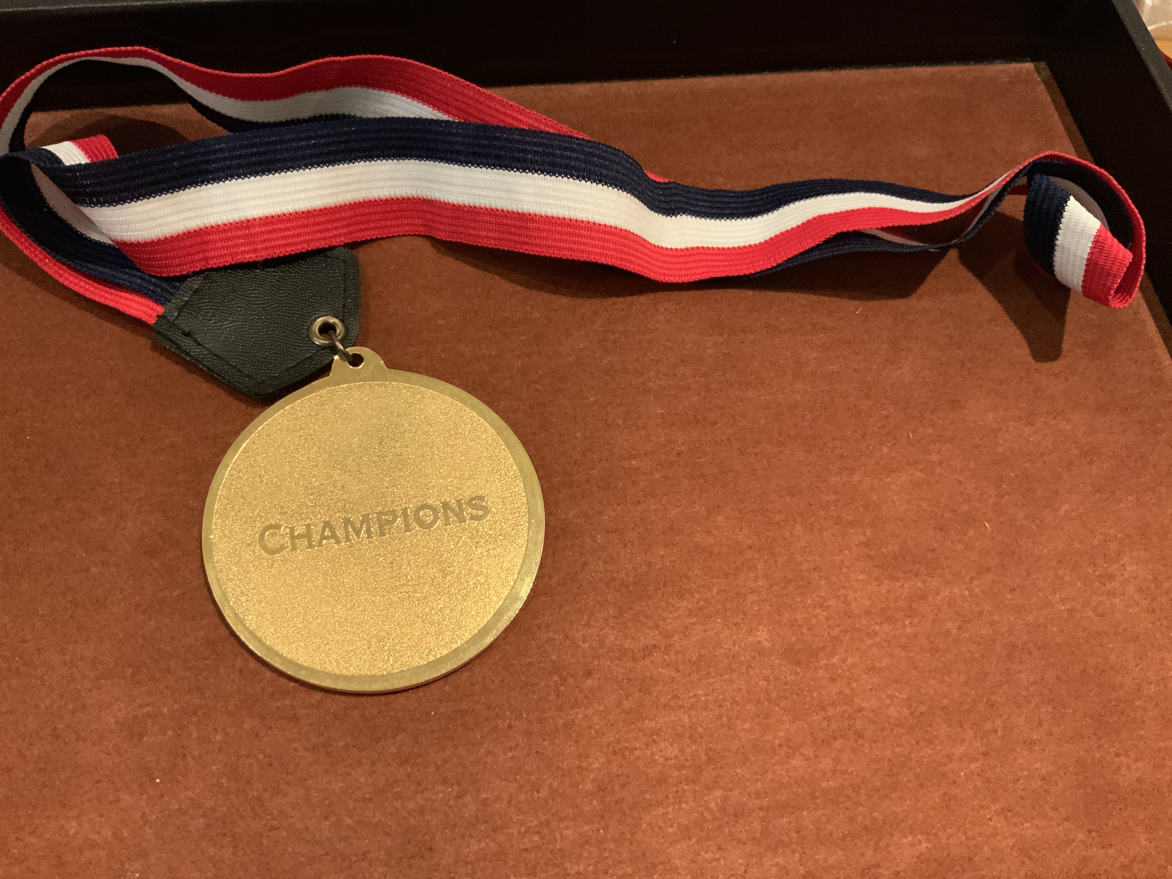 2001 Singapore X1 v Manchester United Players Medal: Large gold coloured medal with Manchester United badge and the words Courts Cup Singapore 24 7 2001. The reverse has the words Champions. Red white and black lanyard attached. Awarded to a Manchester United player.