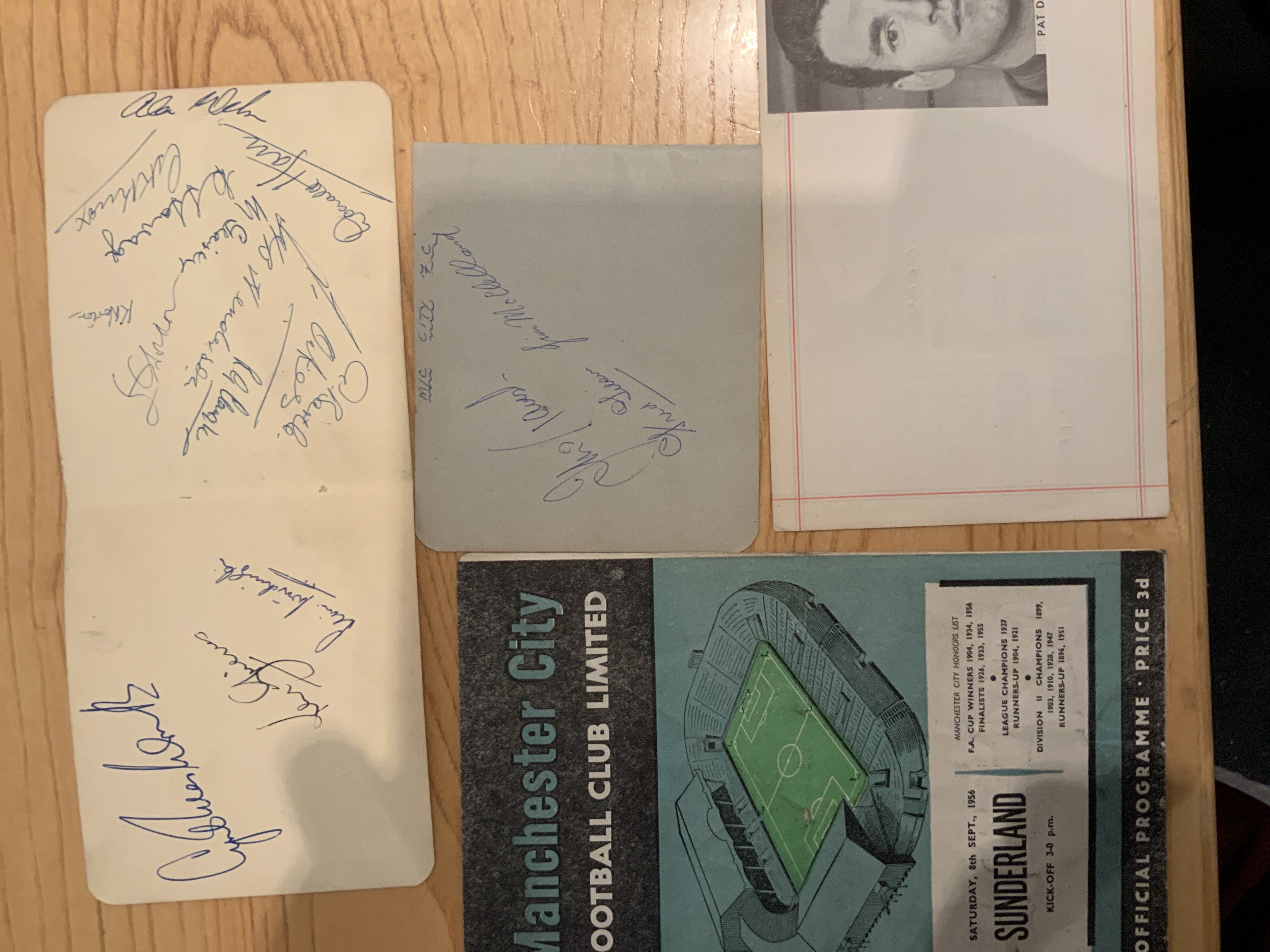 Manchester City Football Autographs: Removed from autograph book with some autographs back to back. Includes Savage Lievers Clarke Fagan Trautmann Barnes and McClelland.