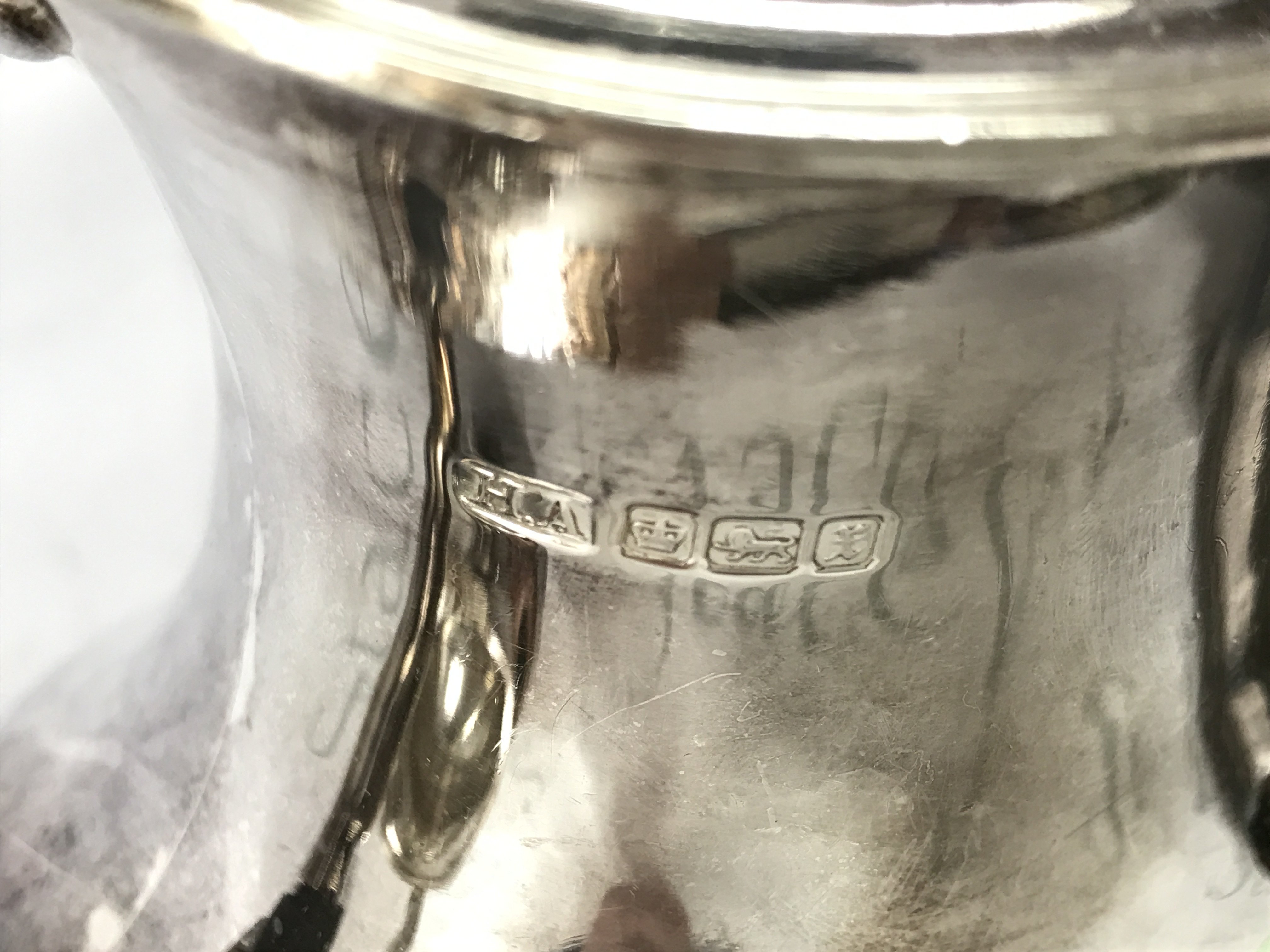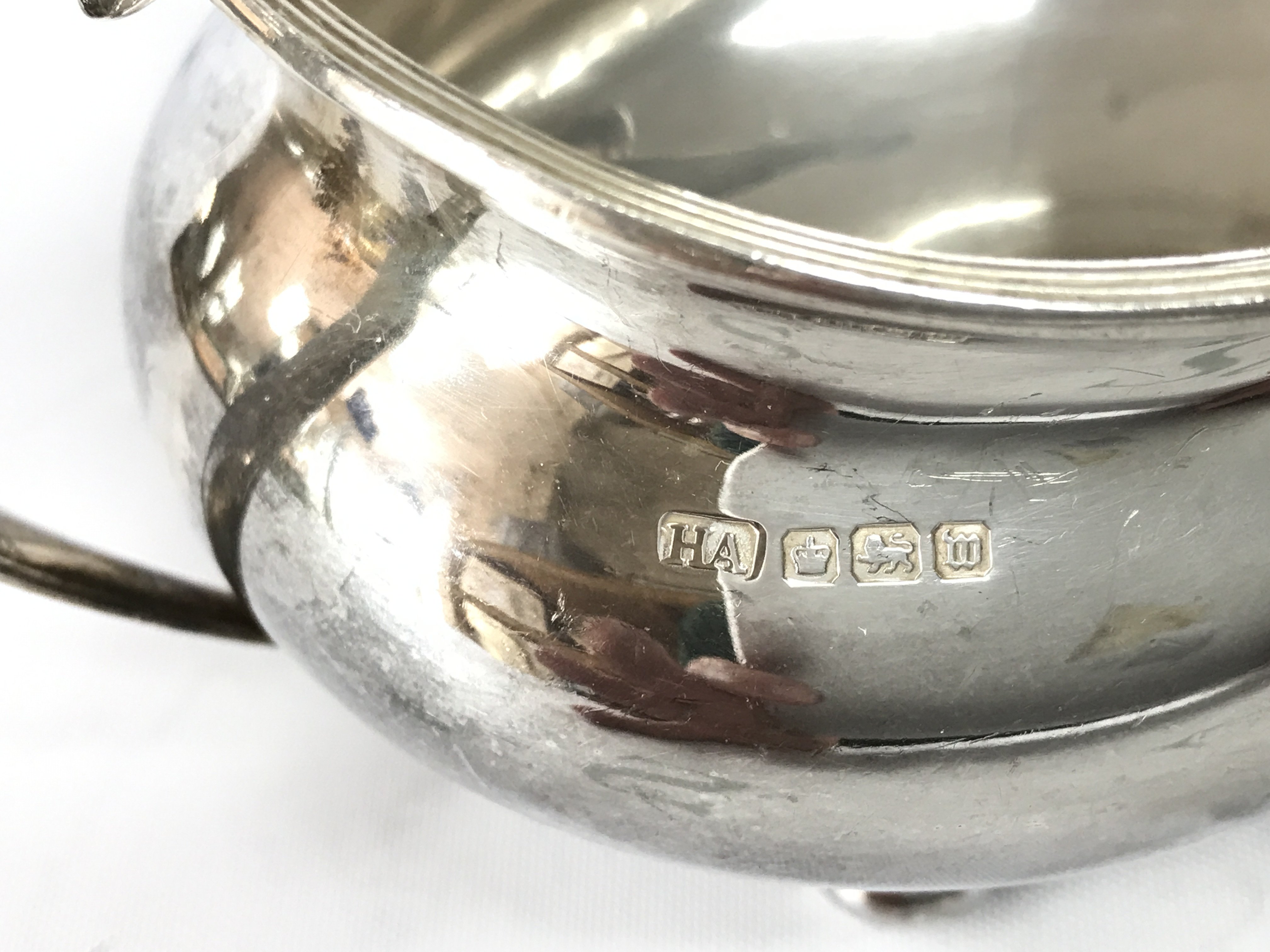 A three piece silver Sheffield hallmarked tea set. 1440g