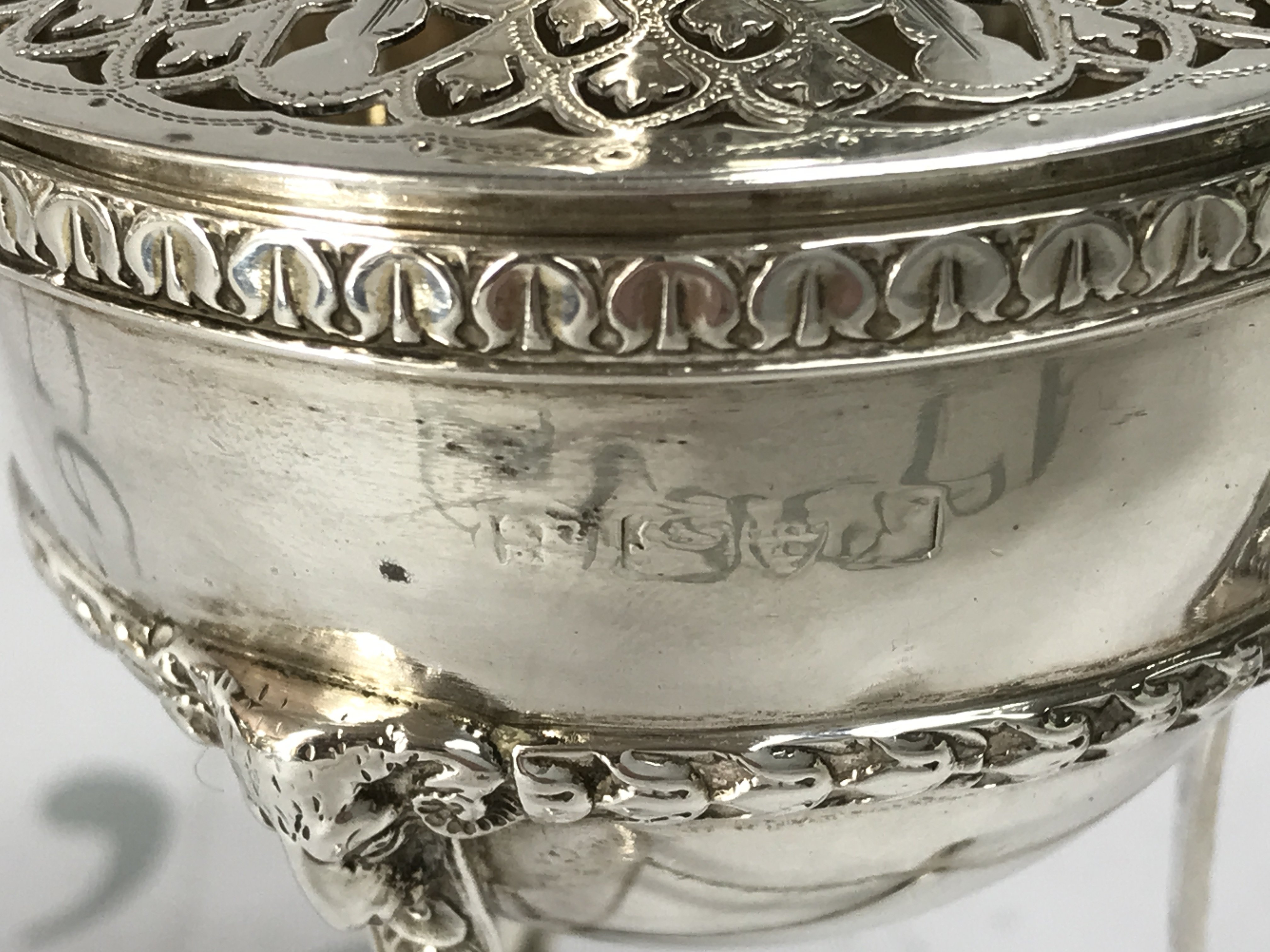 A silver pot pourri bowl with lid 142g and a small silver box 47g.