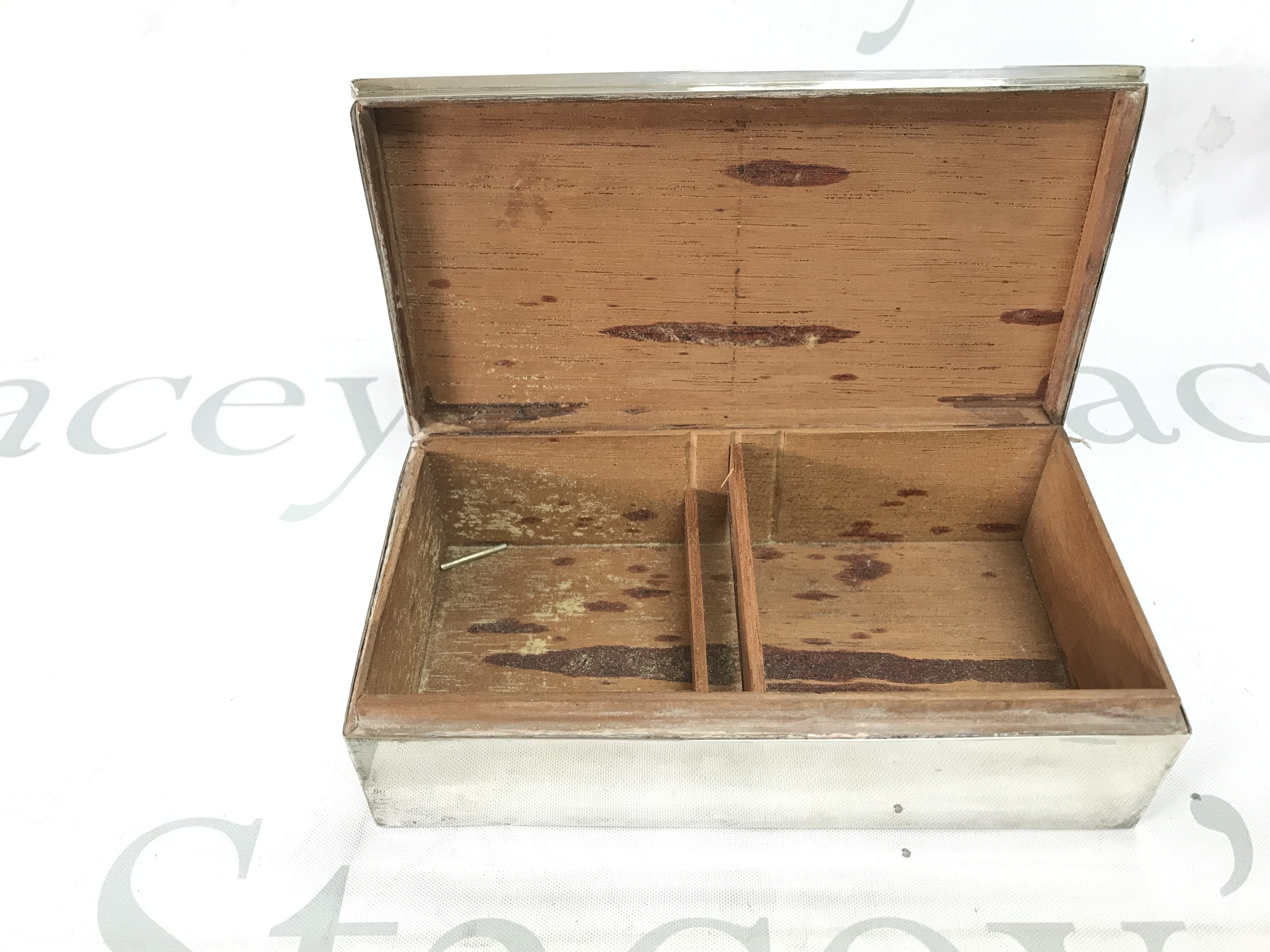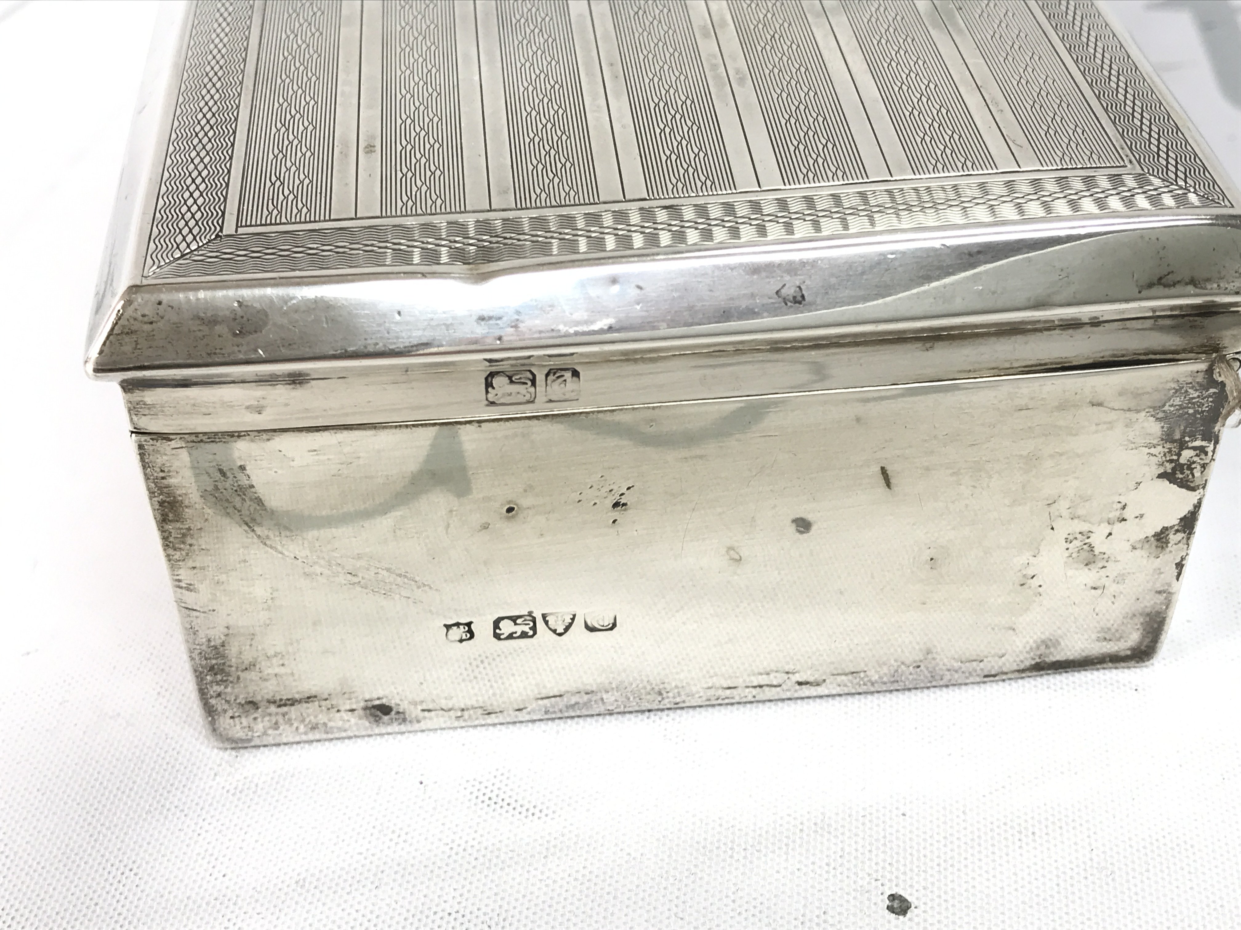 A vintage silver hallmarked cigarette box. 17.5cm wide 9.5cm deep.