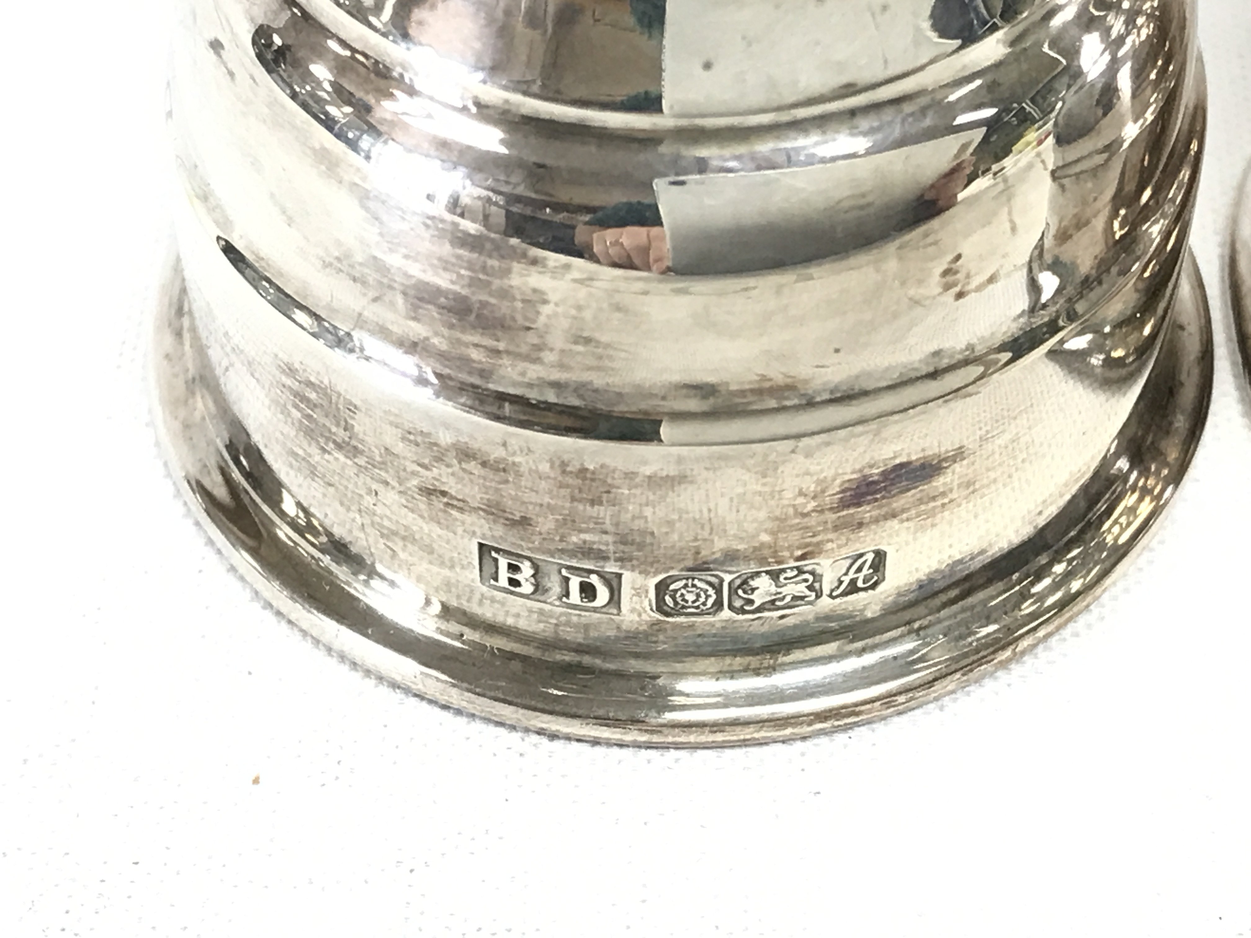 Two silver Sheffield hallmarked mills. Approx 350g. Postage B