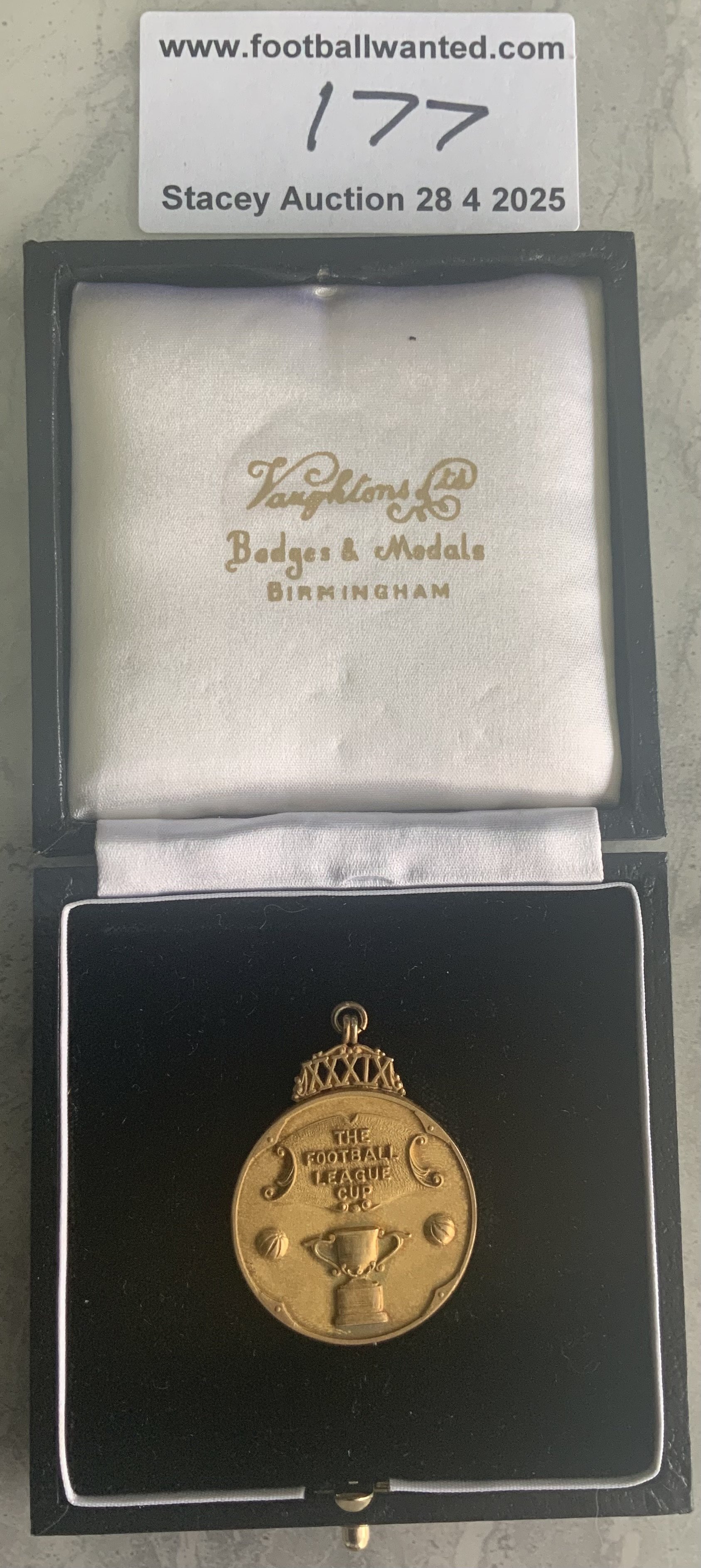 Tottenham 1999 League Cup Winners Football Medal: Awarded to club secretary Peter Barnes. 9ct medal in original Football League box made by famous maker Vaughtons.