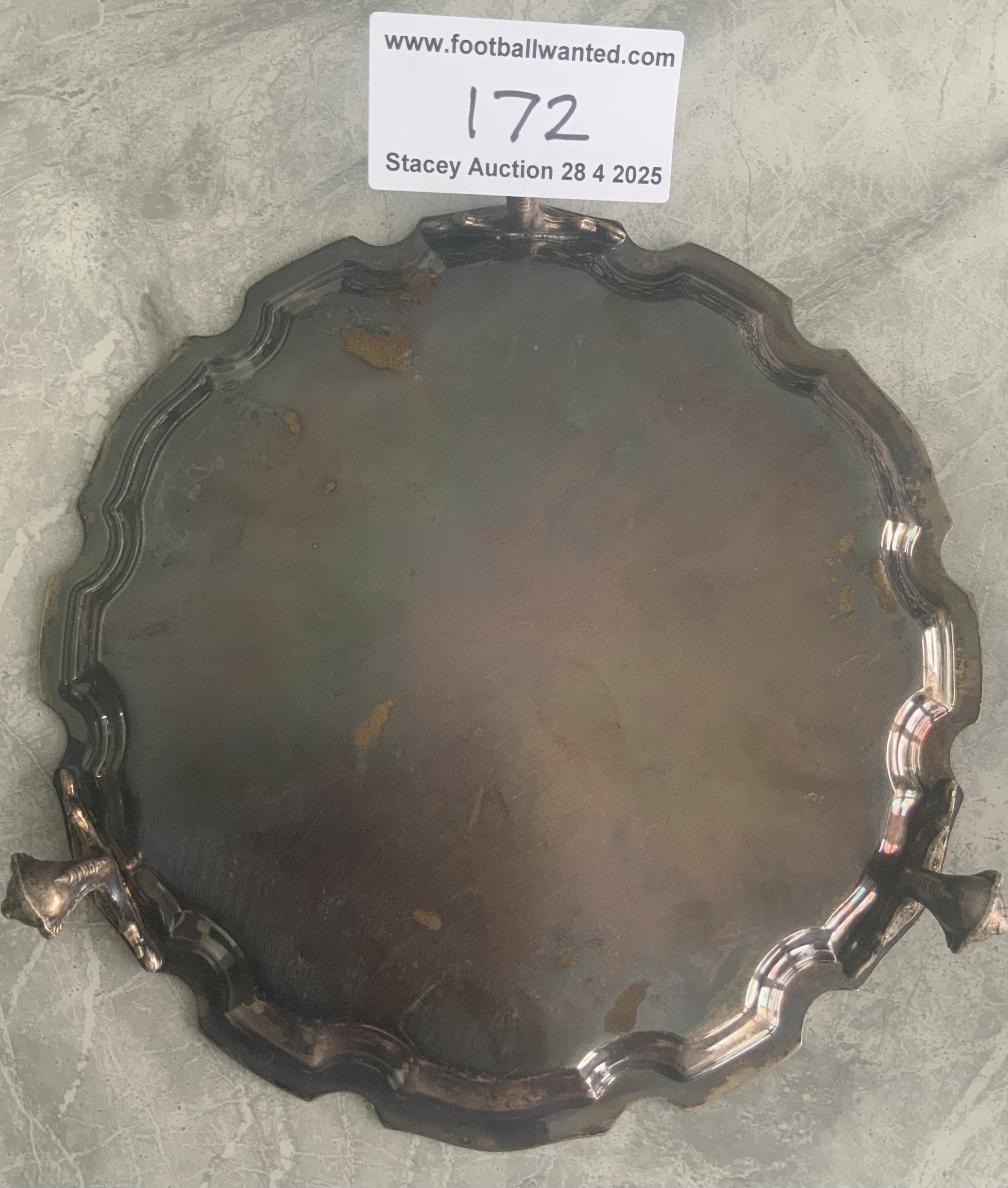 Tottenham 1989 Football Gift: Footed salver with the words presented by Tottenham Hotspur FC Saint Brieuc France April 1989. Been used as a tea pot stand and showing discolouration. Youth tournament near Brittany.