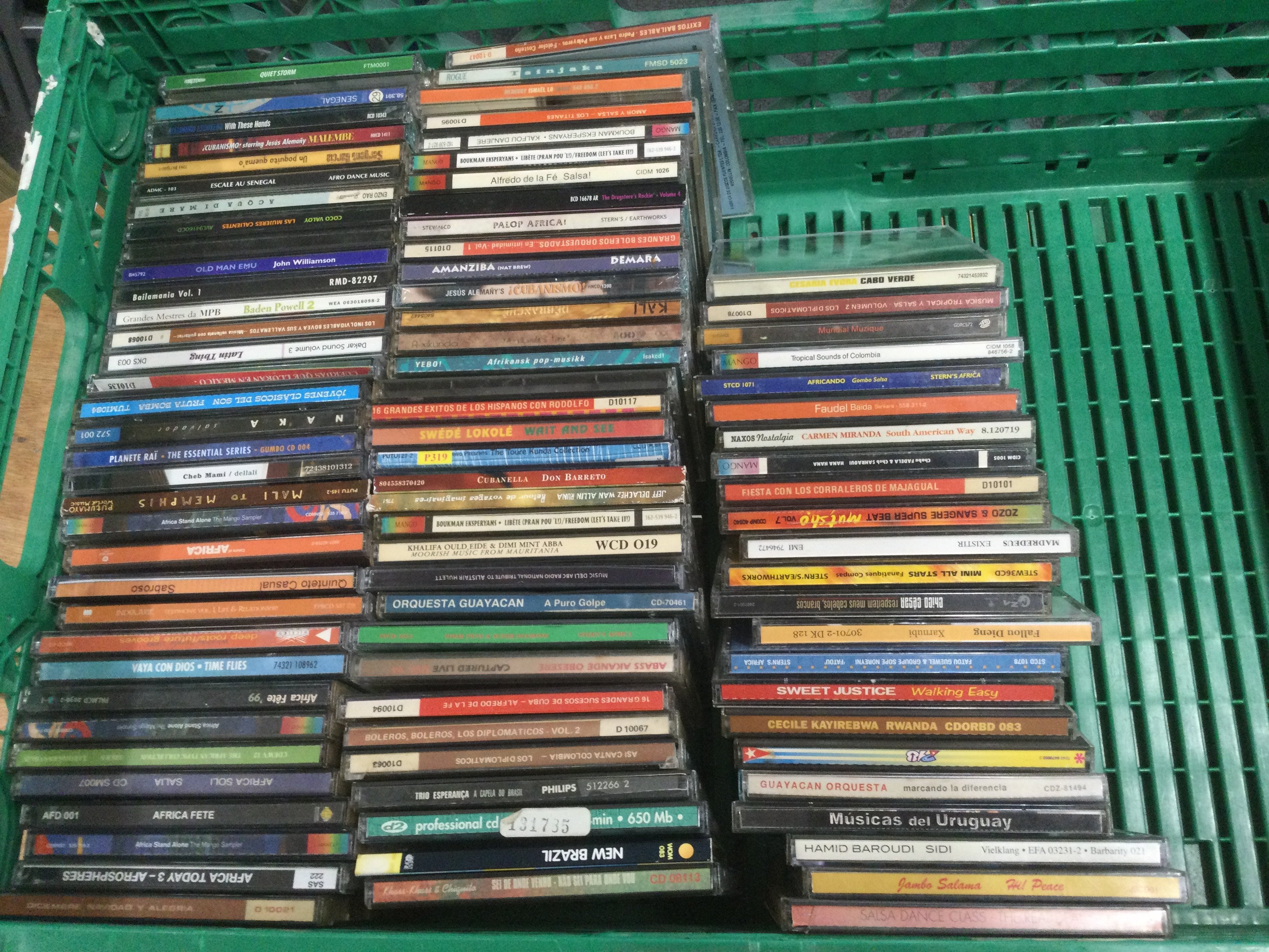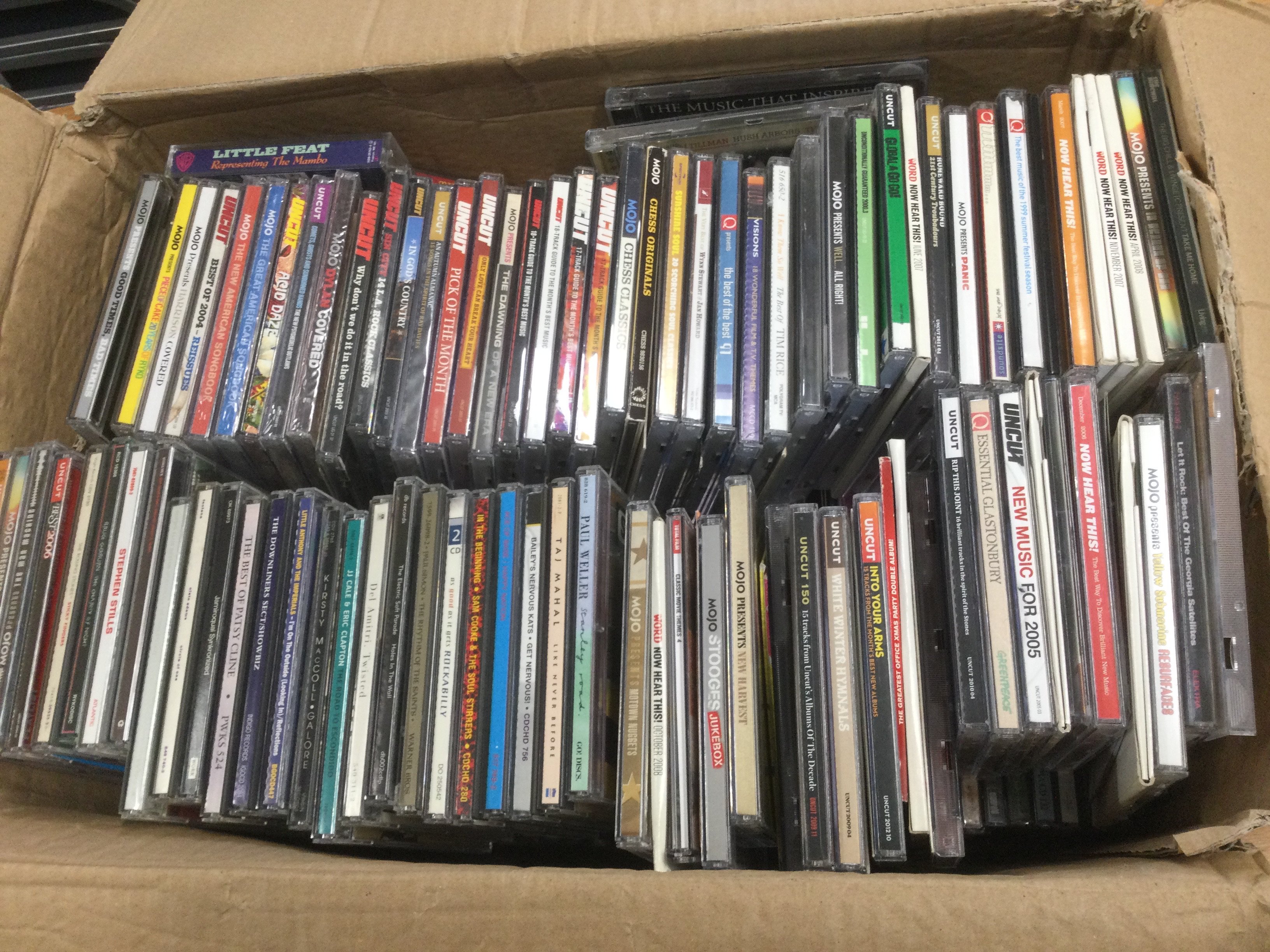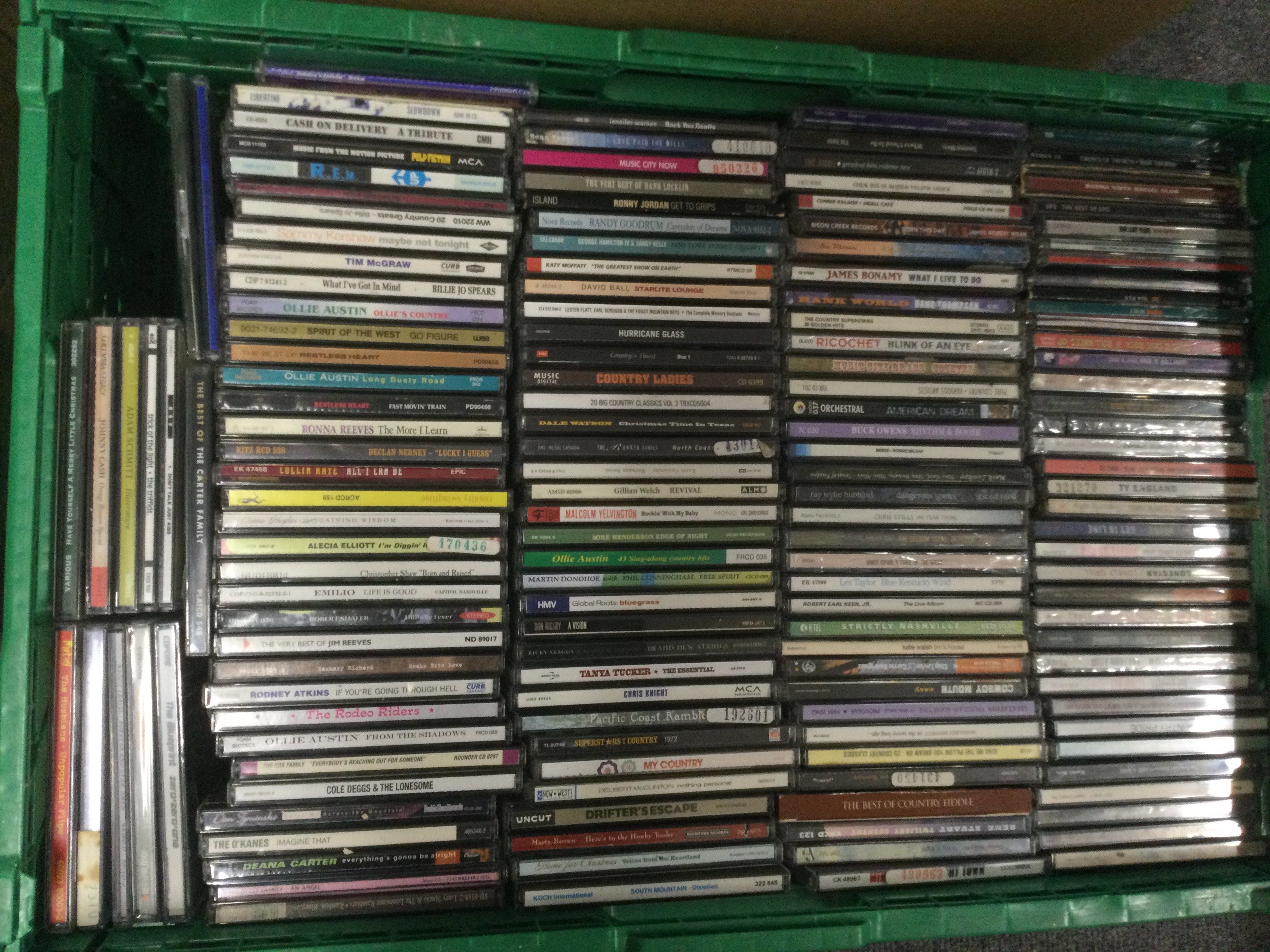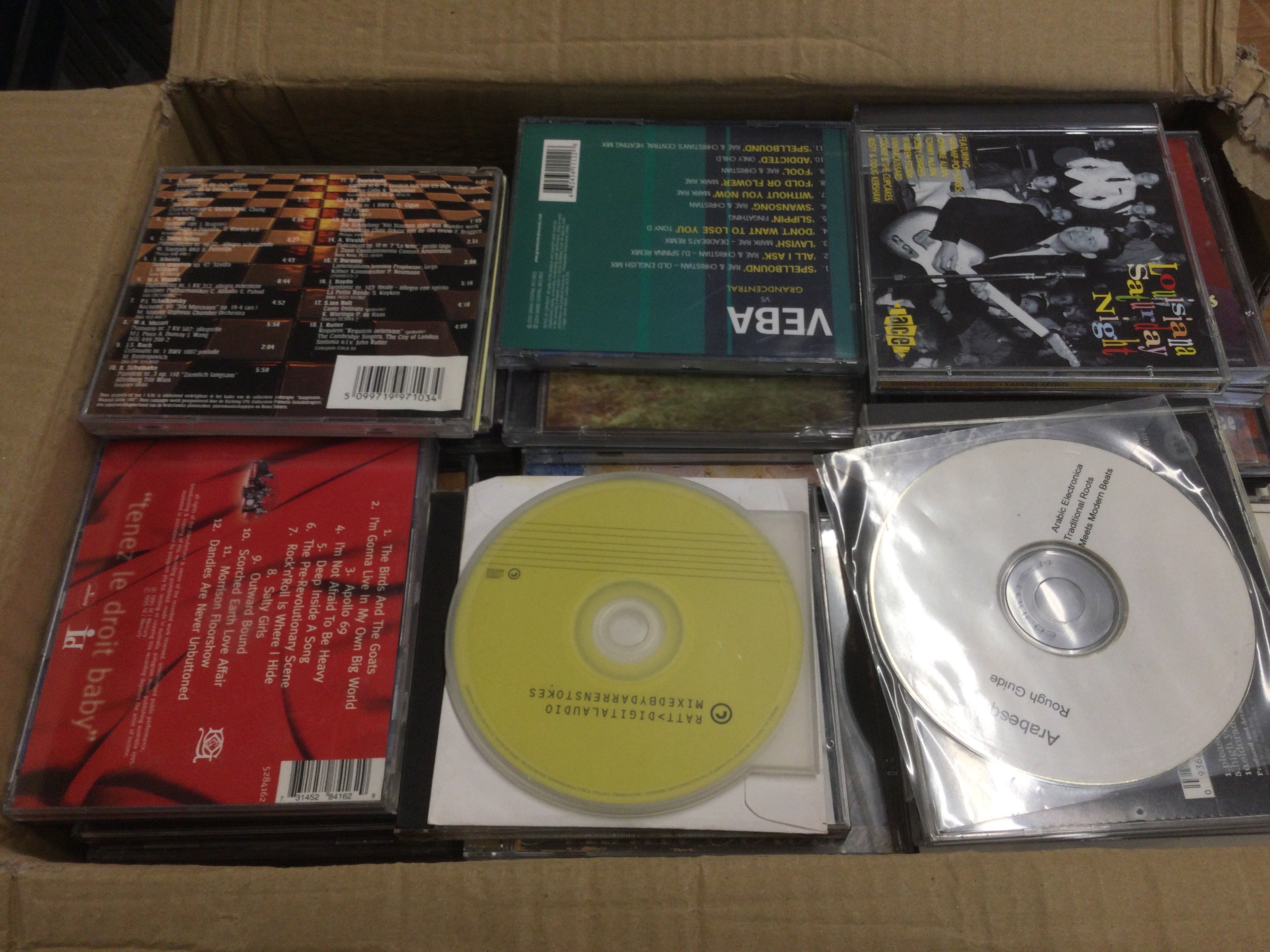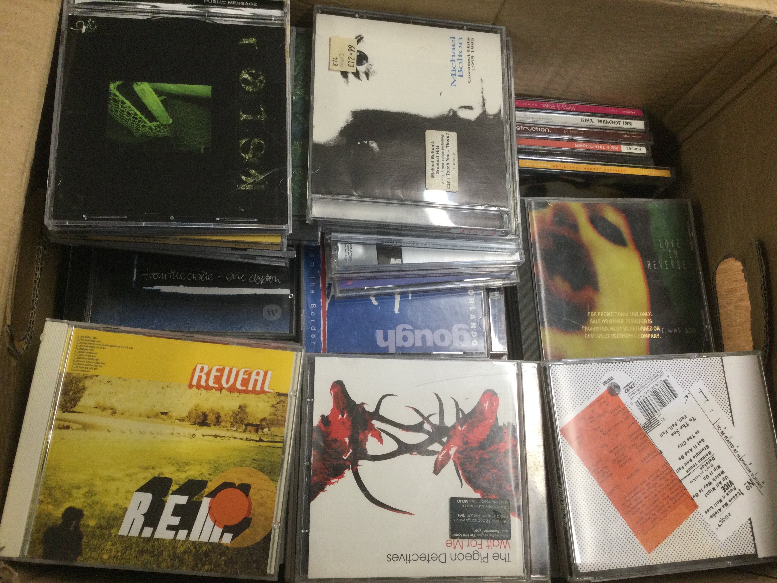 Eight boxes of CDs by various artists. Includes promotional discs.