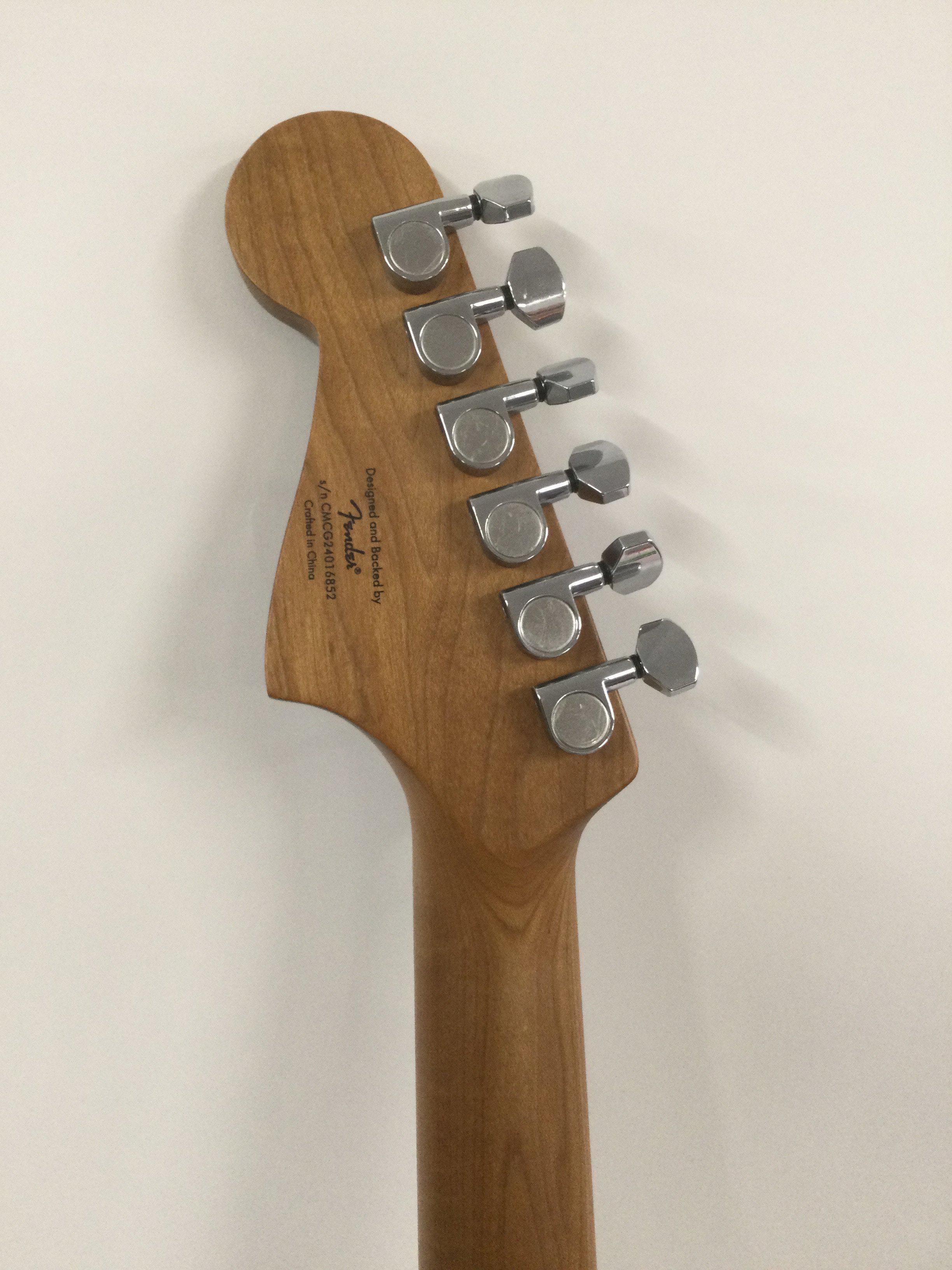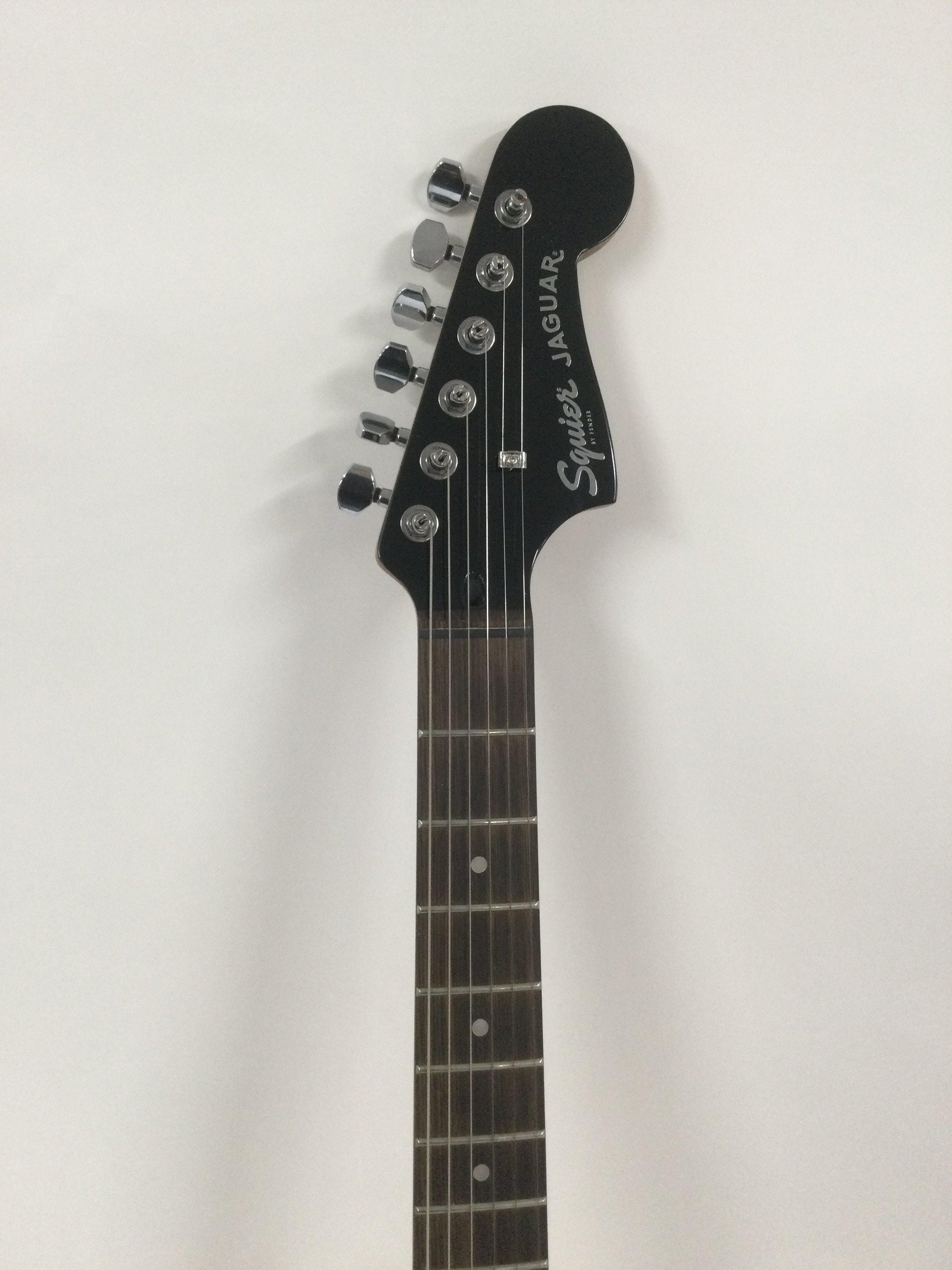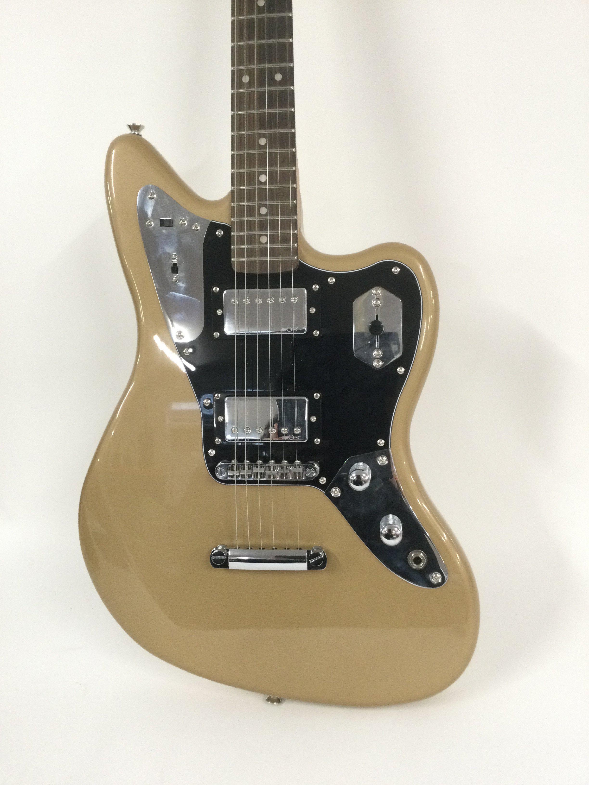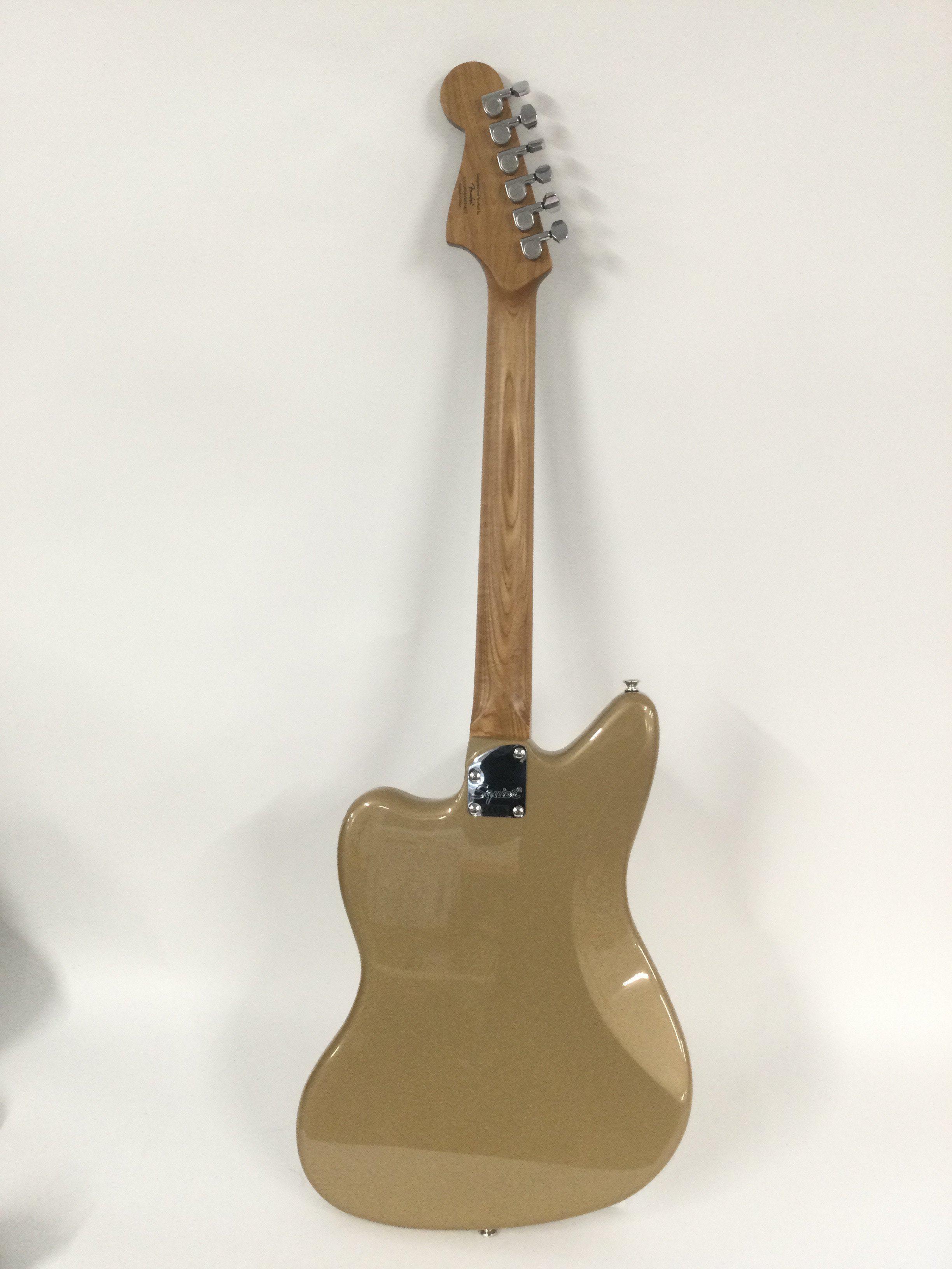 A 2014 Fender Squier Jaguar electric guitar in a gold sparkle finish. Comes with retail box.