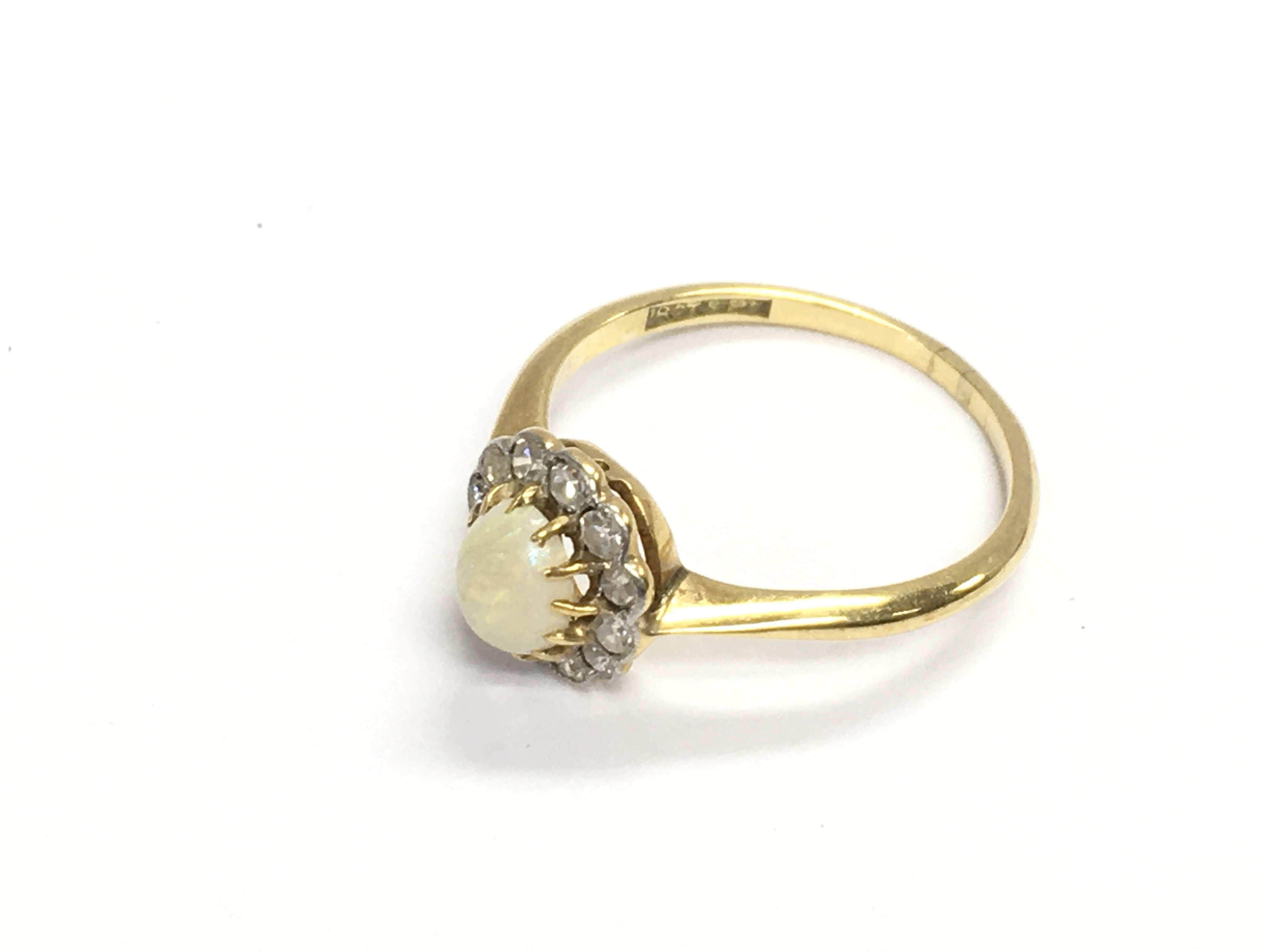 An 18ct gold diamond and opal ring. Size M and 2.13g. Postage A