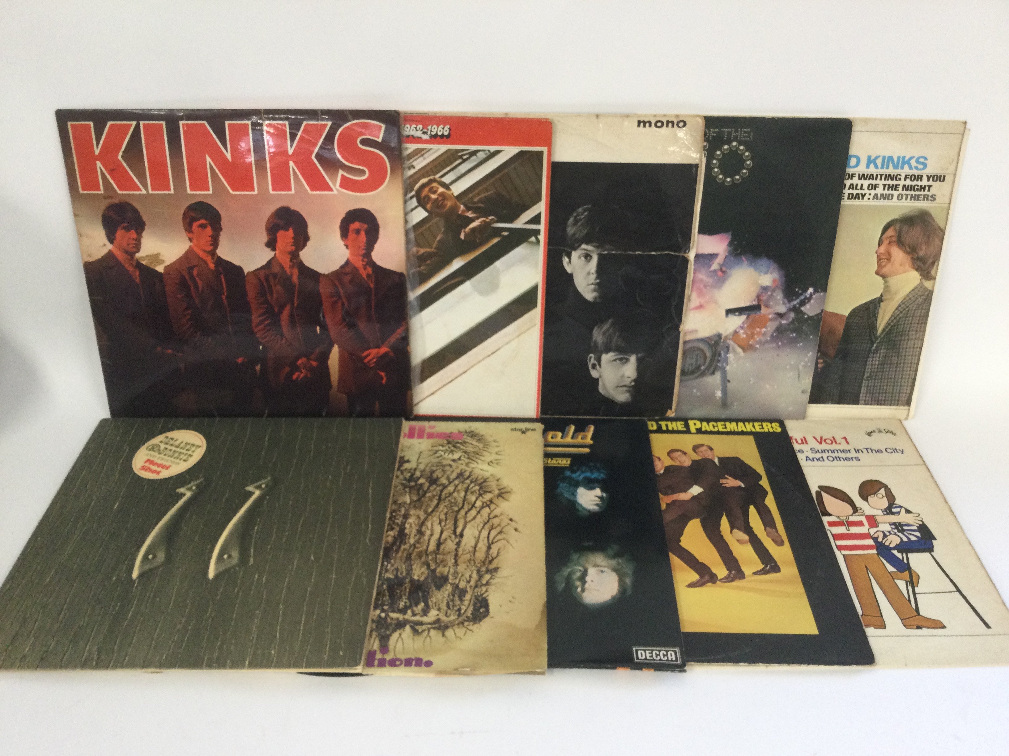 Two bags containing a collection of 20 LPs by various artists including The Beatles, Small Faces, The Kinks, The Rolling Stones and others. Includes early UK and US pressings.