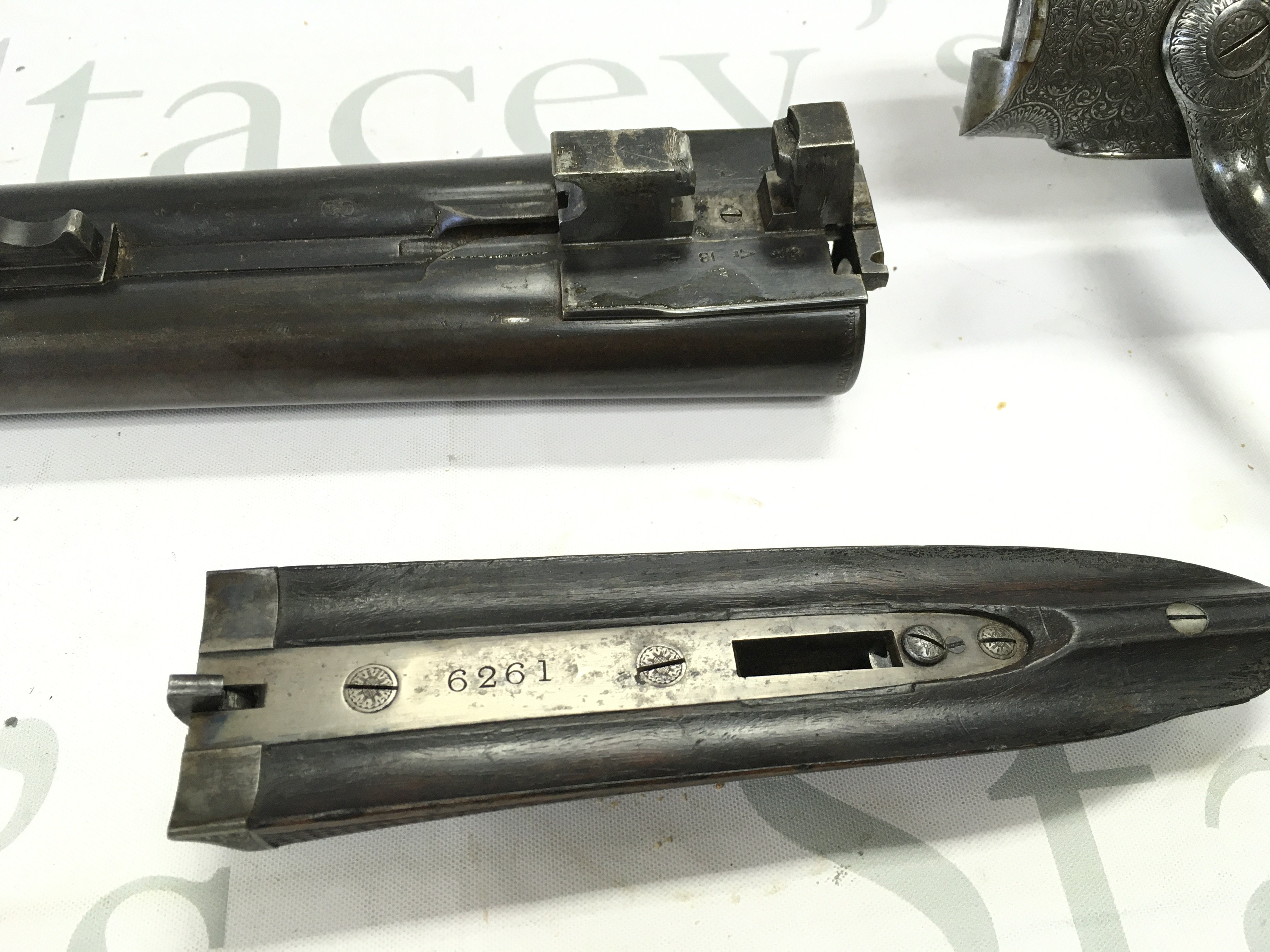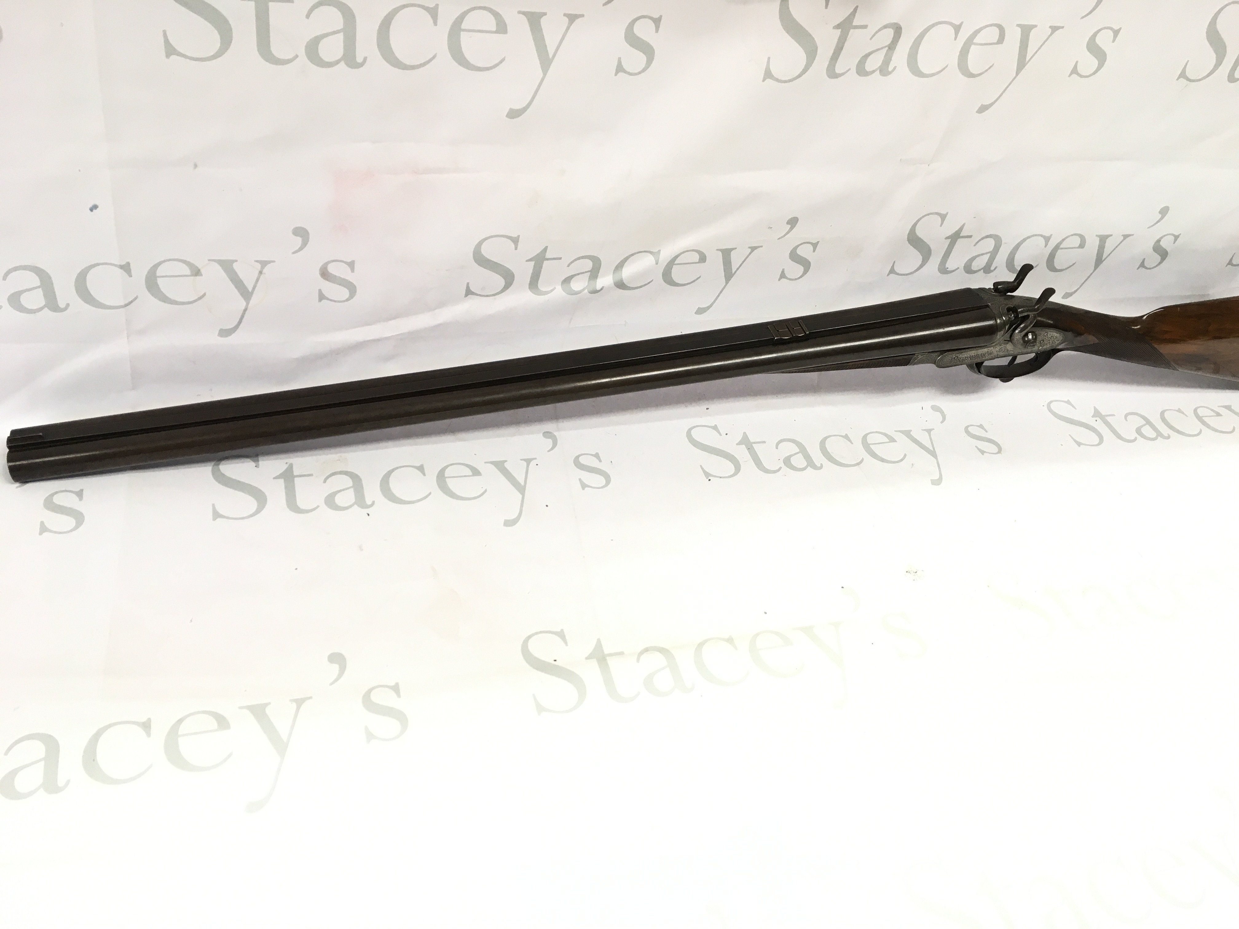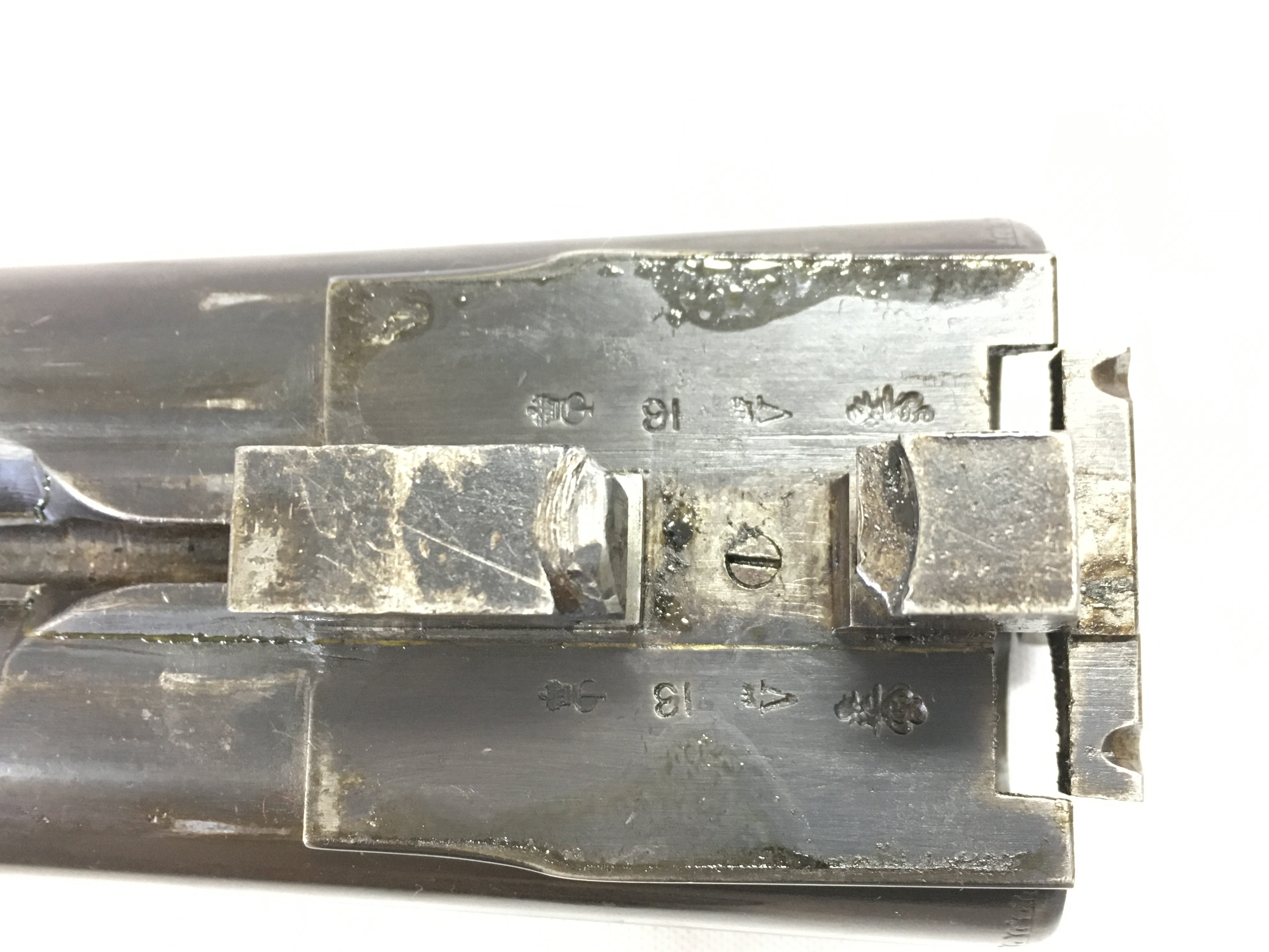 A fine example of a gents 12 bore side by side hammer shotgun by George Gibbs. #6261 Features nice detailed scroll engraving to side and walnut stock. 28 inch barrel and 44.5 inch overall. PLEASE NOTE THAT A SHOTGUN LICENSE IS REQUIRED TO PURCHASE THIS ITEM. VIEWING AND COLLECTING IS BY APPOINTMENT ONLY.