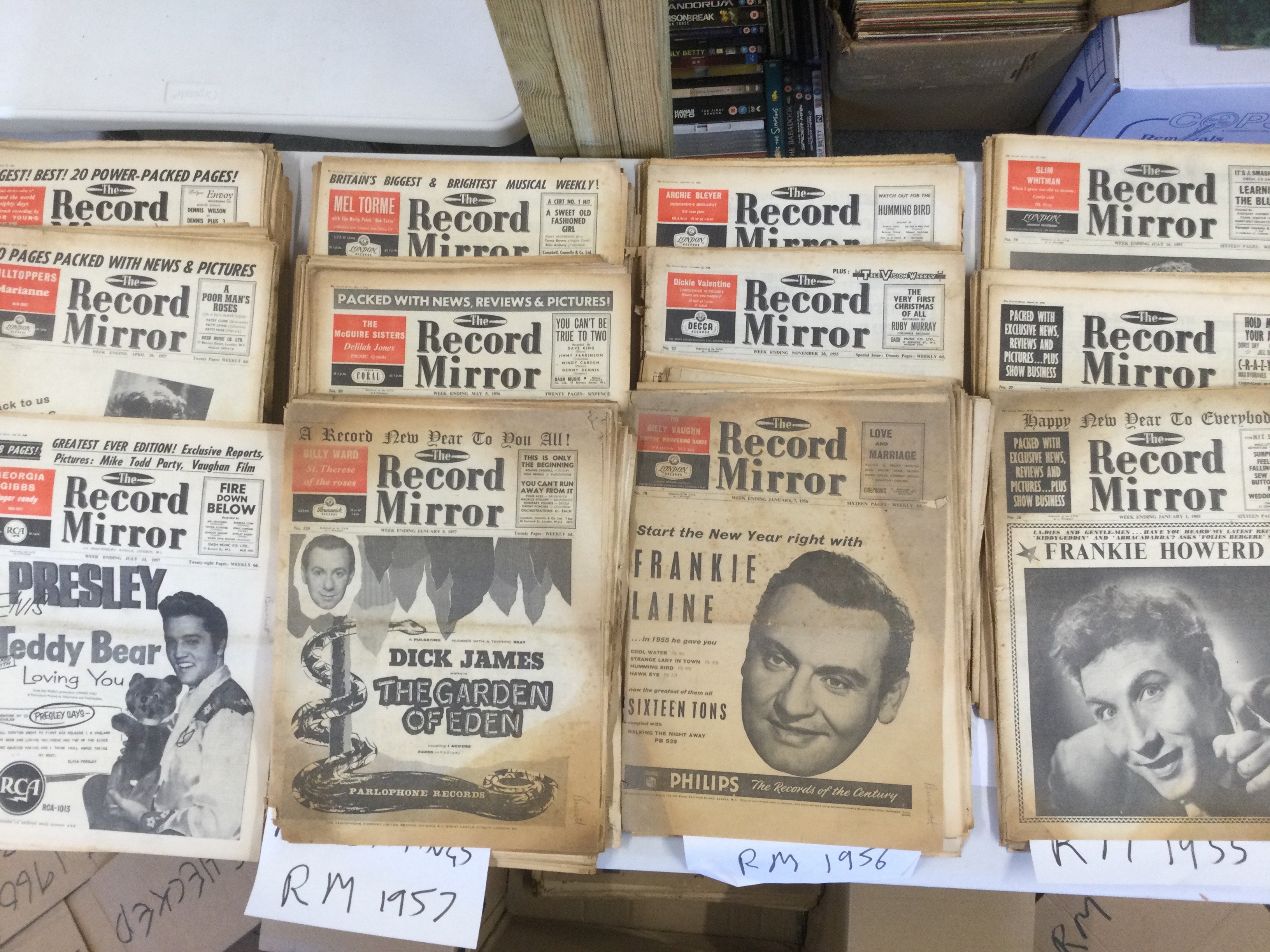 Five boxes of Record Mirror music papers from the 1950s/60s and 70s. Some condition issues.