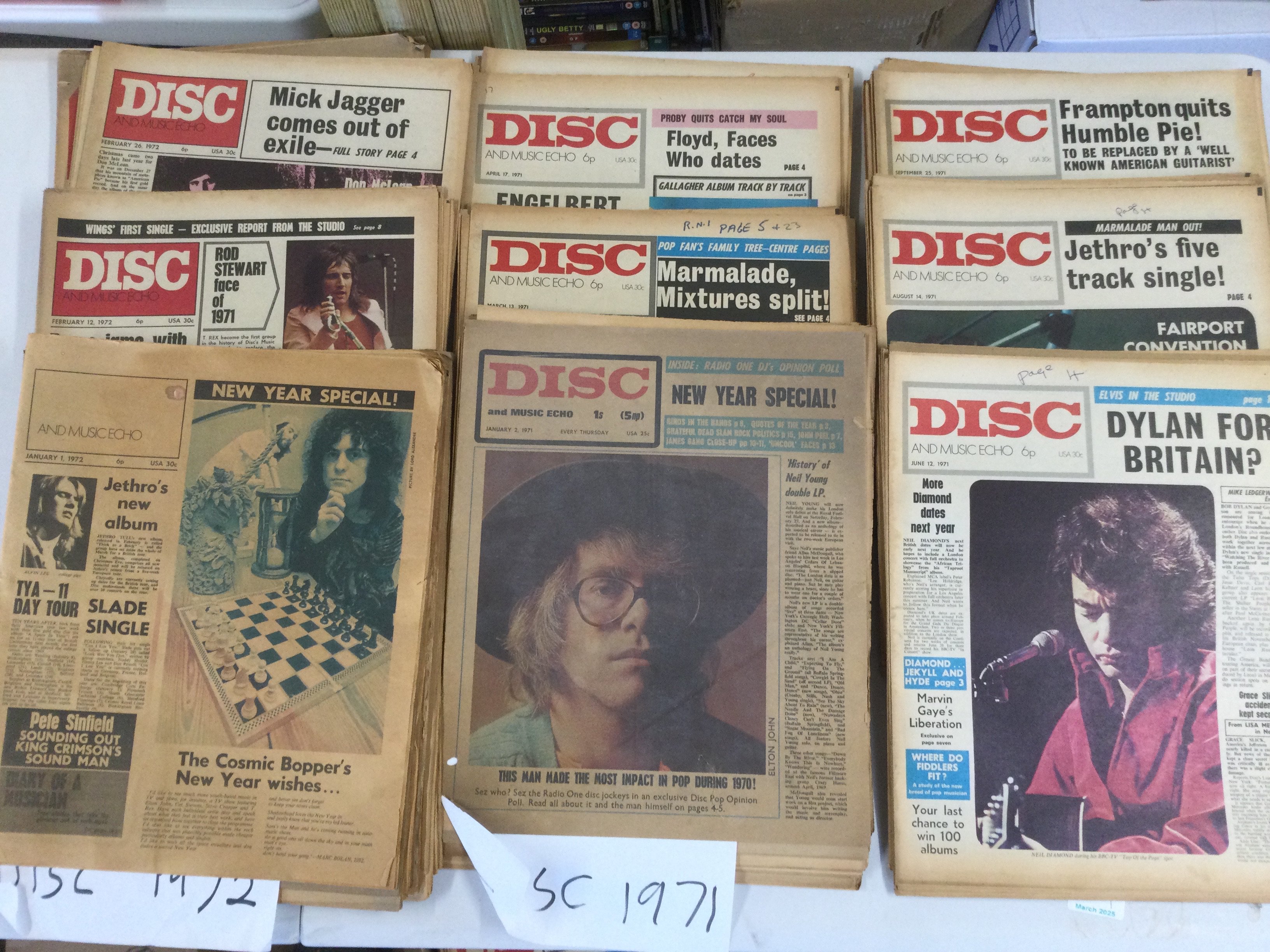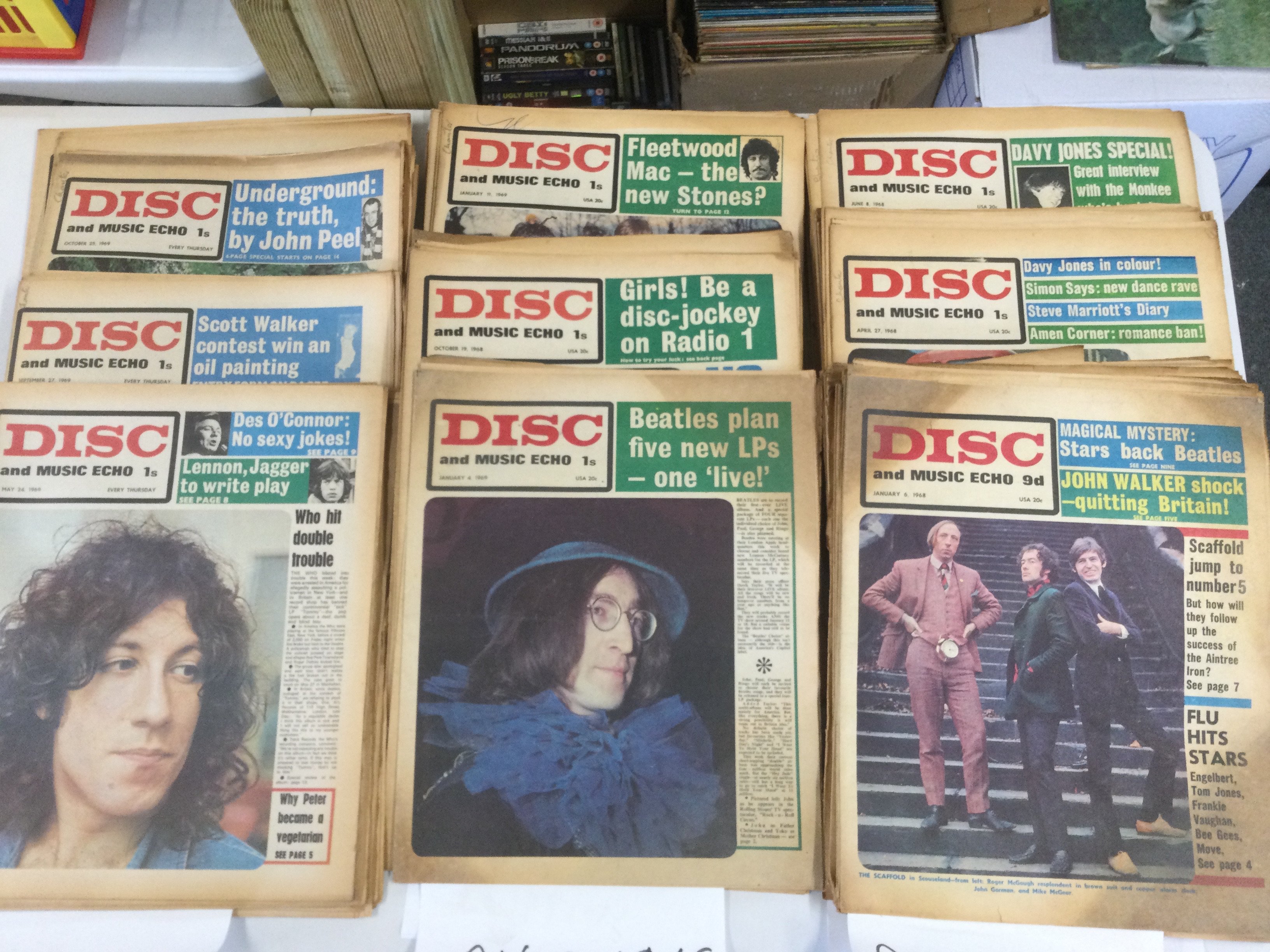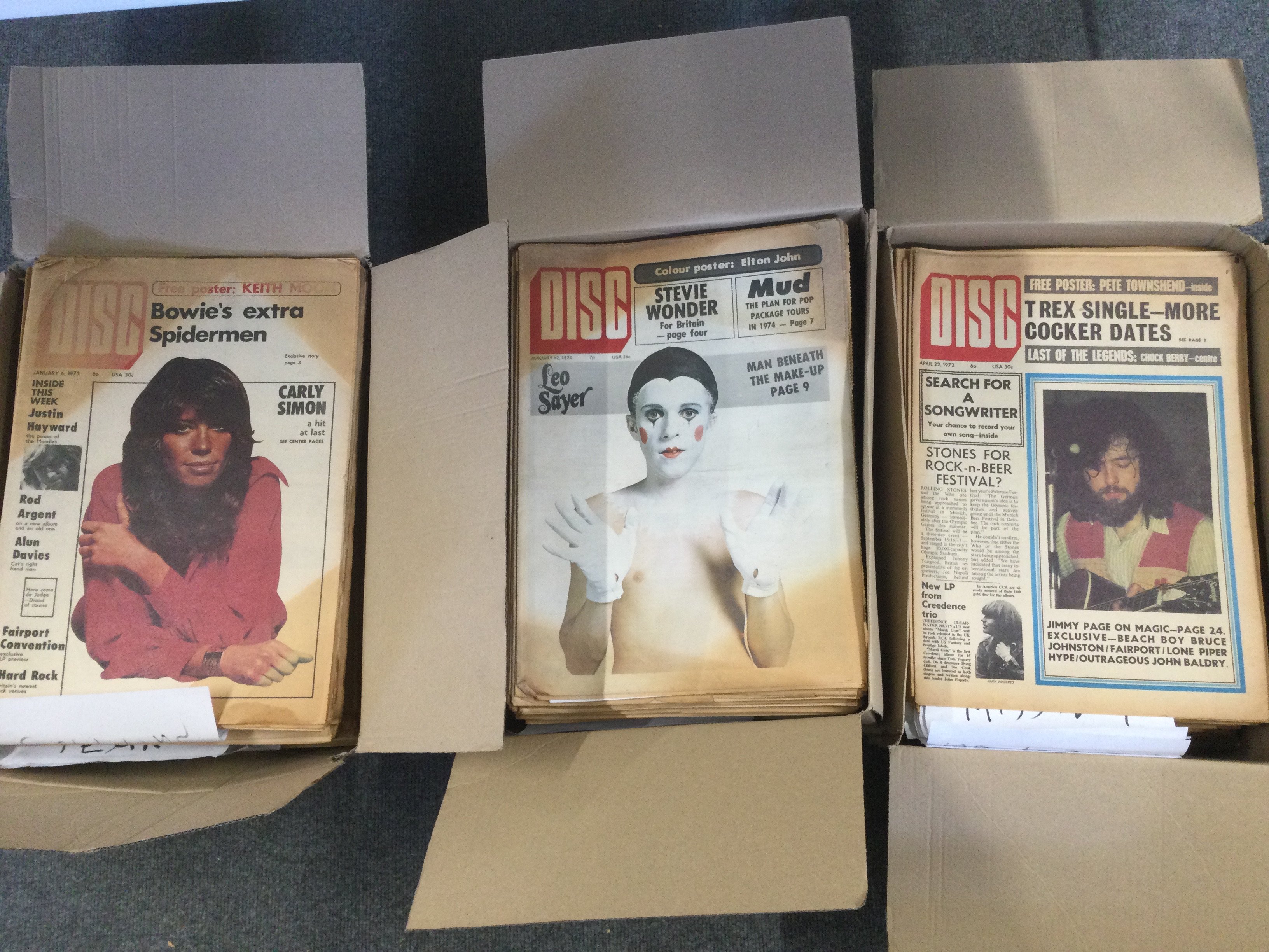 Five boxes of Disc music papers from the 1950s/60s and 70s. Some condition issues.