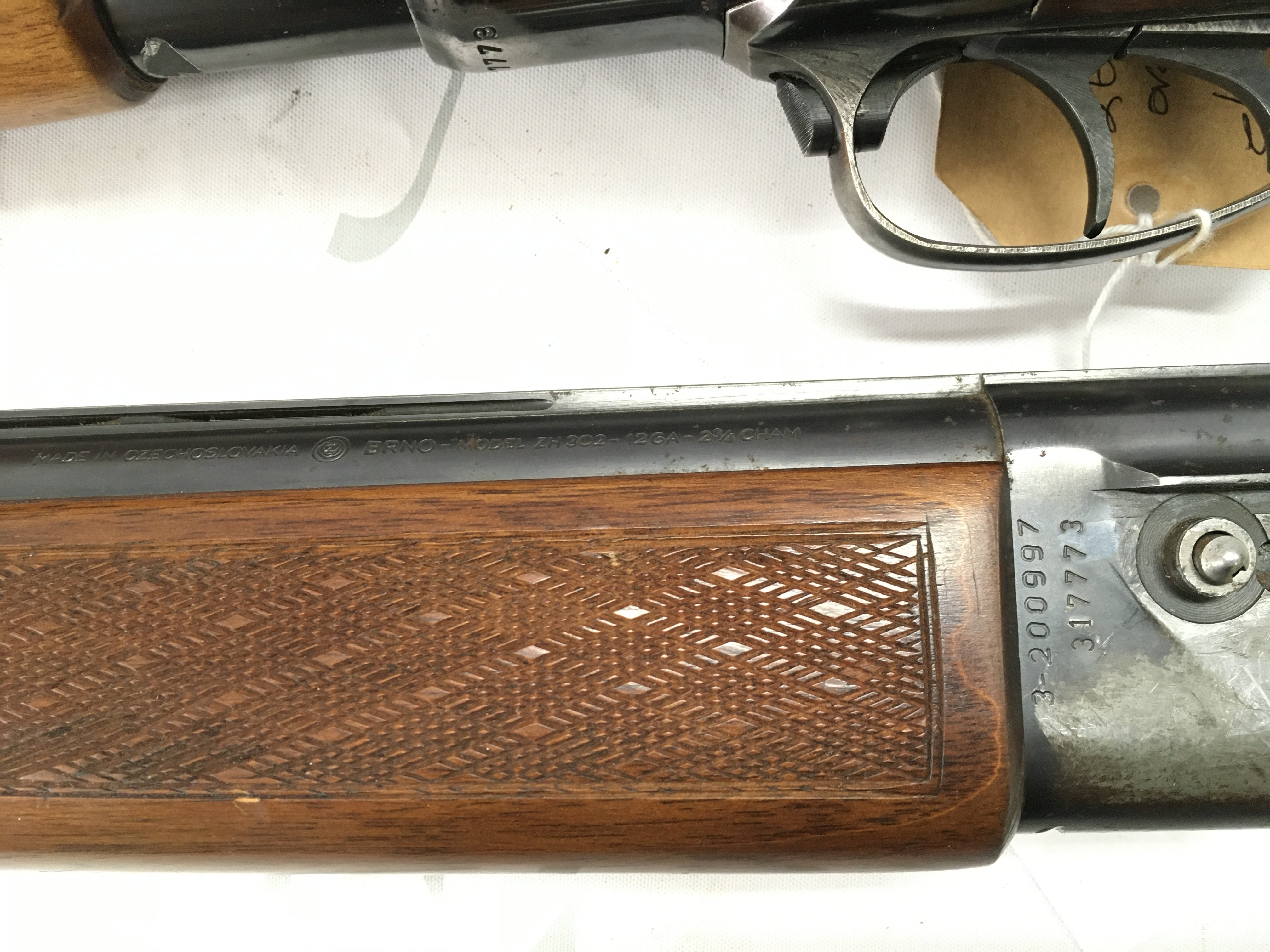 A 12bore over and under shot gun walnut stock with double trigger and ejector fixed choke R/H with a spare set of barrels maker Brno model ZH303. Serial number 317773. PLEASE NOTE THAT A SHOTGUN LICENSE IS REQUIRED TO PURCHASE THIS ITEM. VIEWING AND COLLECTING IS BY APPOINTMENT ONLY.