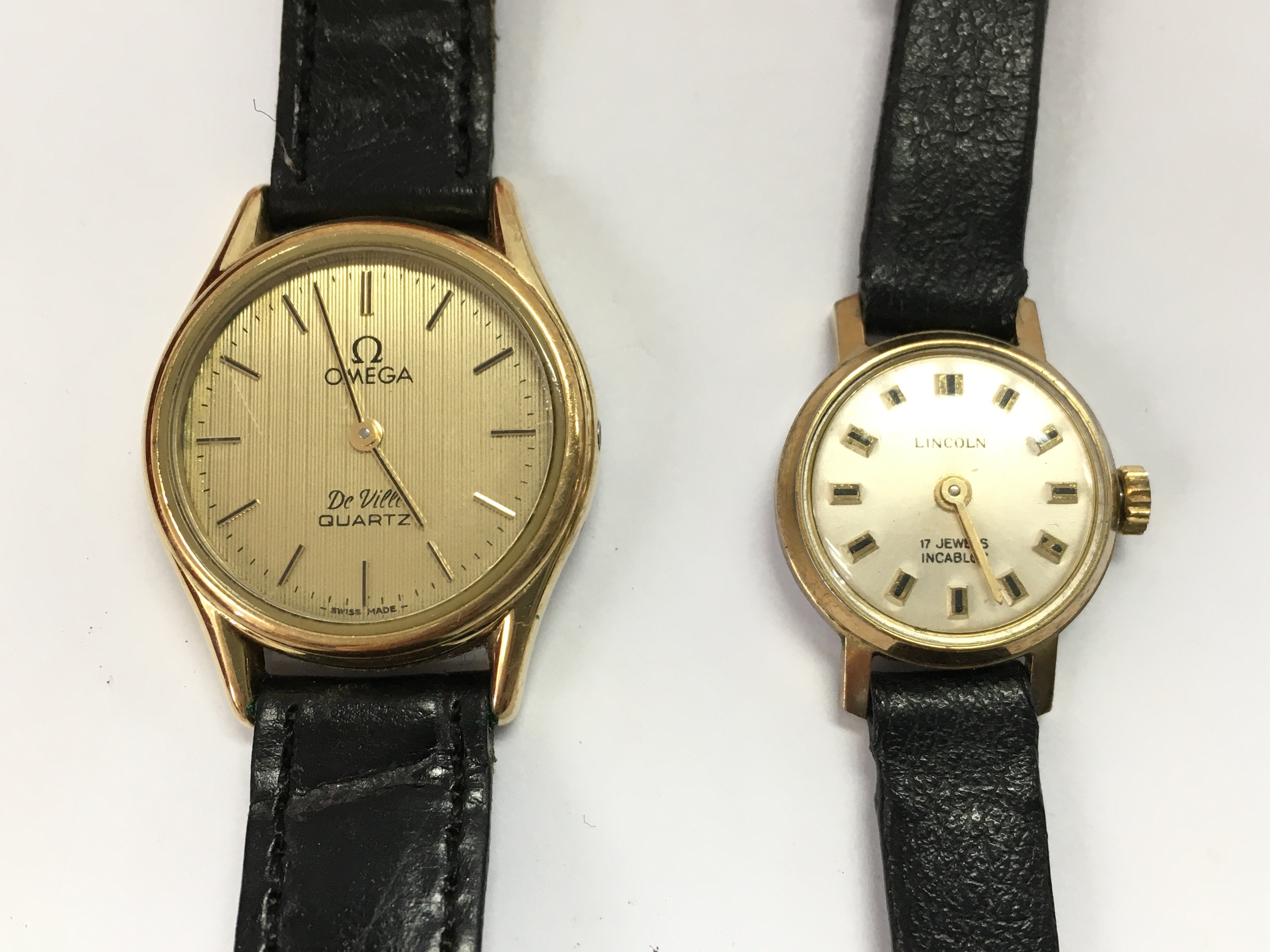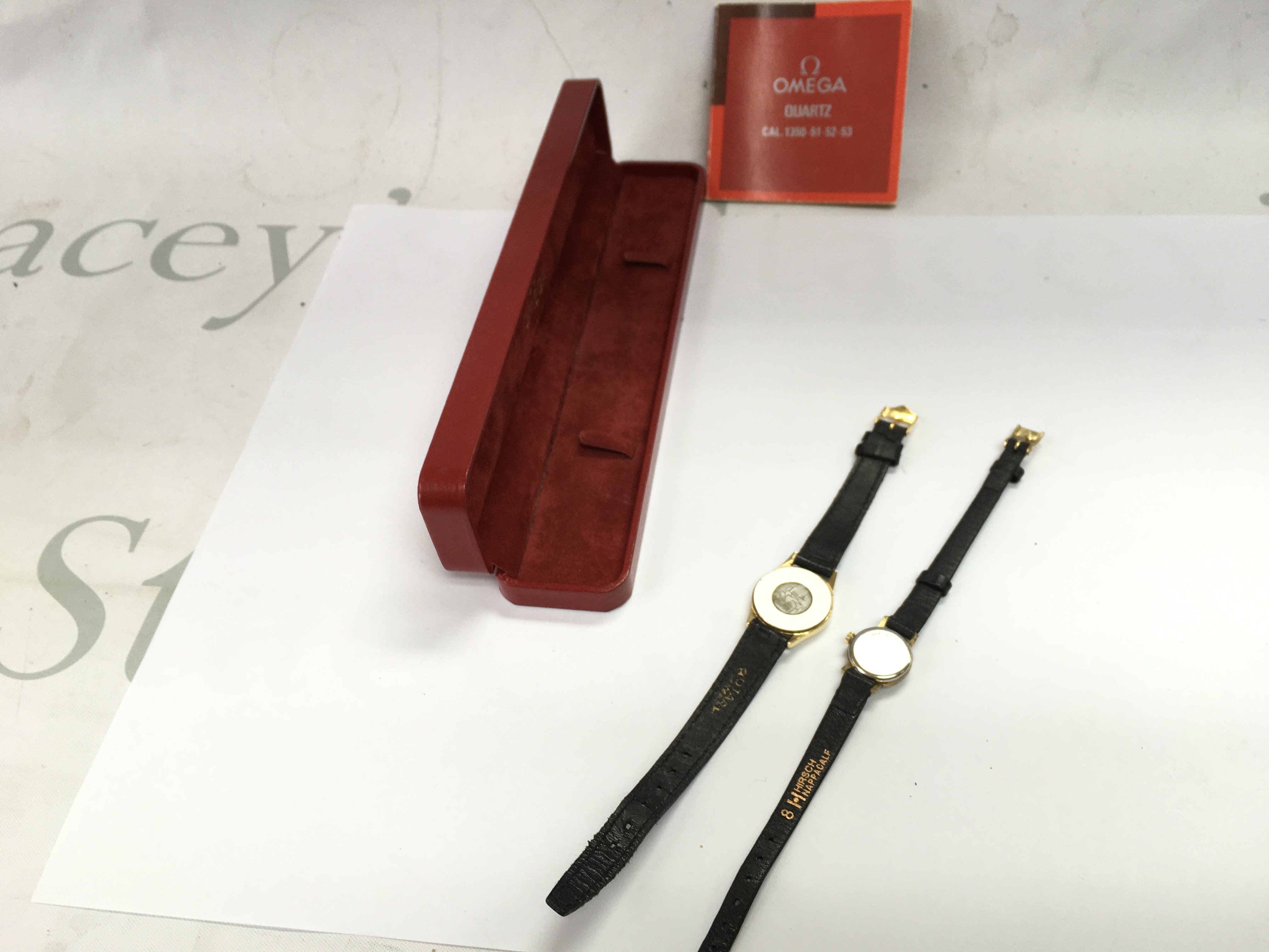 A ladies omega de ville quartz watch with box and one other vintage ladies wristwatch. Postage B
