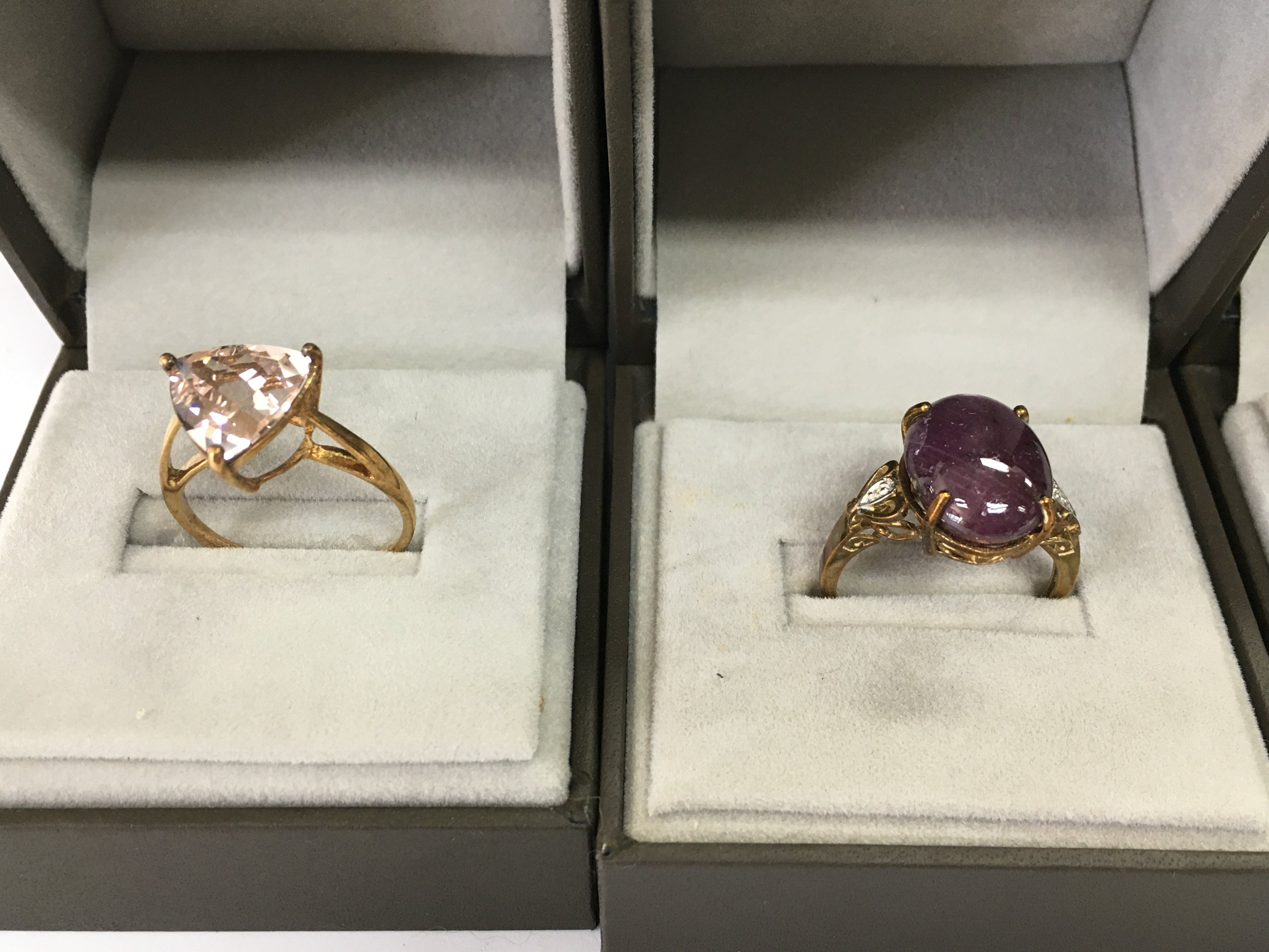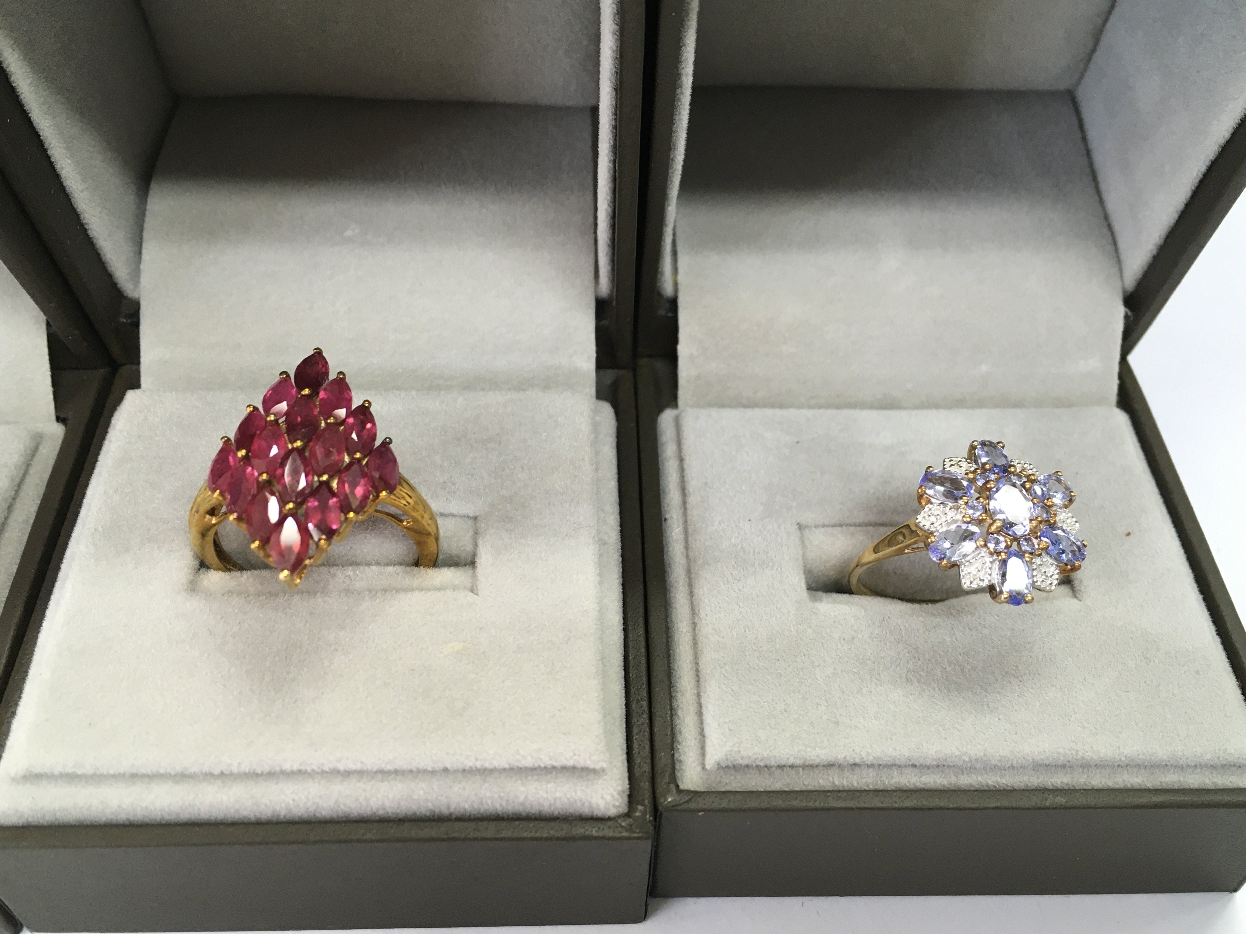 A collection of four 9ct gold rings set with assorted stones. 15.27g Postage B