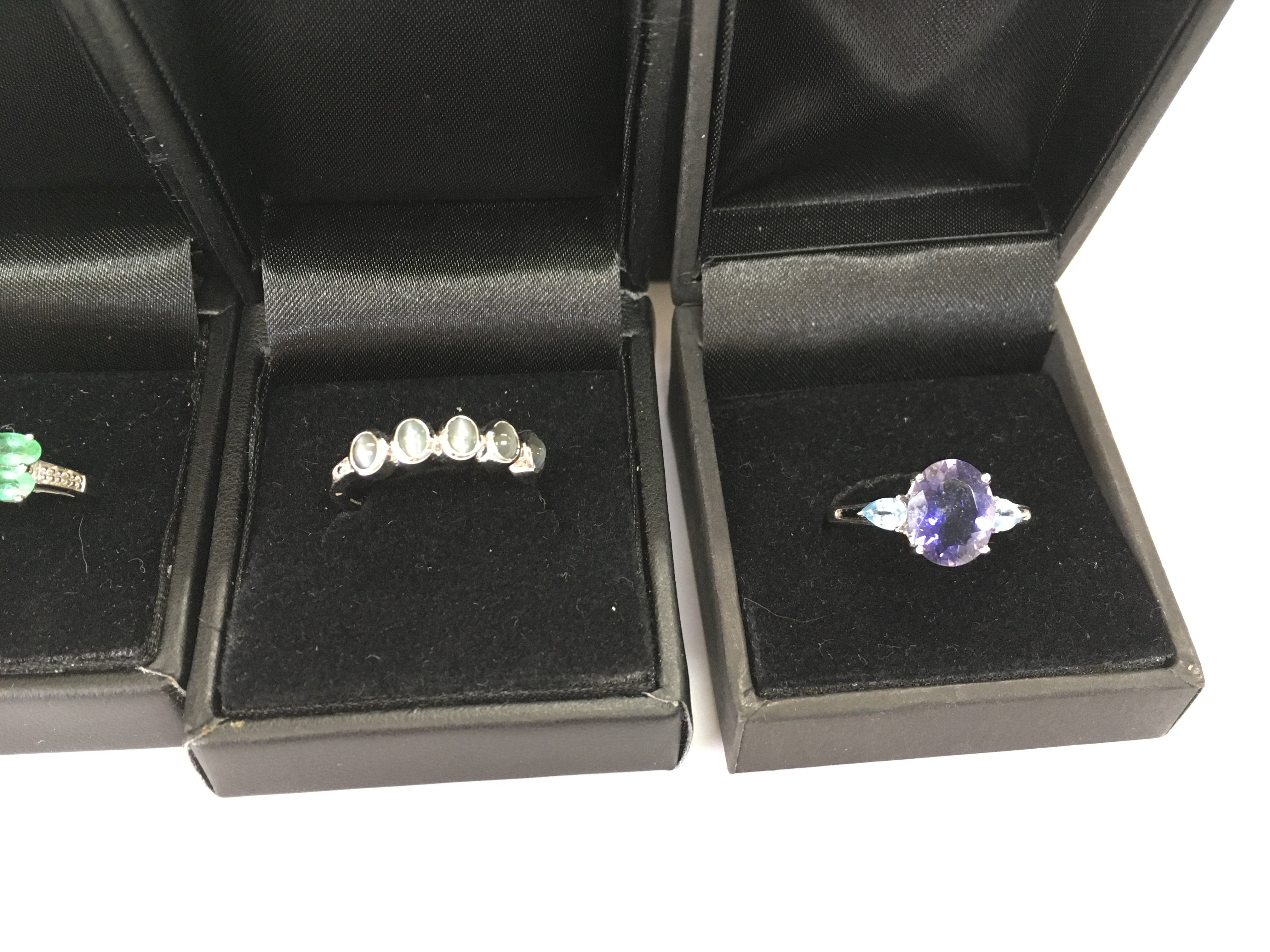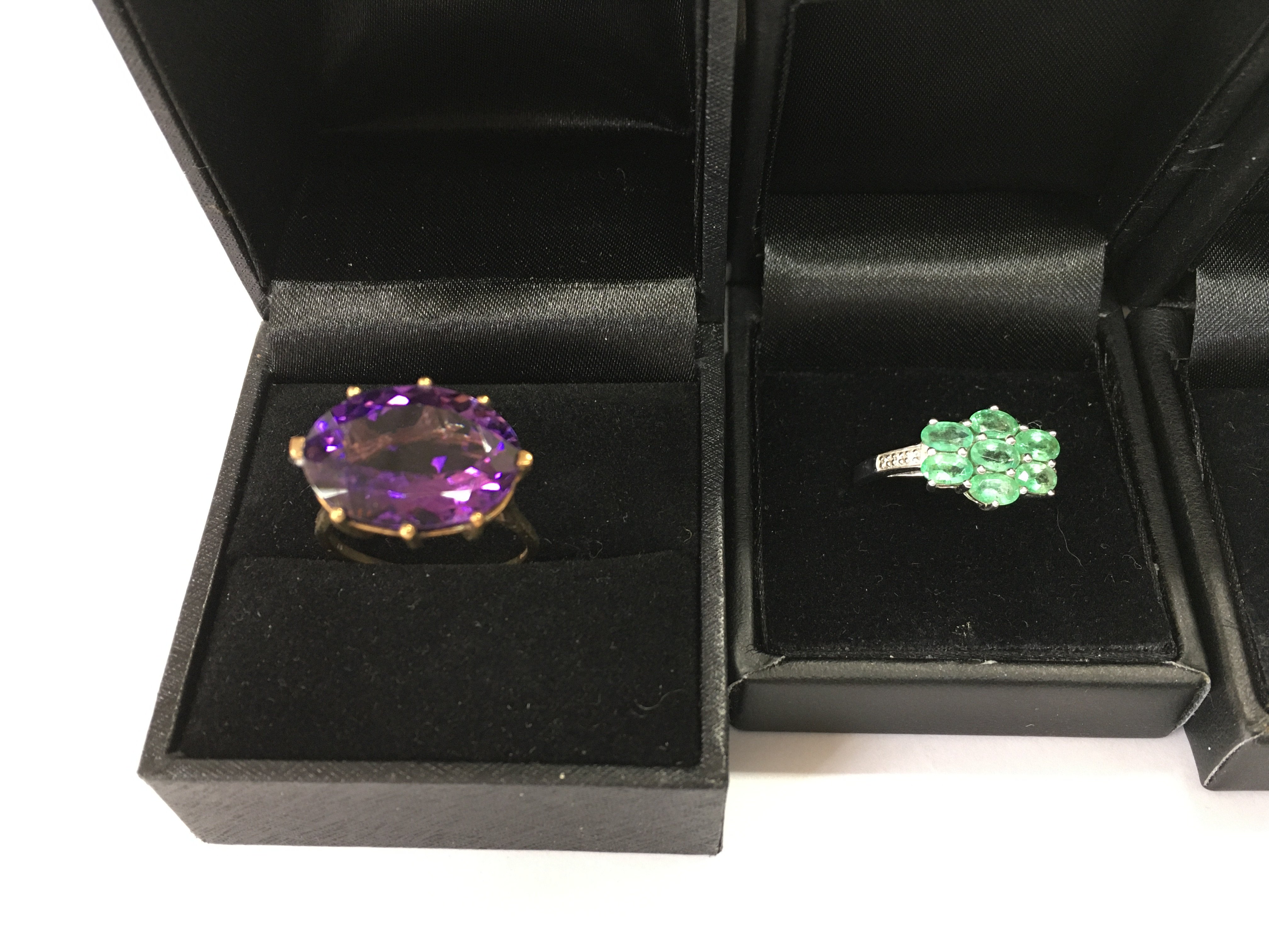 A collection of four 9ct gold rings set with various stones. 12.43g total Postage B