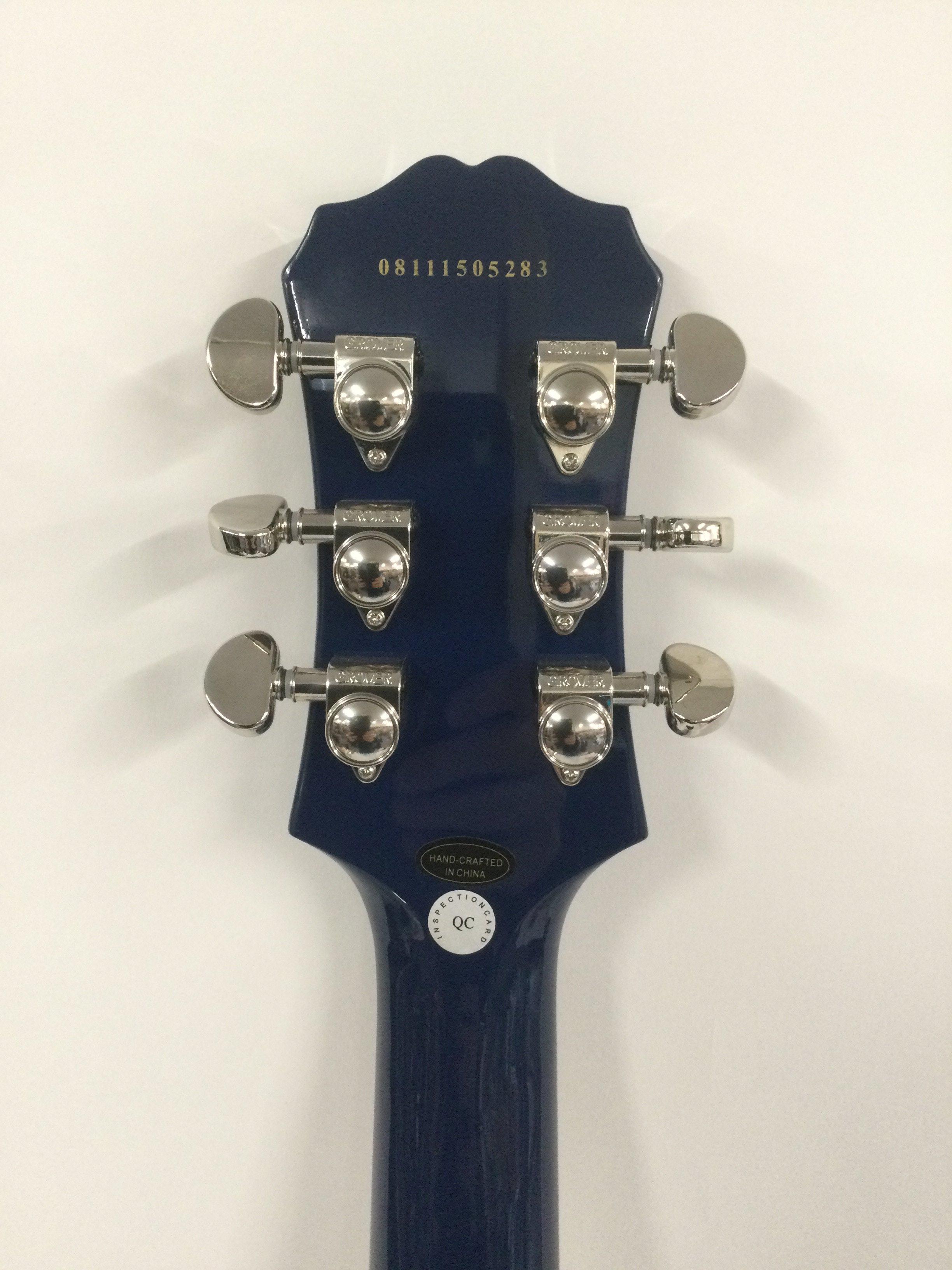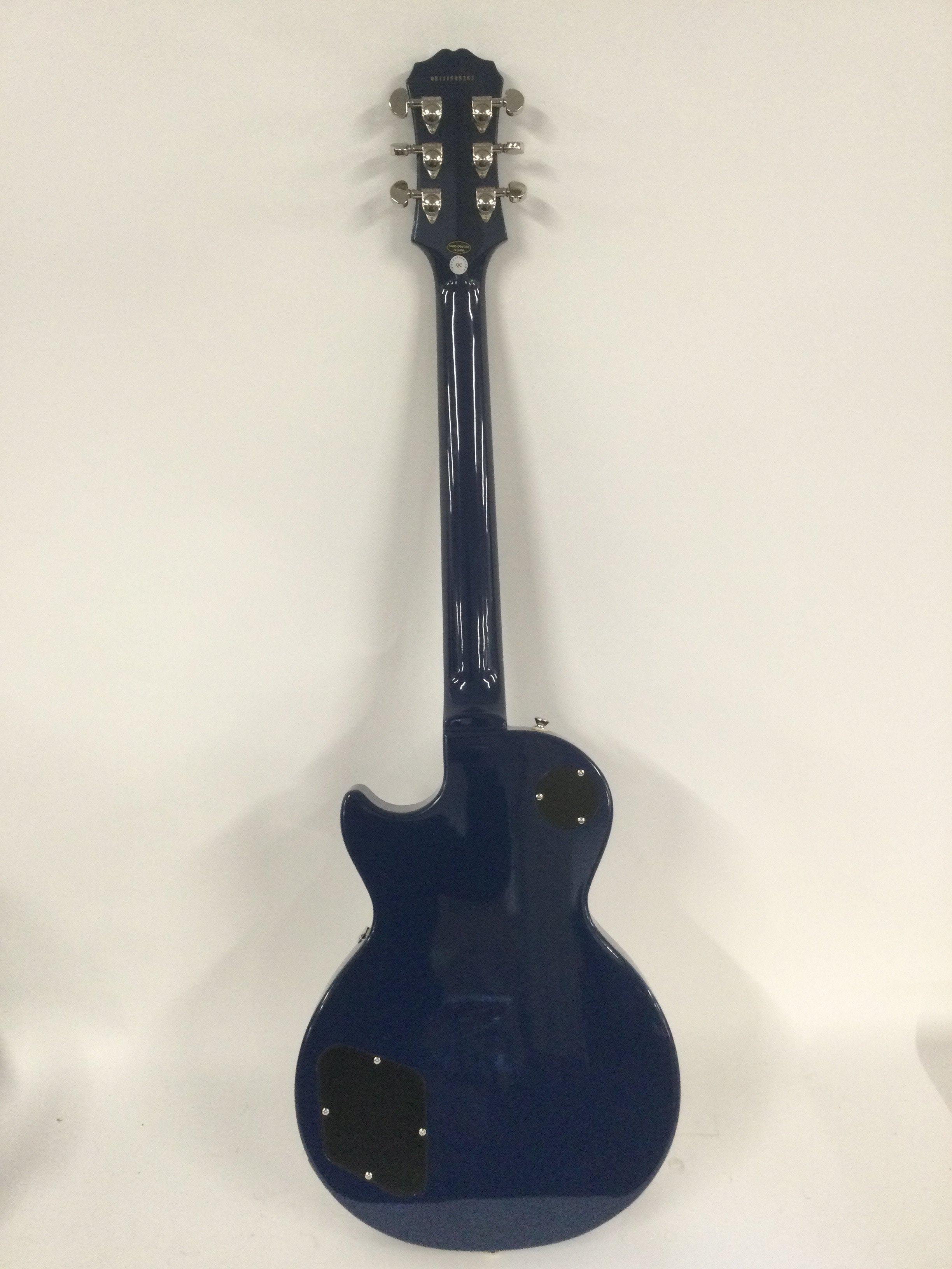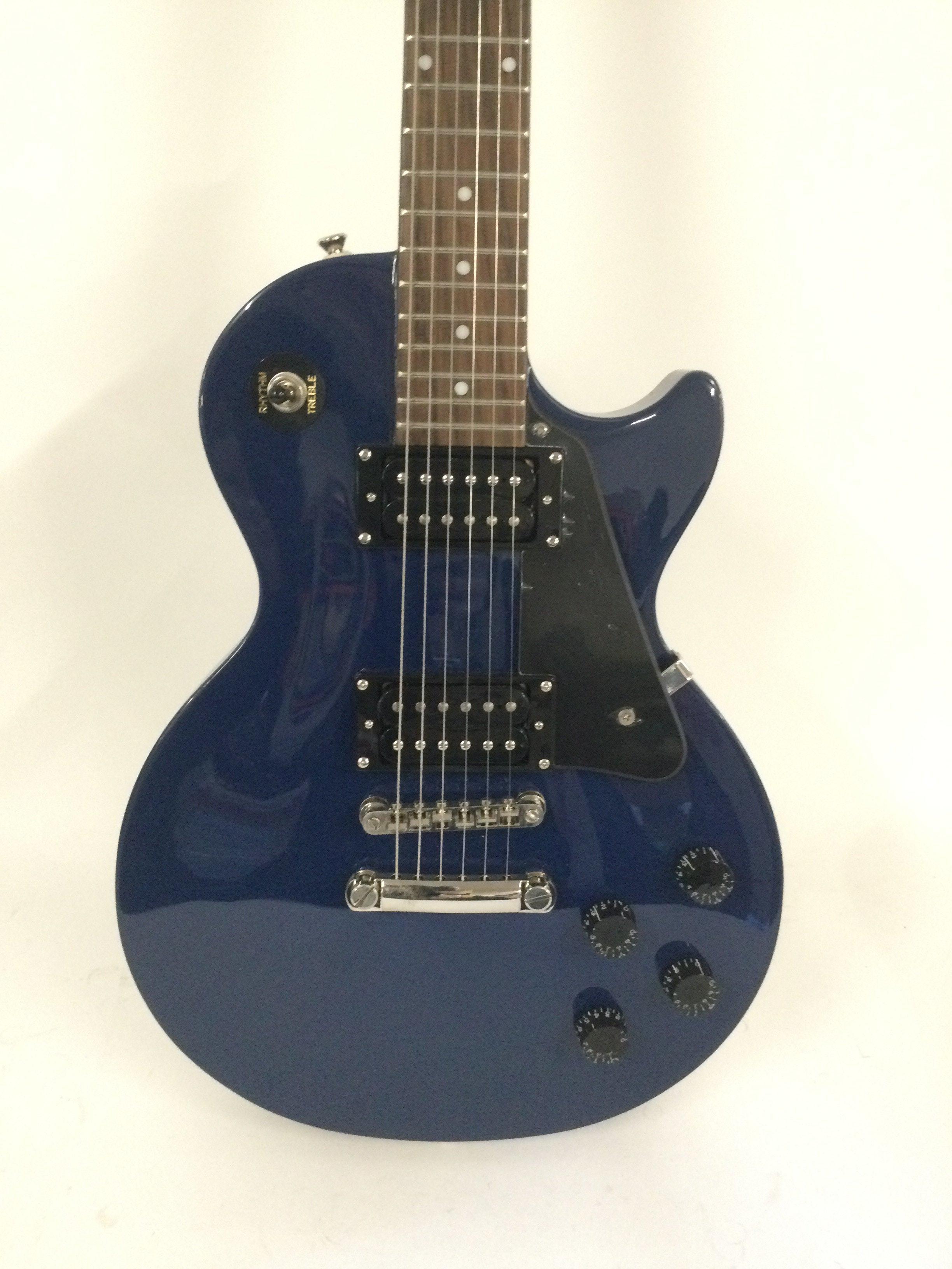 An as new condition Epiphone Les Paul Studio electric guitar in Blue. Twin Humbuckers and rosewood board with chrome parts and brightwork. As new condition unplayed with plastic still on the pick guard. Comes with original Epiphone branded hard carry case.