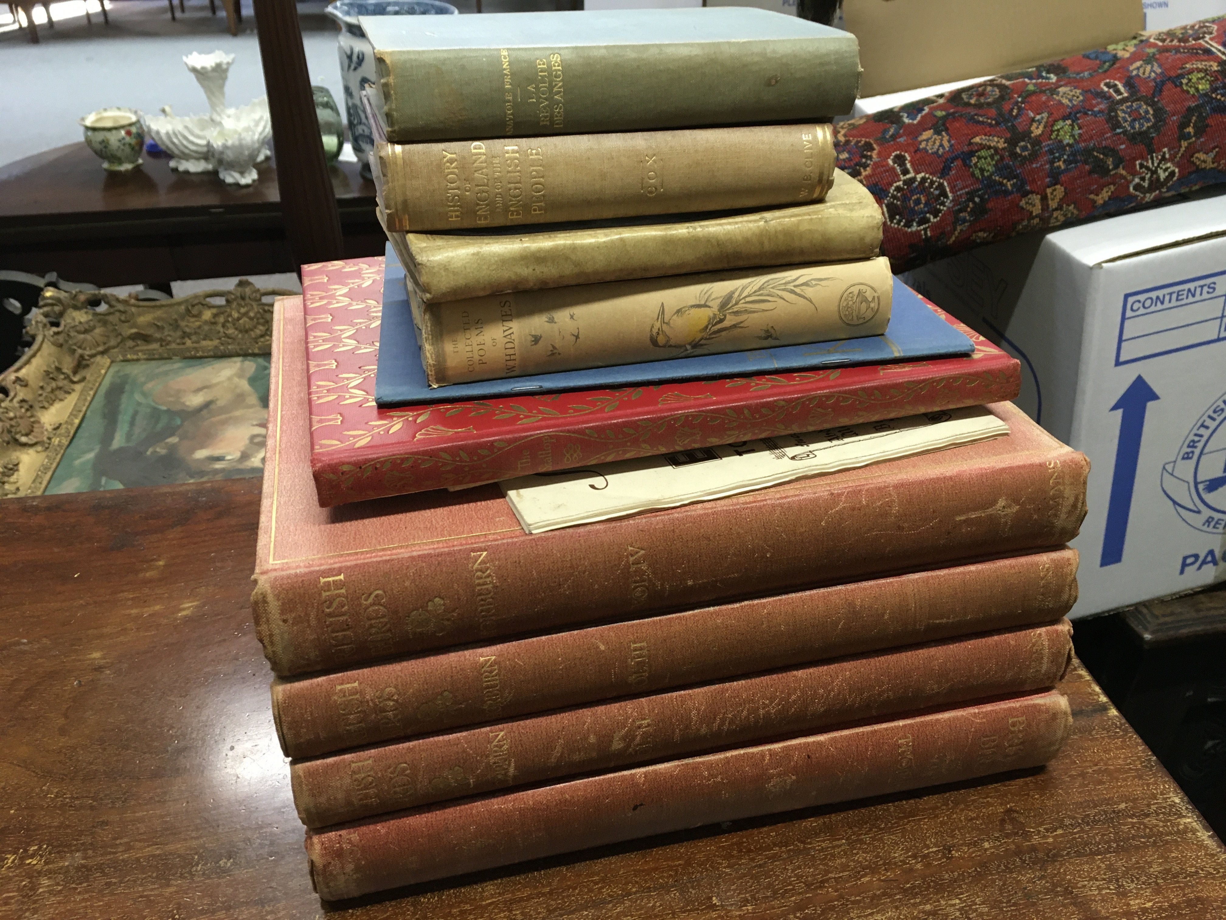 Vintage book collection including British Birds, Collected poems of W.H Davies, History of England and of the English People by W.B Clive etc. postage category C