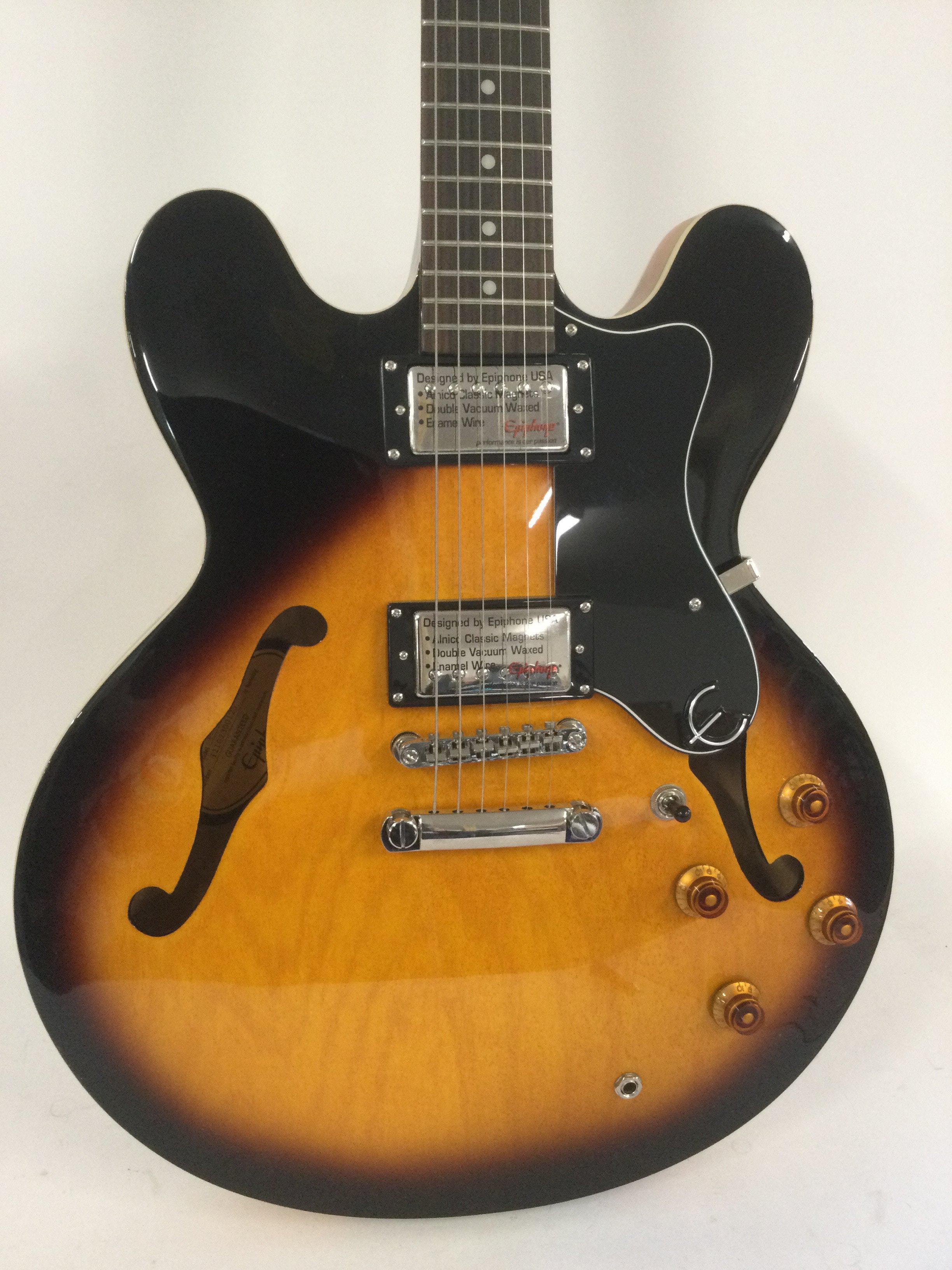 An Epiphone Dot electric guitar. Still has retail stickers attached. Comes with original retail box.