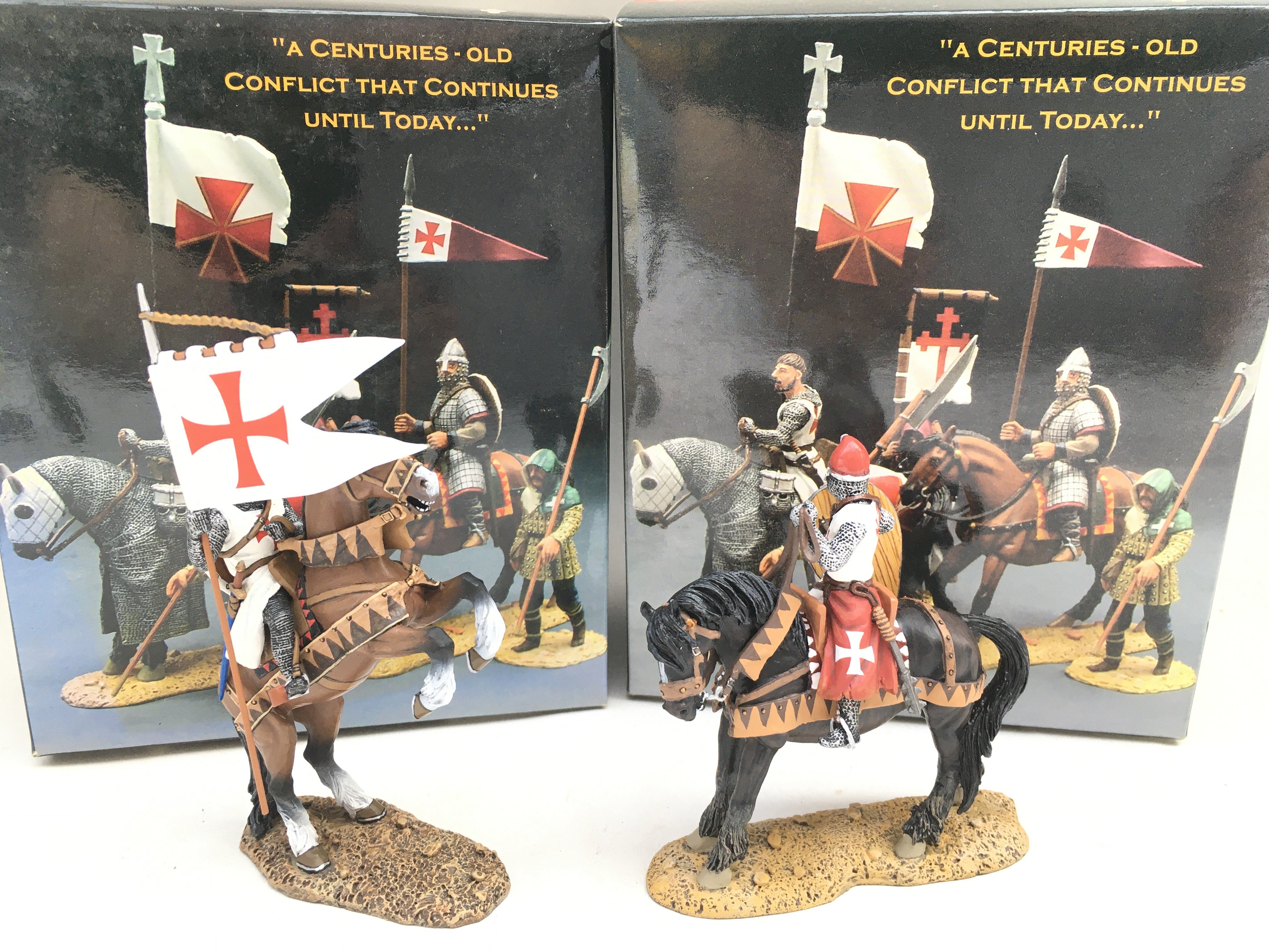 2 X Boxed King And Country Mounted Figures. A Templar With Banner and Knight With Shield.