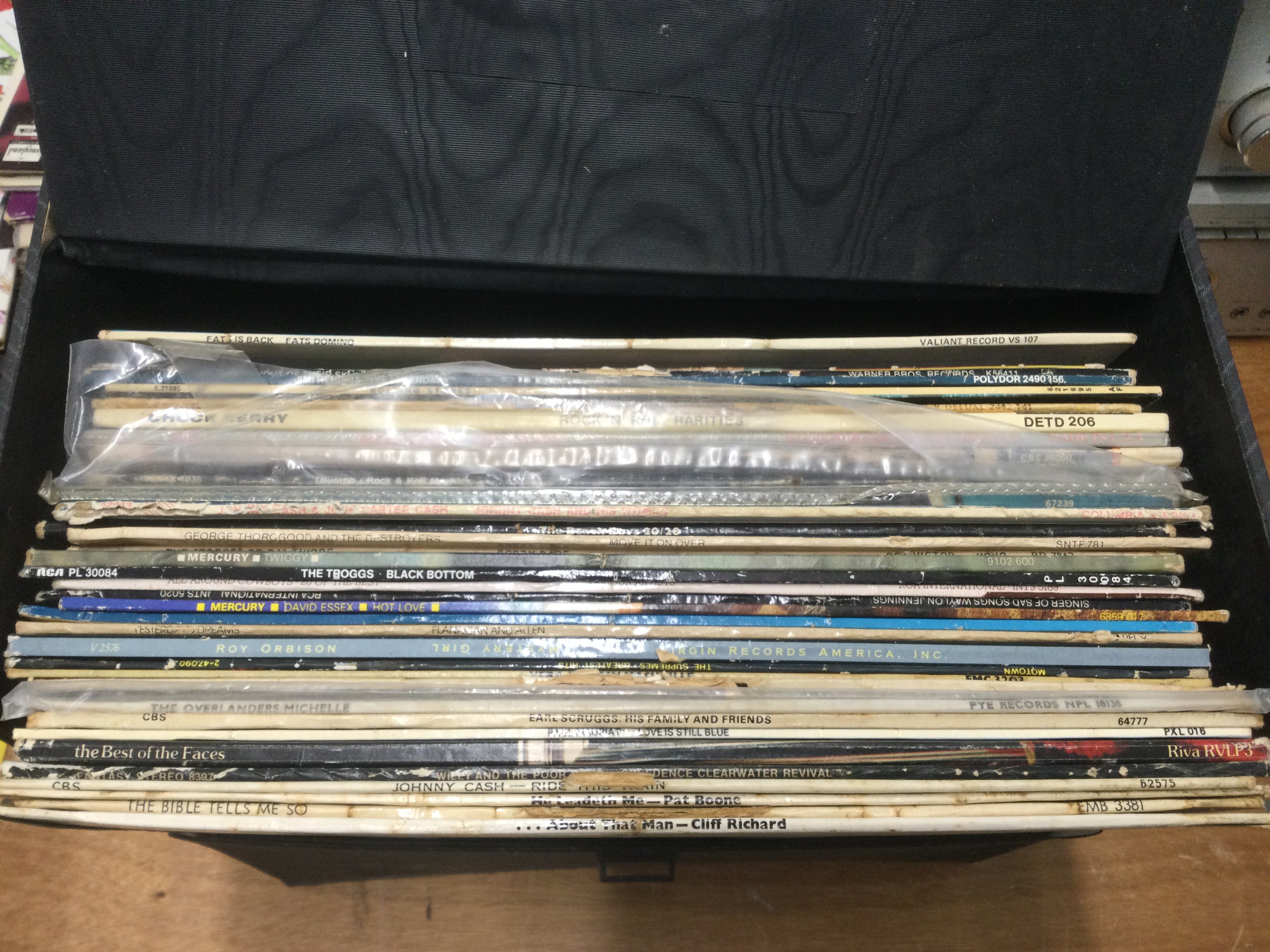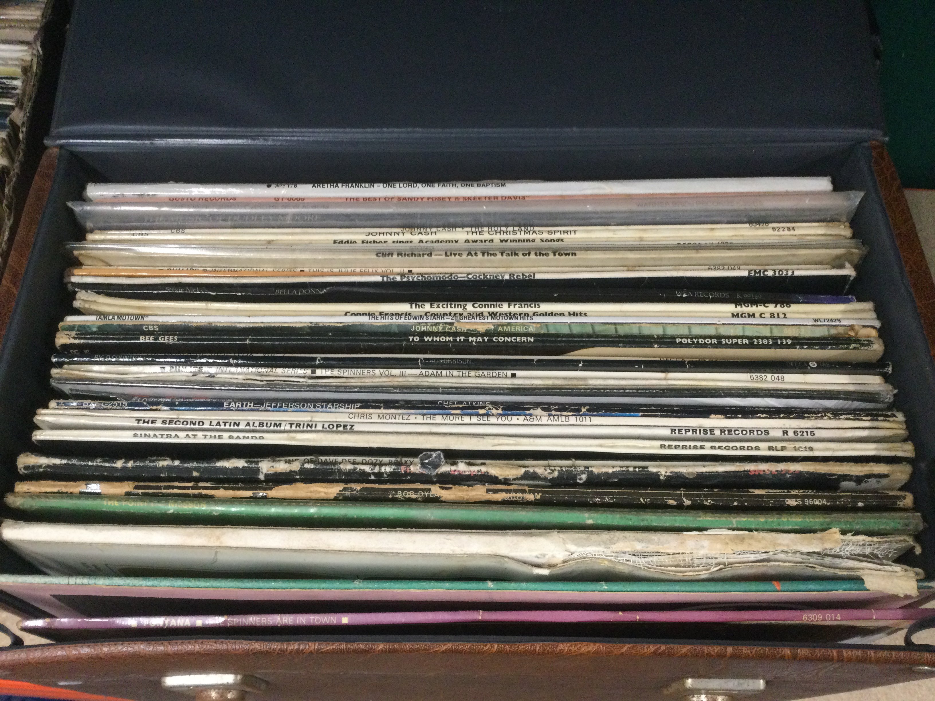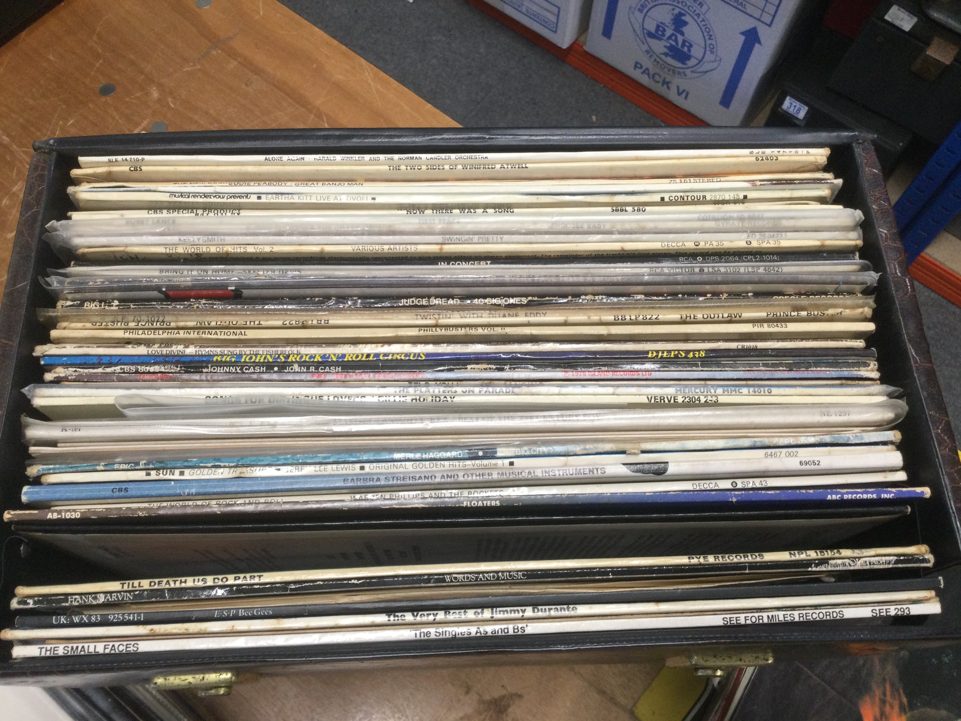 Eight record cases of LPs by various artists including The Small Faces, Bruce Springsteen, Elvis Presley and others.