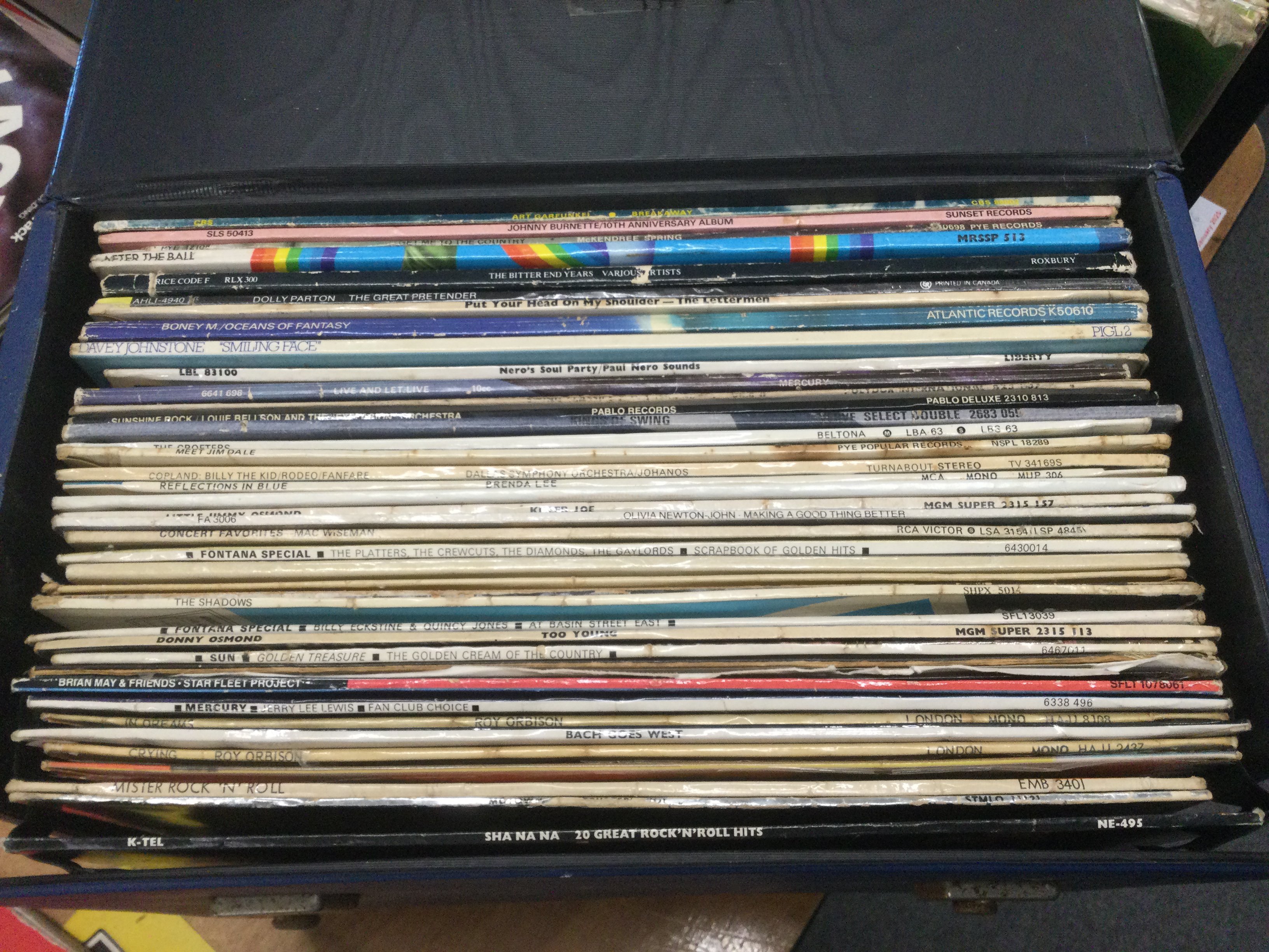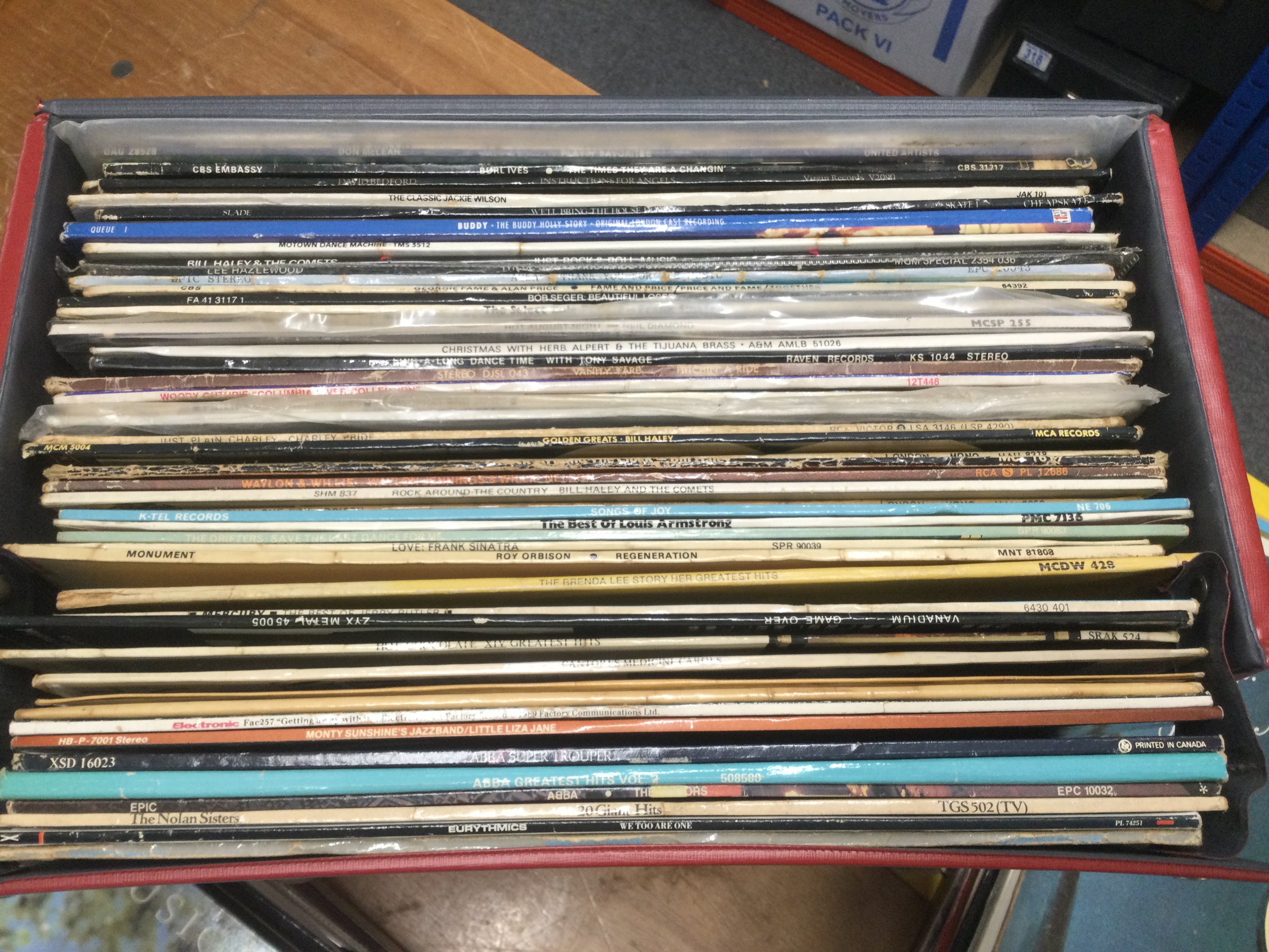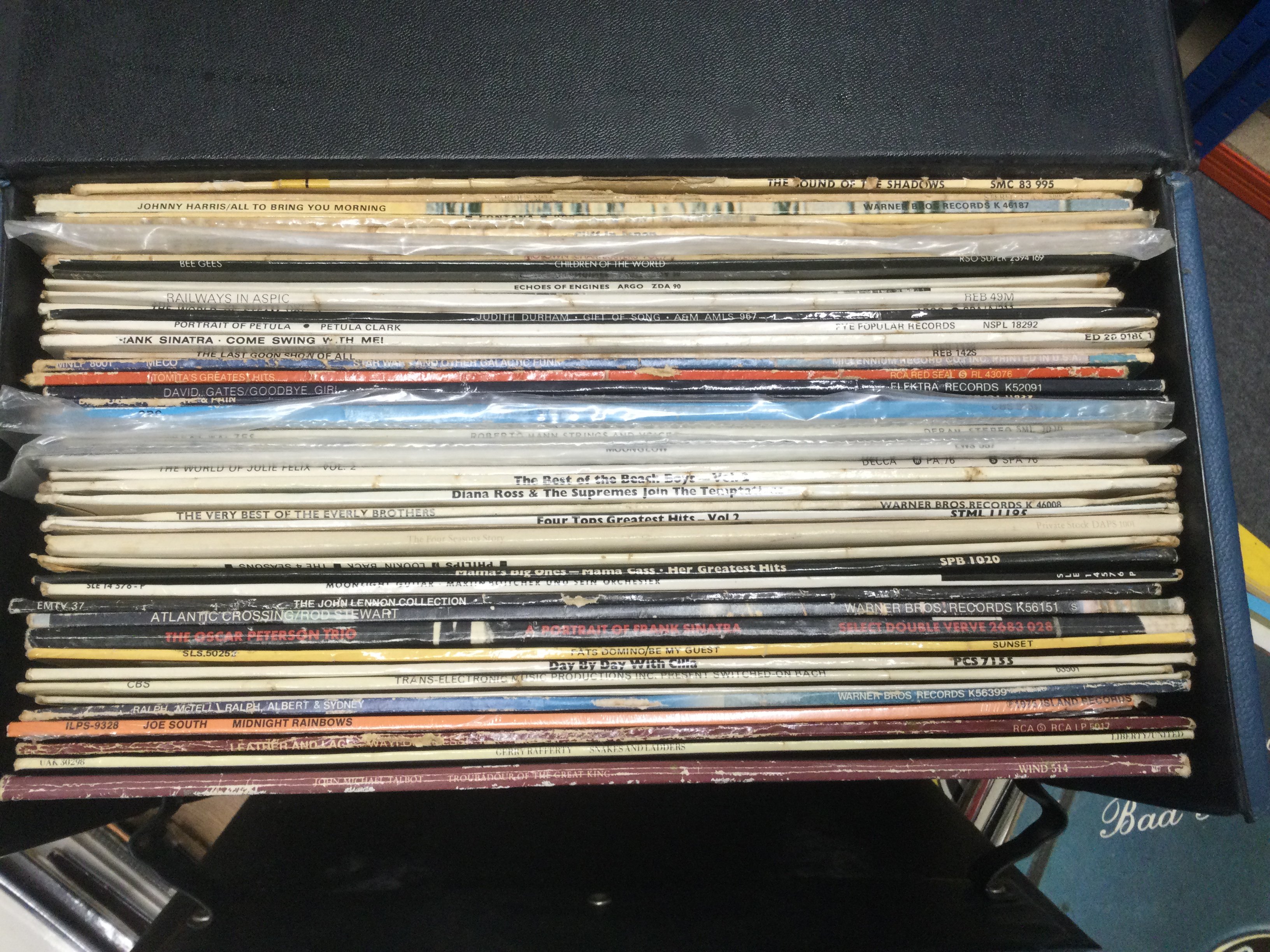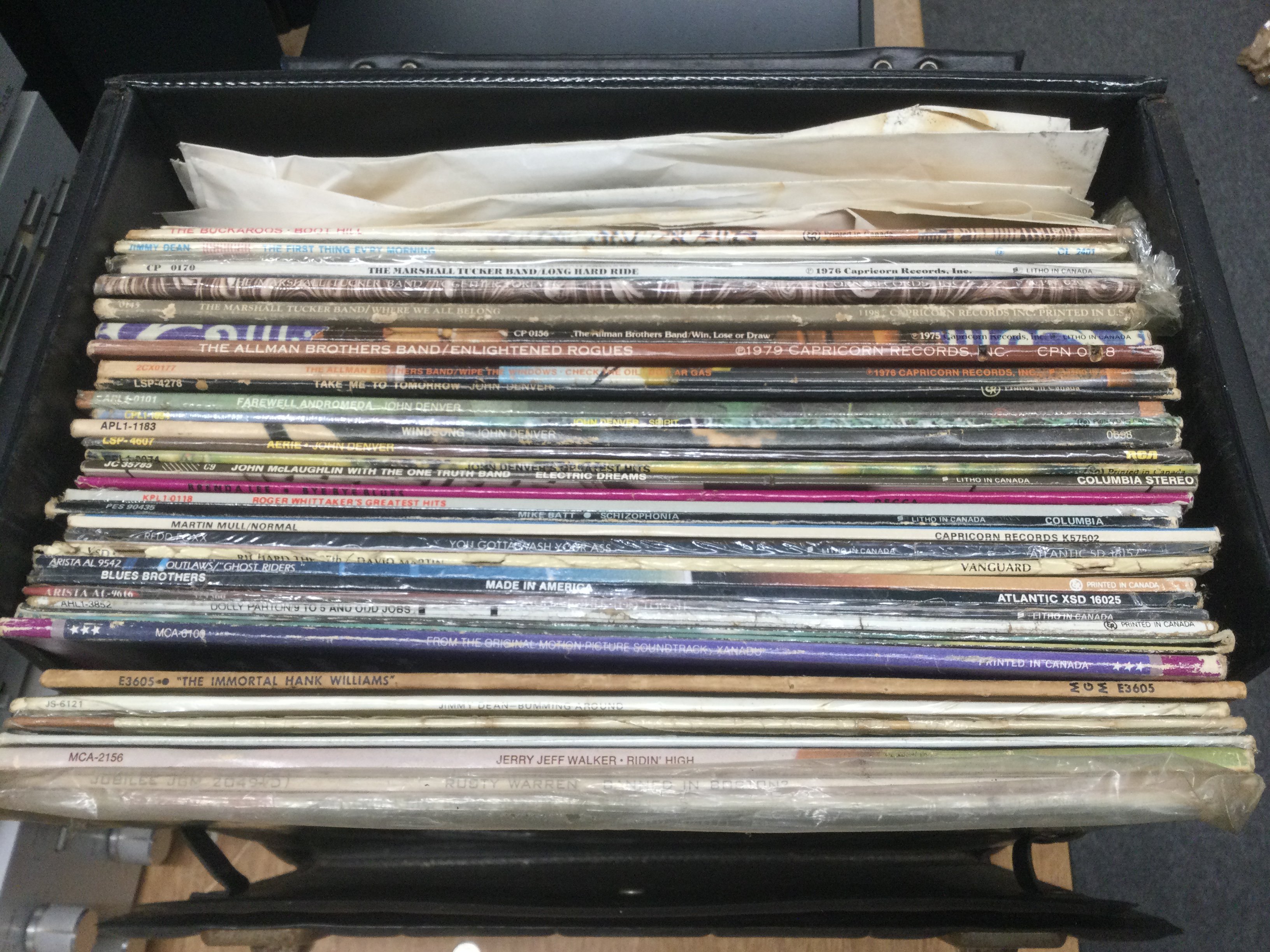 Eight record cases of LPs by various artists including The Small Faces, Bruce Springsteen, Elvis Presley and others.