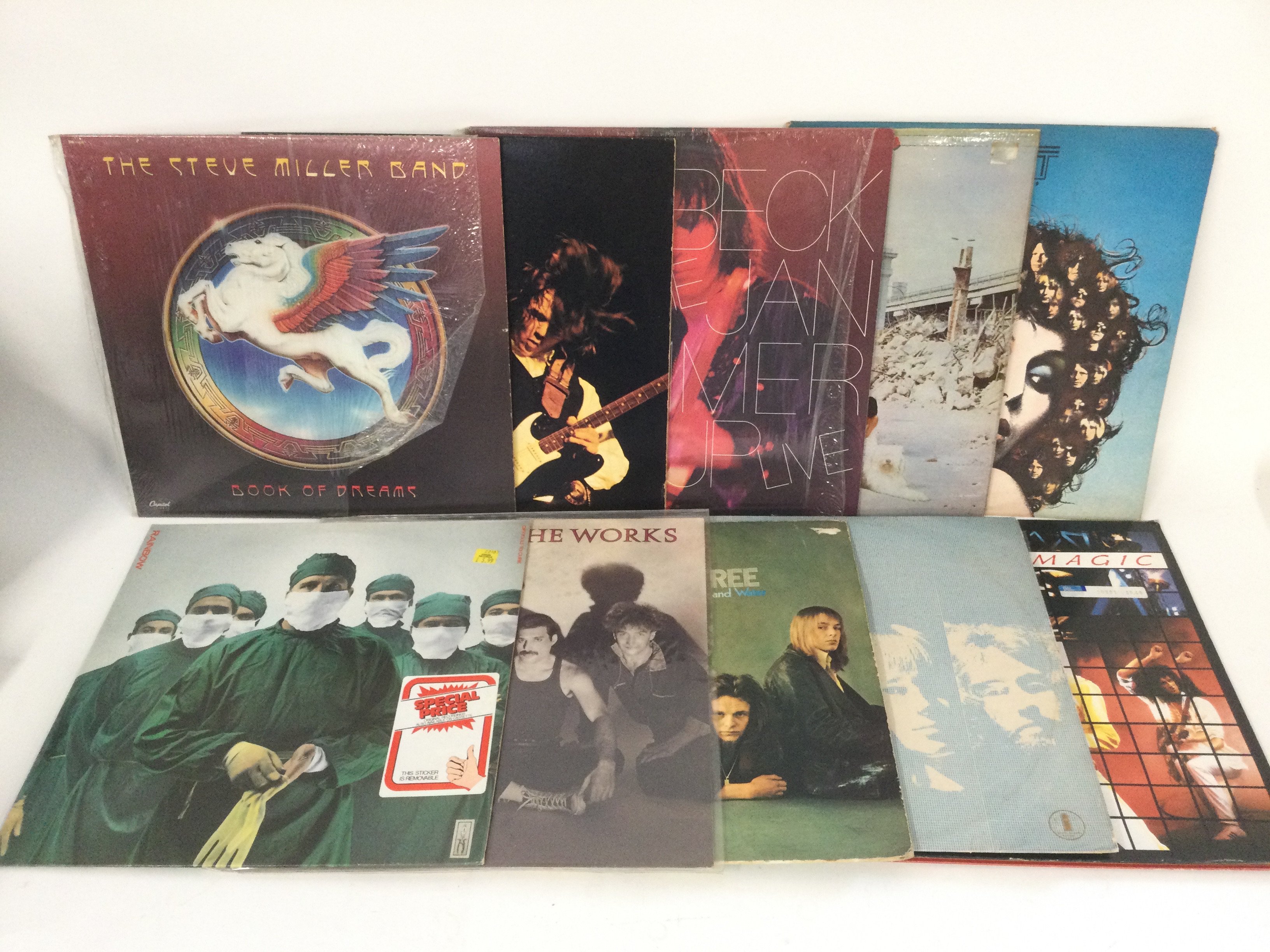 Two bags containing 20 rock LPs by various LPs including Deep Purple, Queen, Rainbow, Free and others.