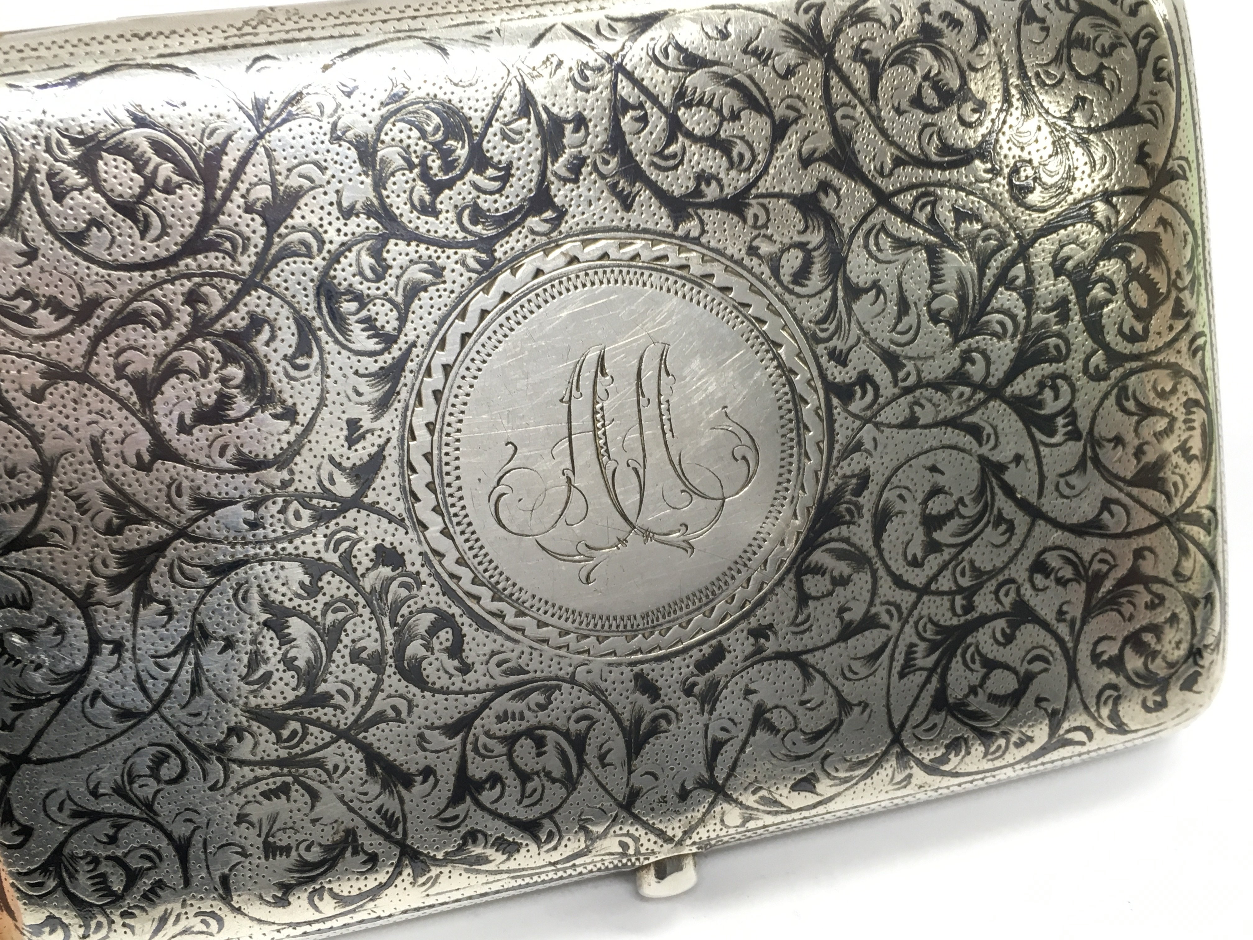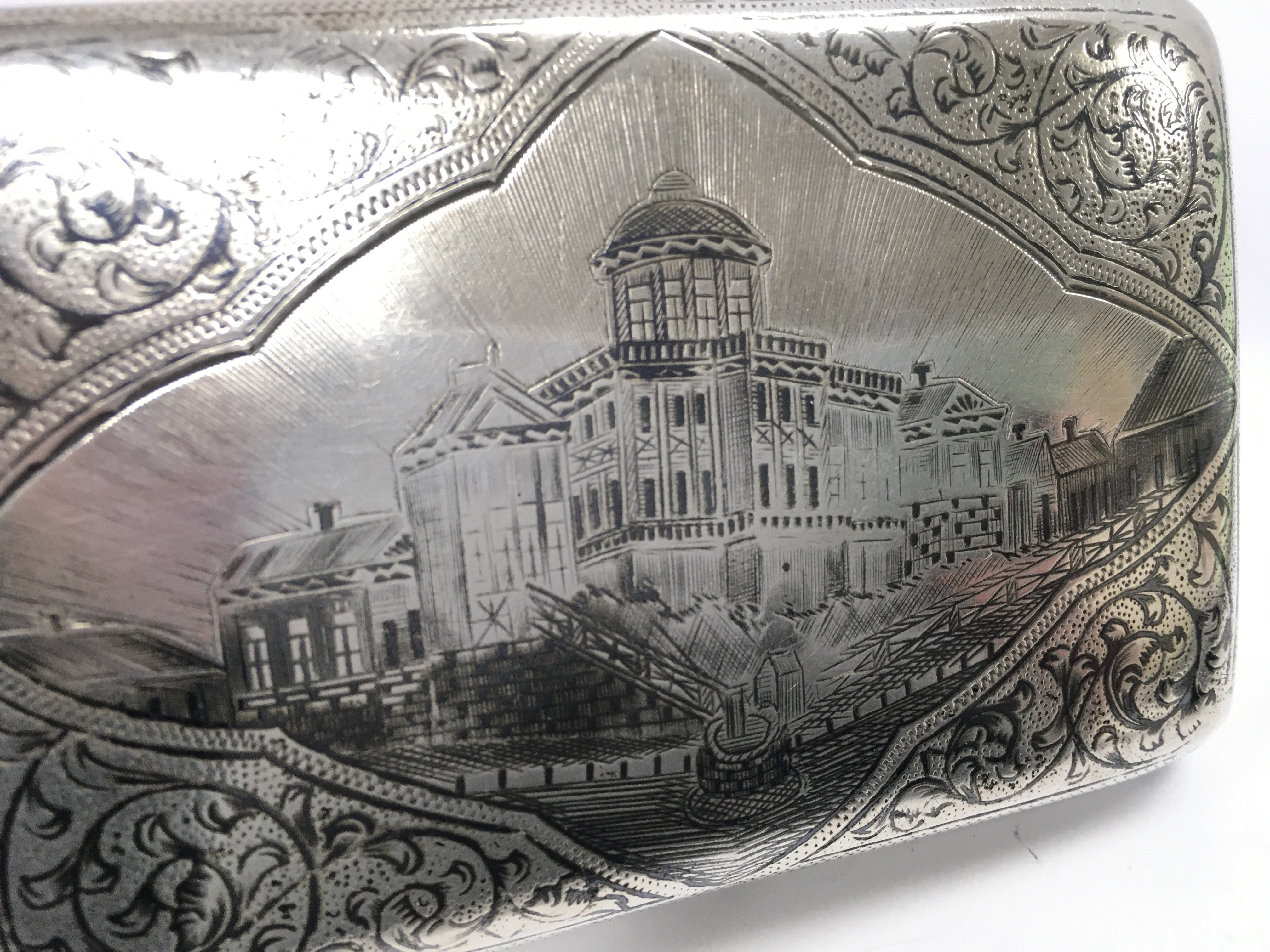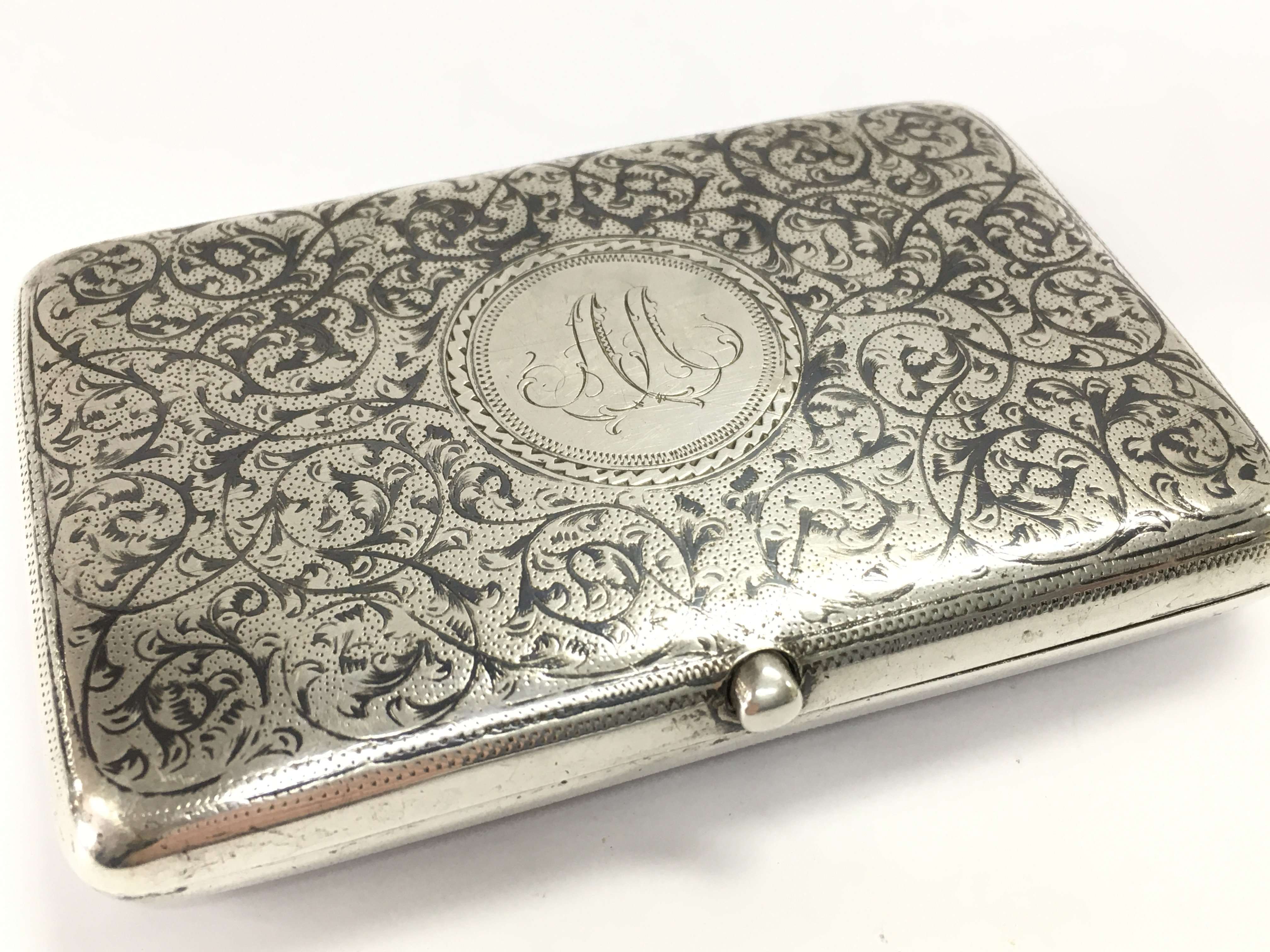 Circa 1880s Imperial Russian .875 Silver and Niello cigarette case . 133g total weight approximately . Postage category A