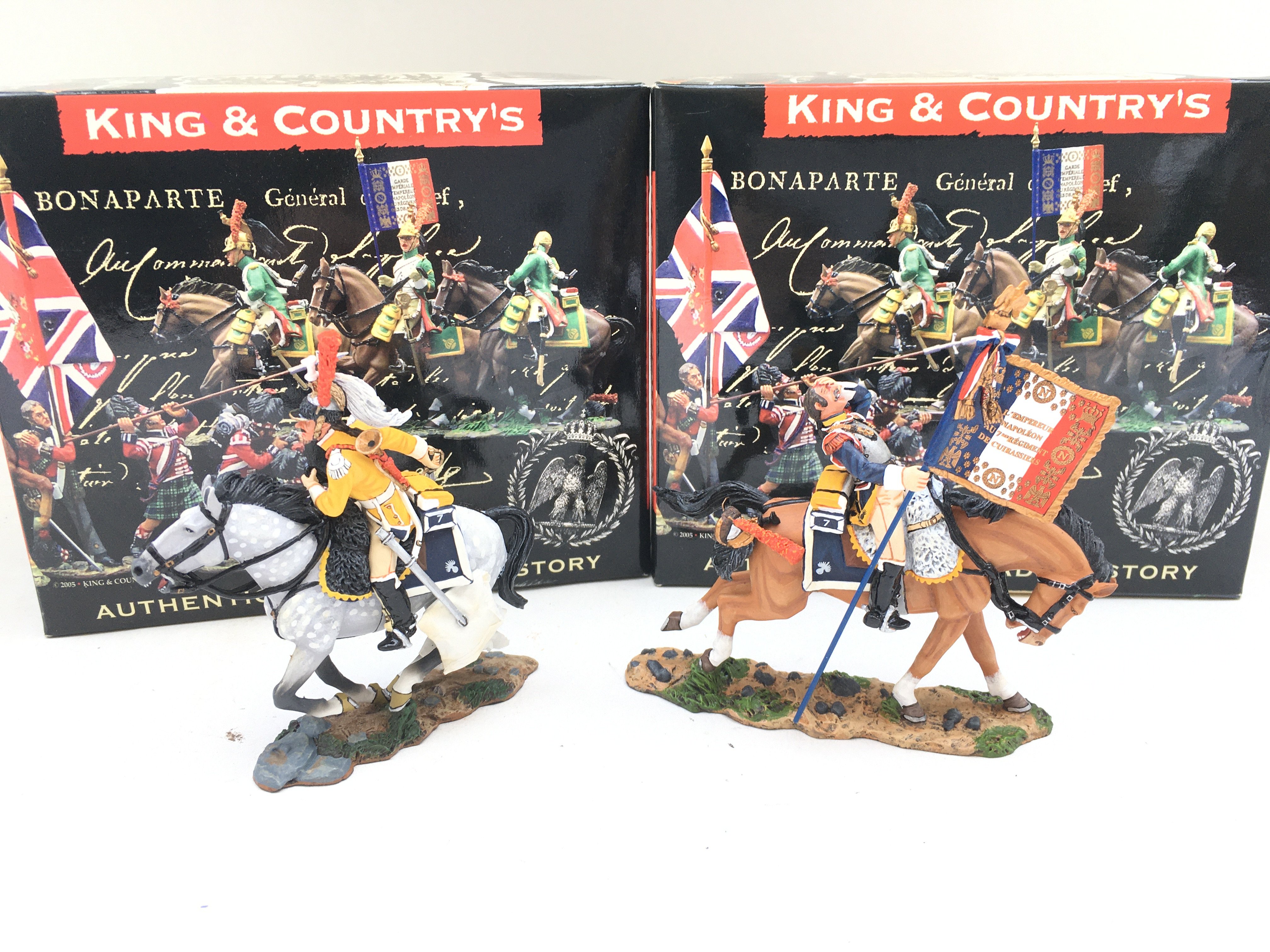 2 X Boxed King And Country Napoleonics Mounted Figures. A Wounded Flag-bearer And A Charging Trumpeter.