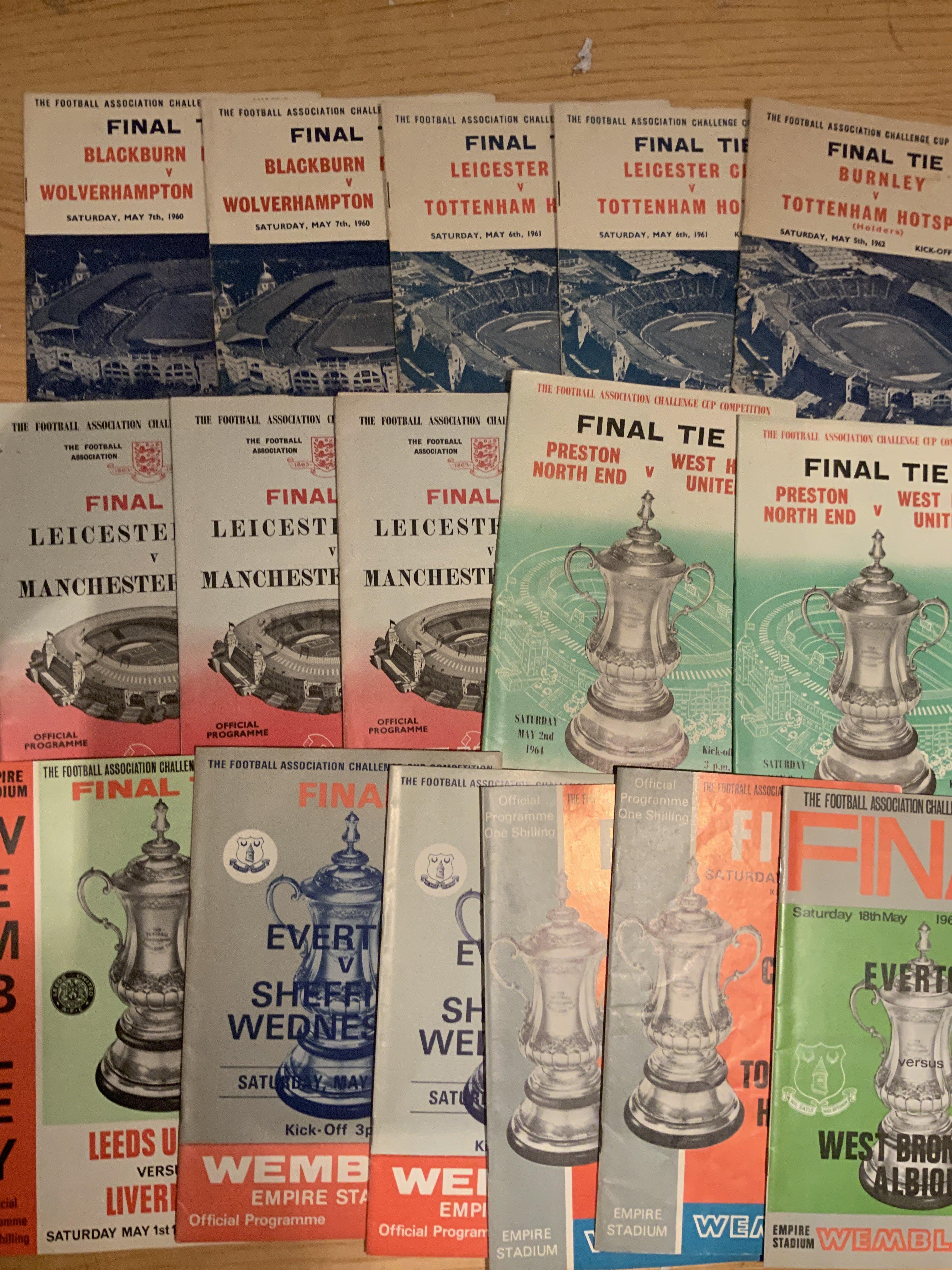 FA Cup Final Football Programmes: Includes 1949, 1952, 1954 then a run from 1956 to 1968 with some duplication. Mainly good with a couple having pen to cover. (22)