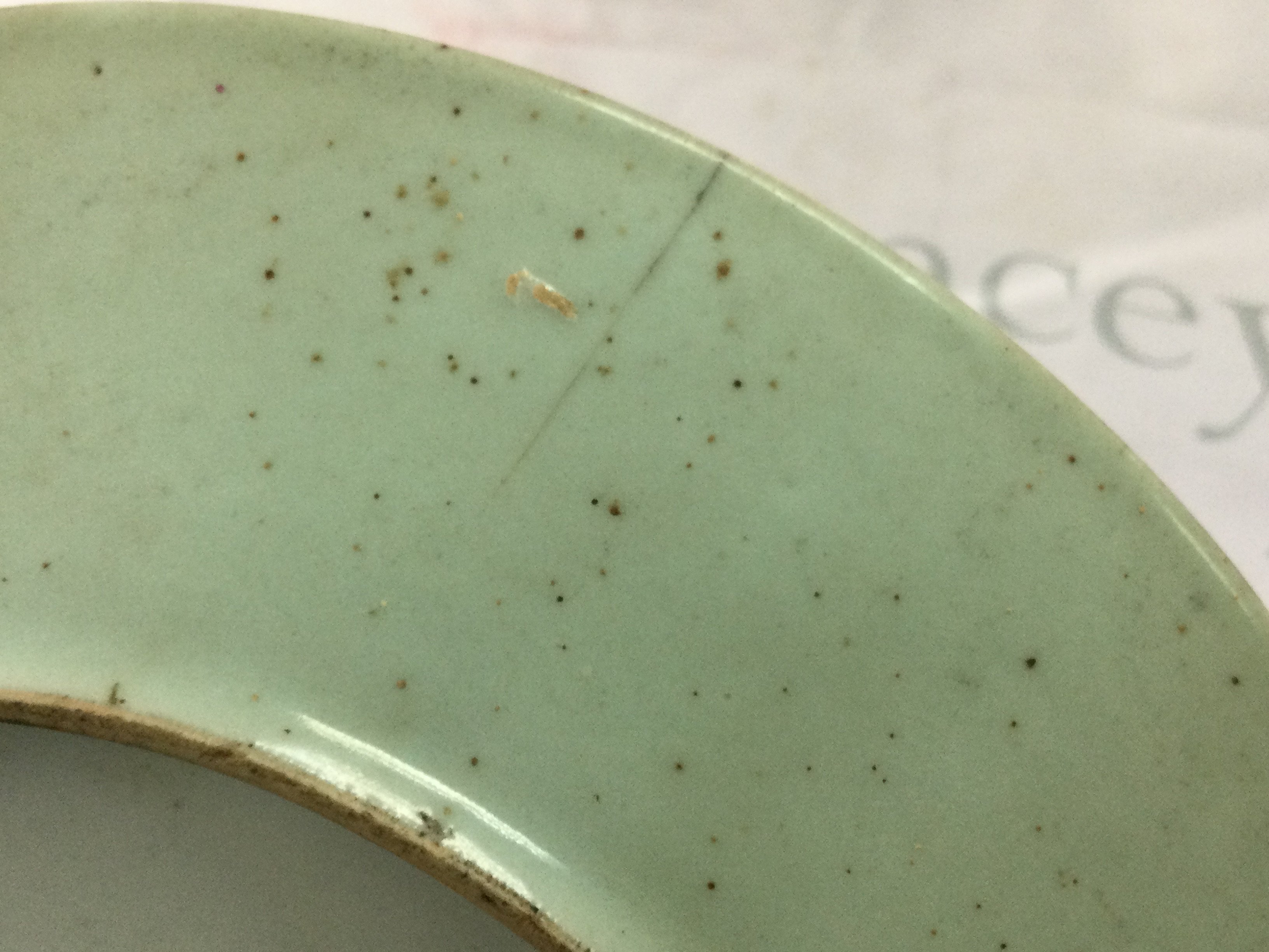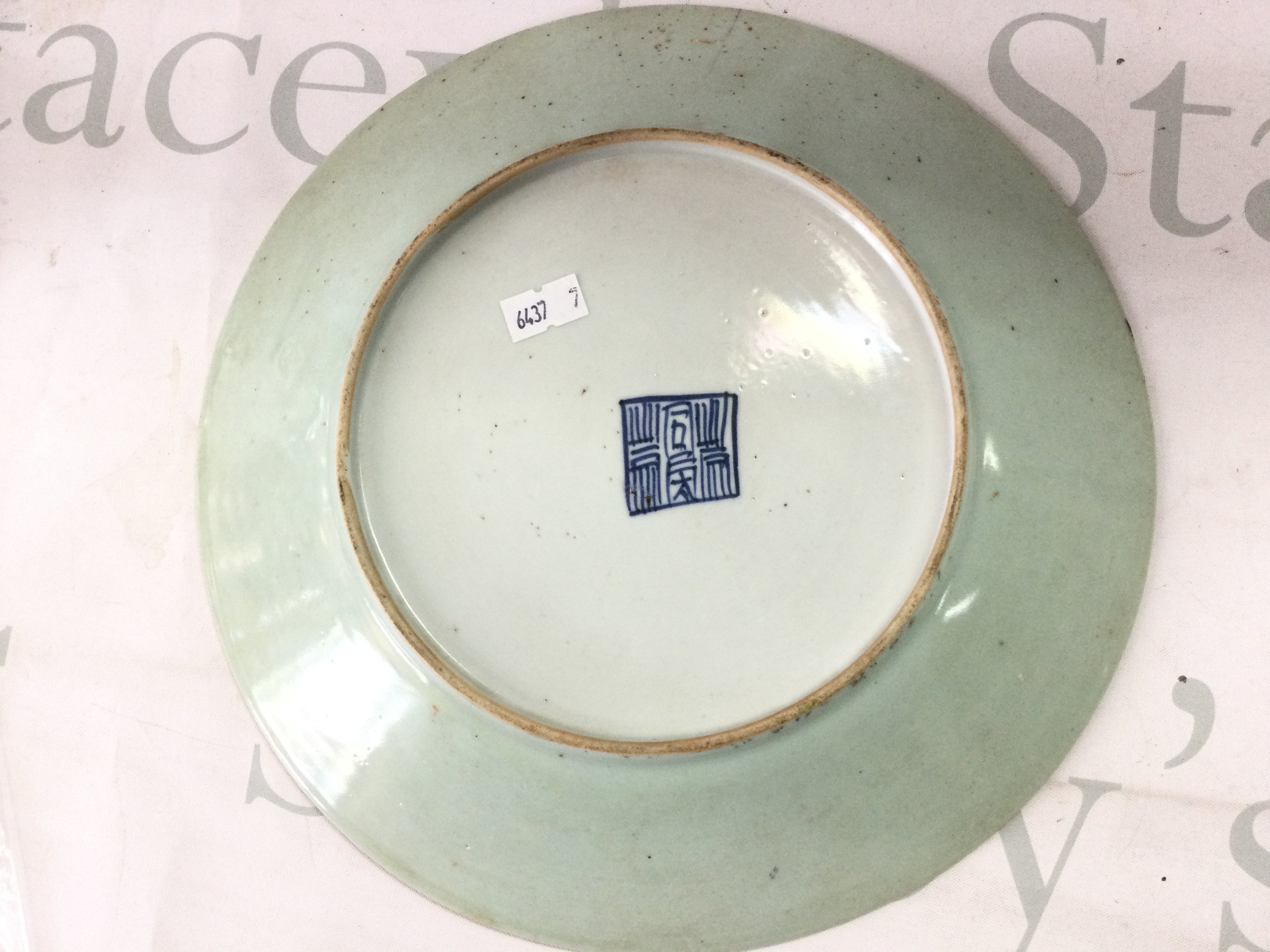 A Chinese Cantonese Famille Rose dish 26cm wide . Hairline crack on the underside of the dish.