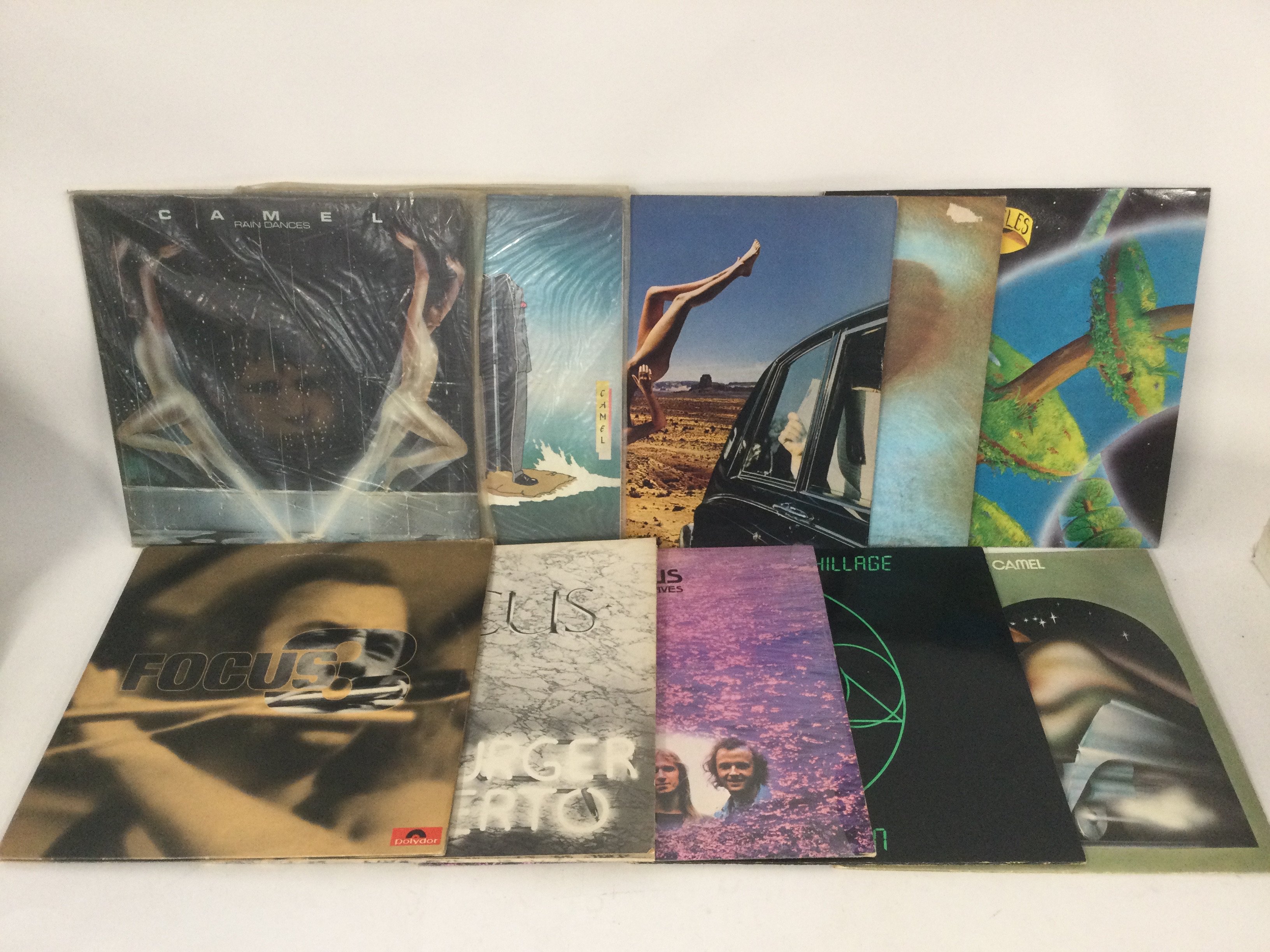 Two bags containing 20 prog rock LPs by various artists including Camel, Nektar, Man, Curved Air and others.