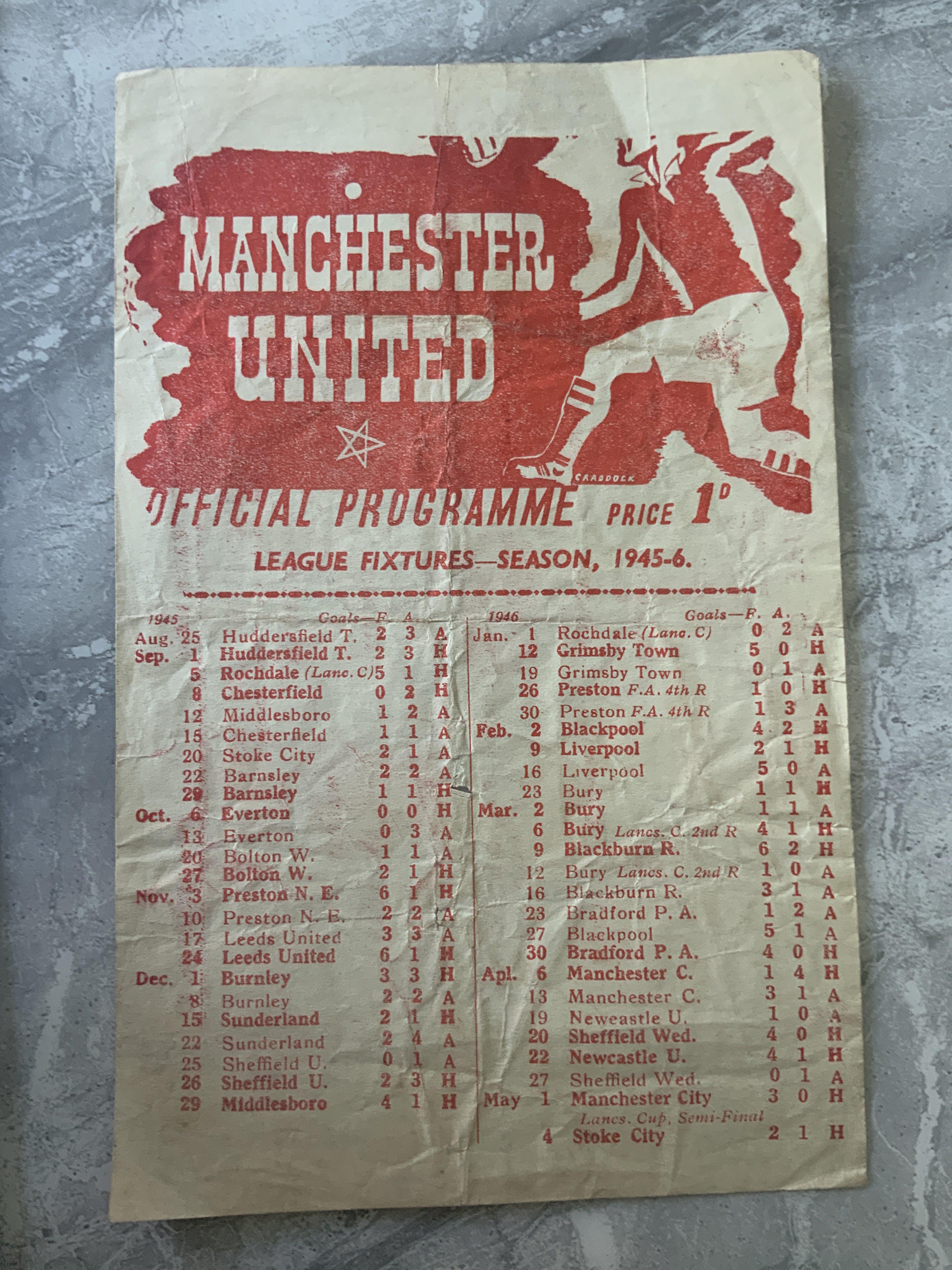 45/46 Manchester United v Burnley Lancs Cup Football Programme: Fair/good condition with no team changes. Fold and creasing.