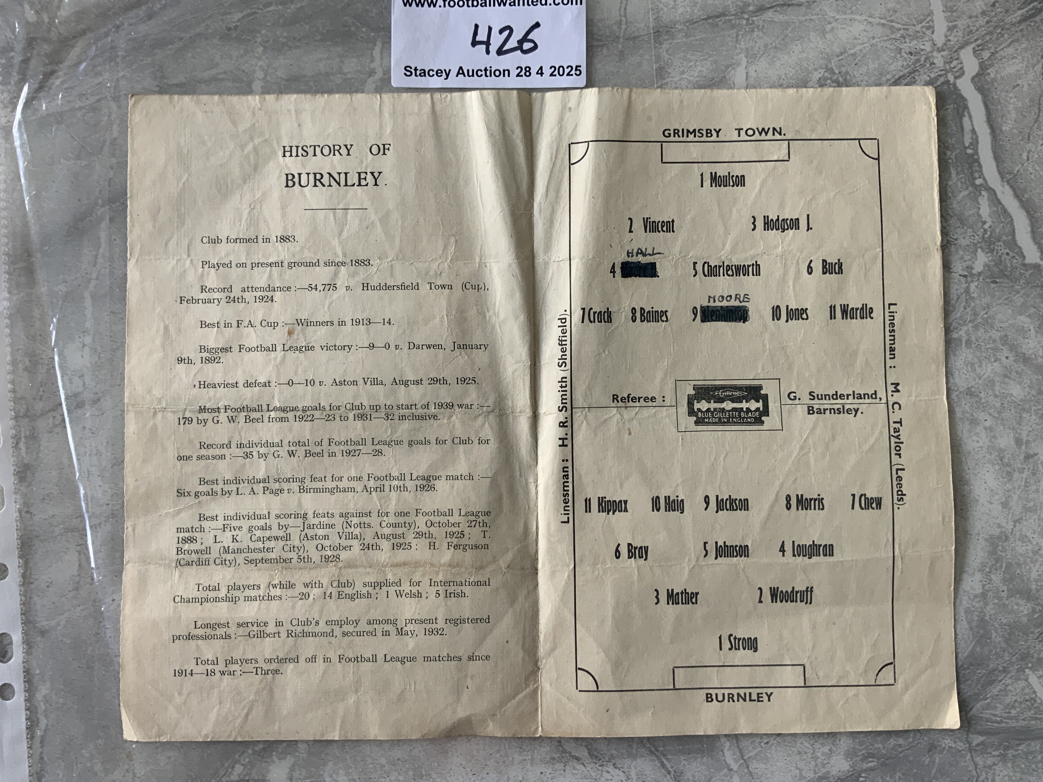 45/46 Grimsby Town v Burnley Football Programme: Four pager in fair/good condition with team changes. Fold.