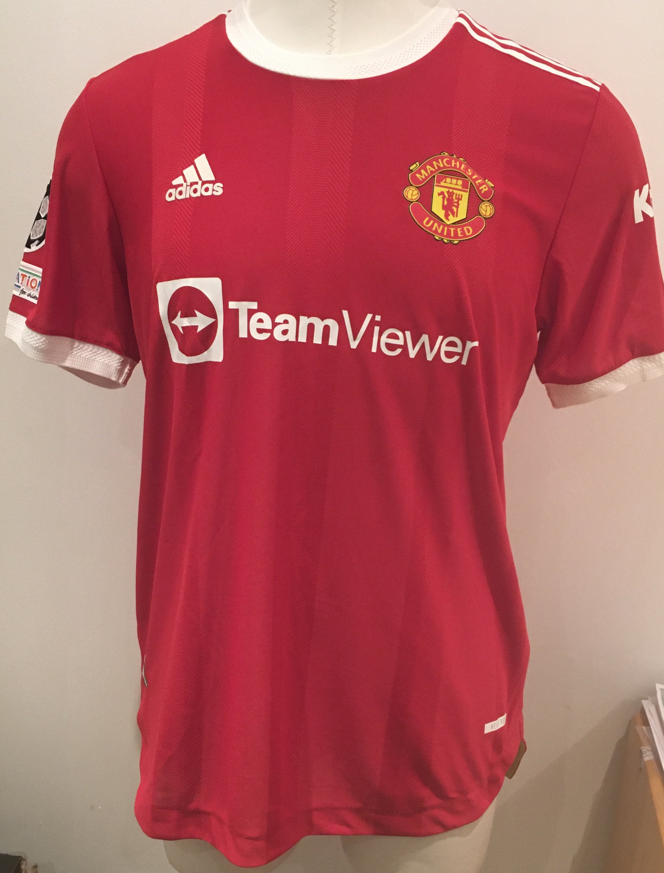 Telles 2021 - 2022 Manchester United Match Issued Football Shirt: Red short sleeve with Telles 27 to rear. UEFA Foundation badging. Signed to rear by Alex Telles and issued for match v Villarreal. Provided by Adidas during covid for player swaps. COA from reputable source.