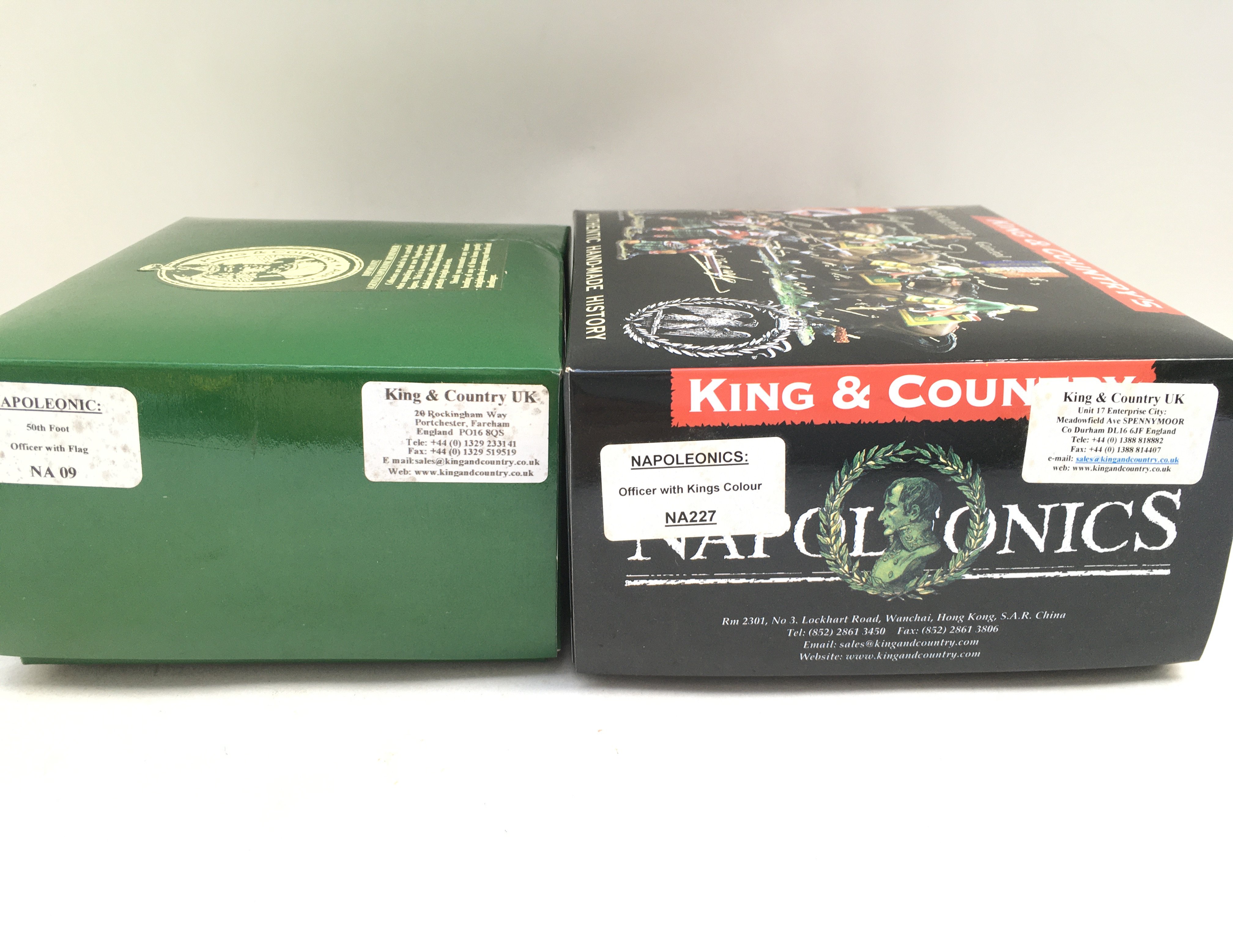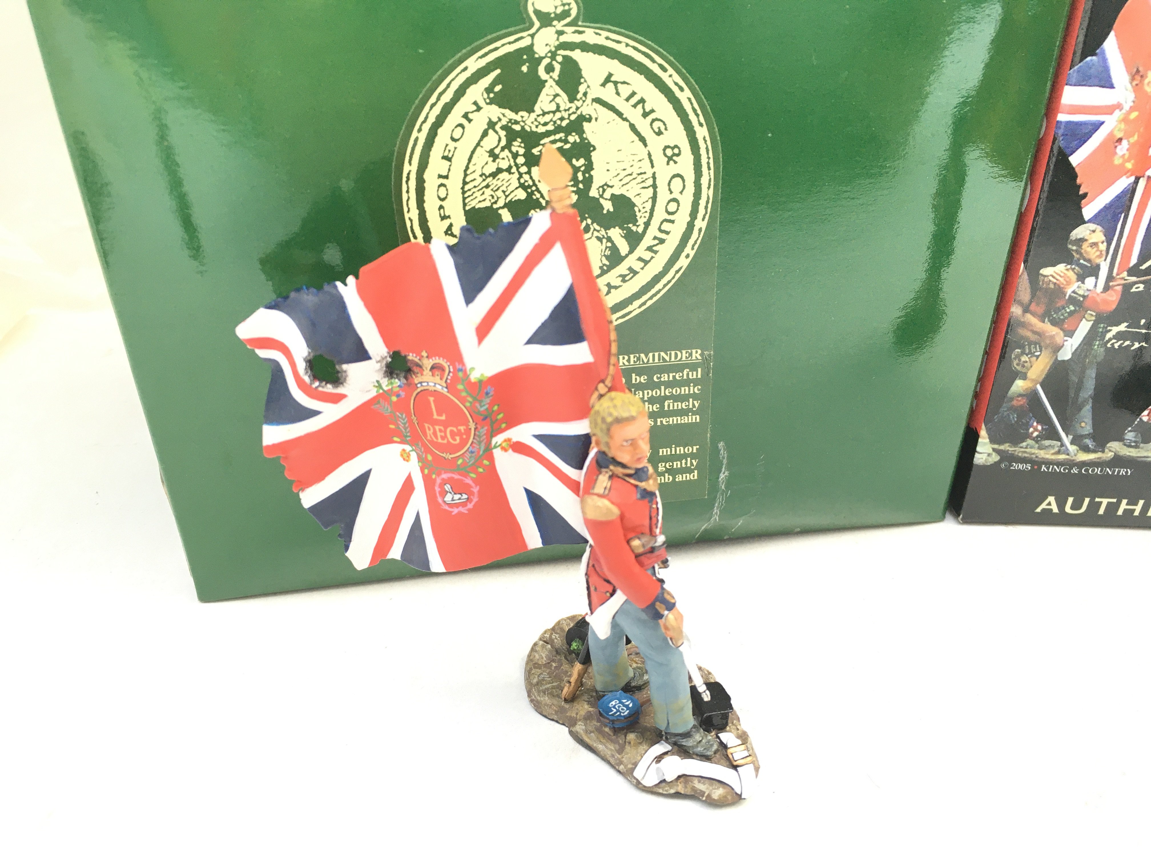 2 X Boxed King And Country Napoleonics Figures. 50th Foot Officer With Flag And Officer With Kings Colour.(2).
