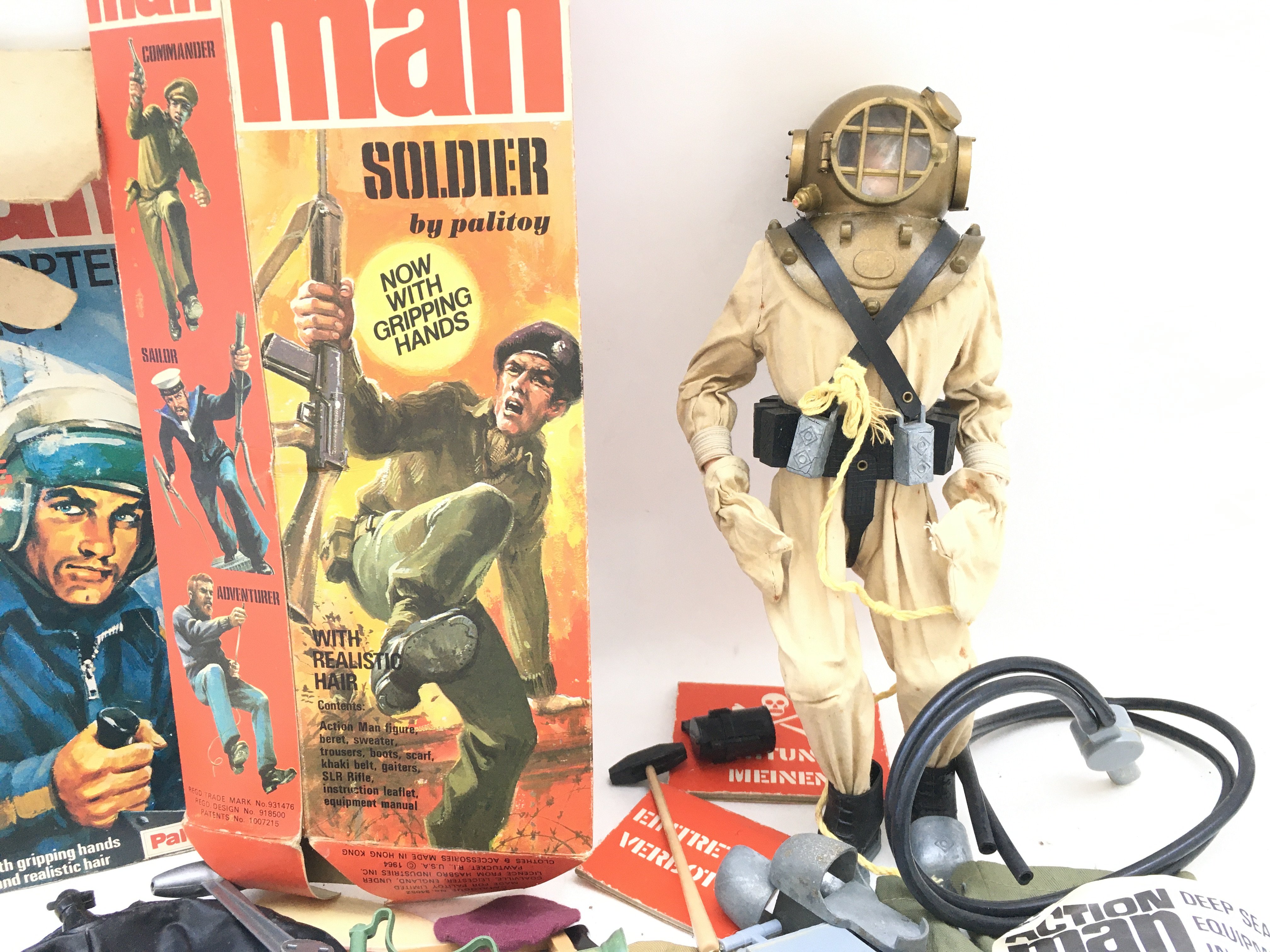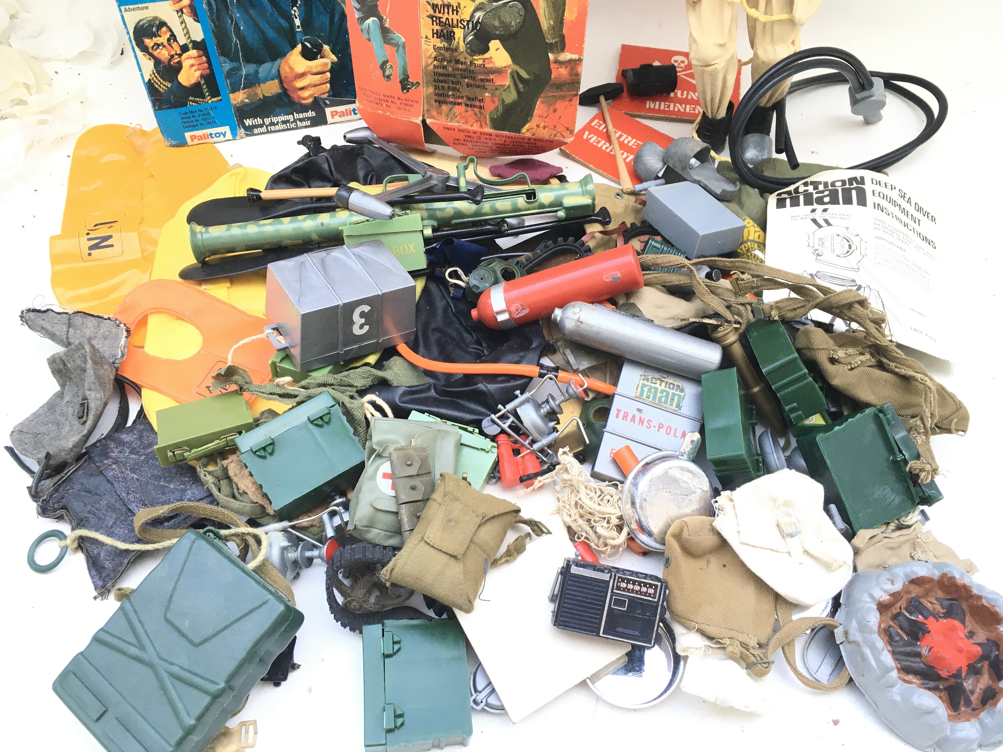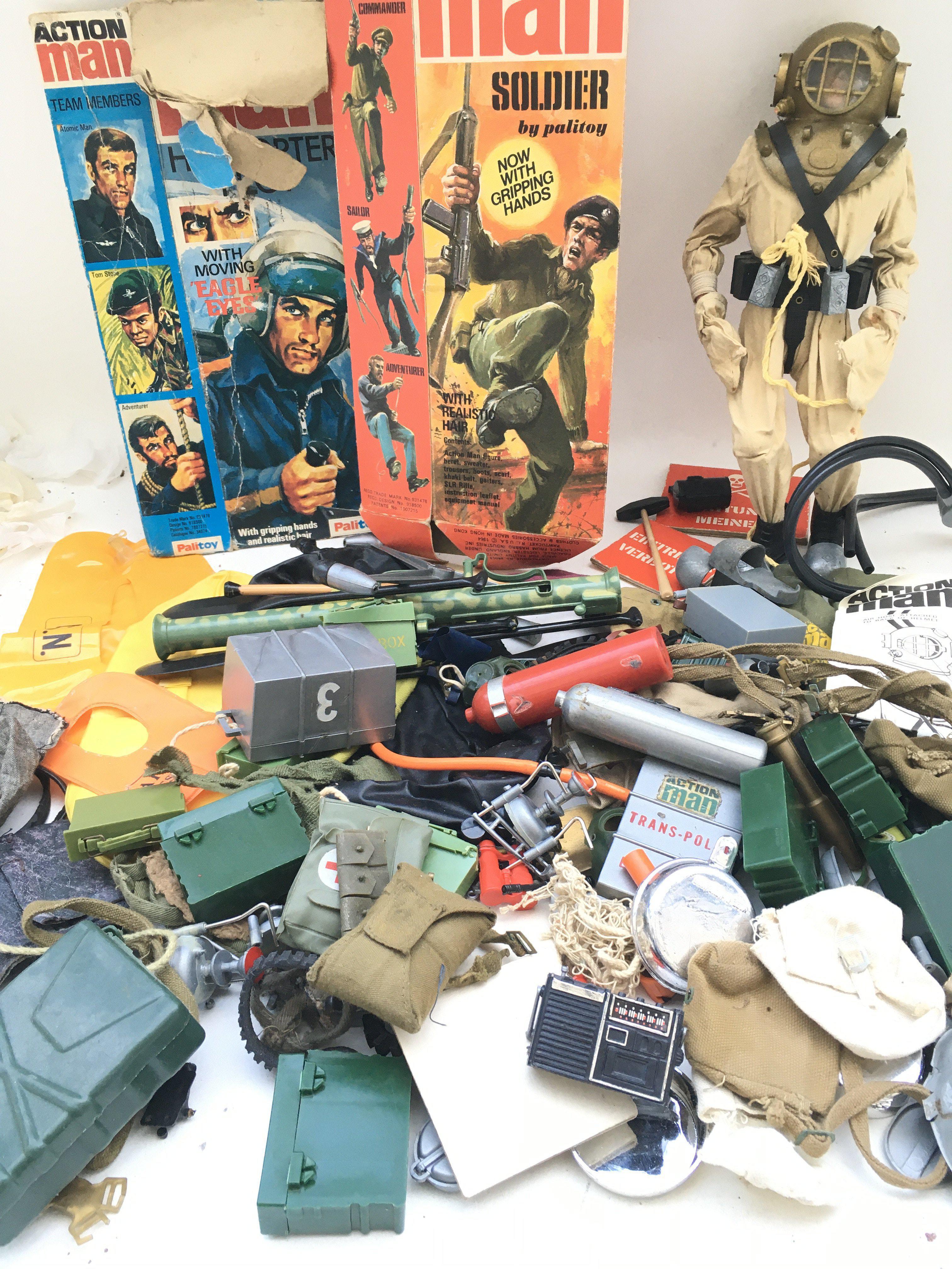 A Collection of Action Man Accessories Including A Deep Sea Diver and Empty Boxes. No Reserve.
