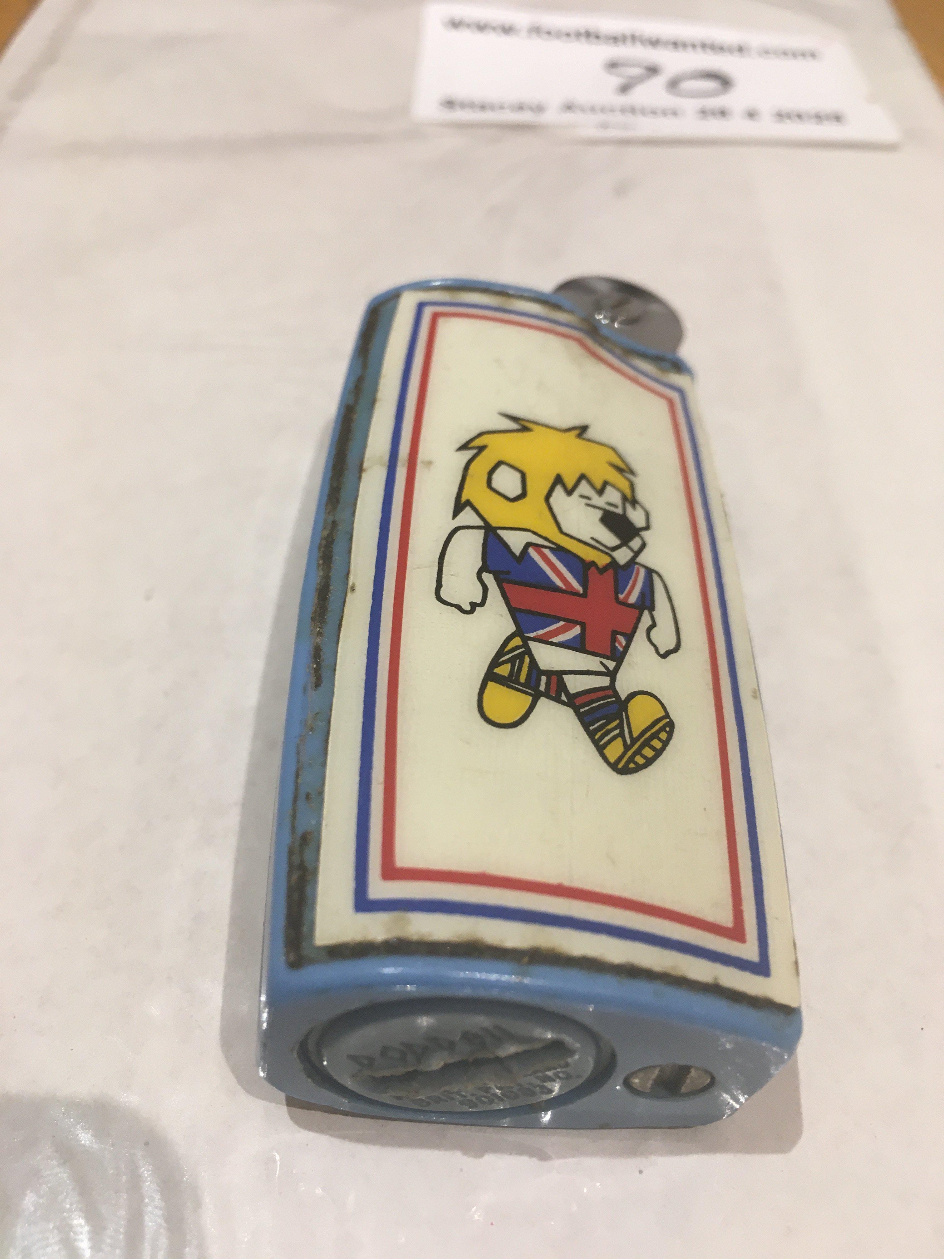 1966 World Cup Willie Football Lighter: Light blue plastic lighter with WC Willie one side and World Cup 1966 the other. Rare item which is untested.