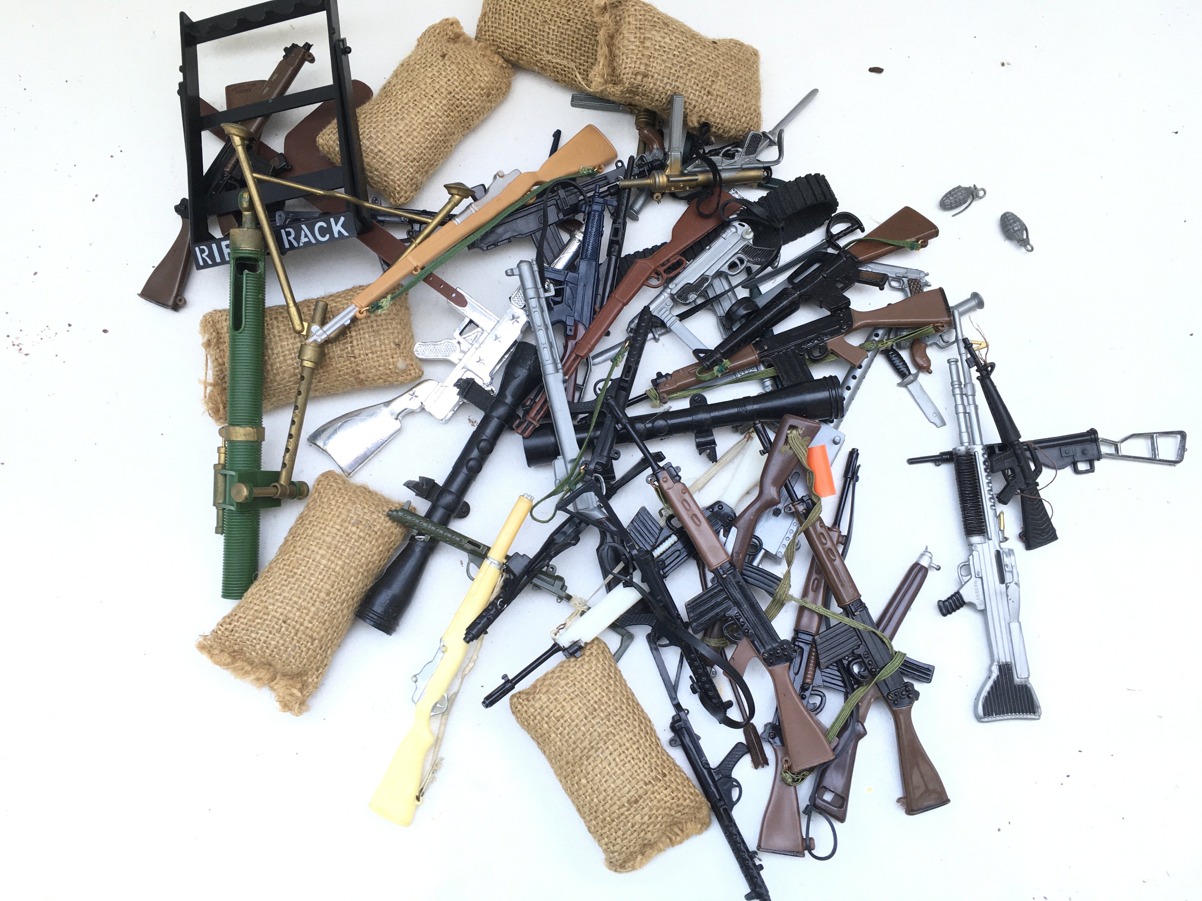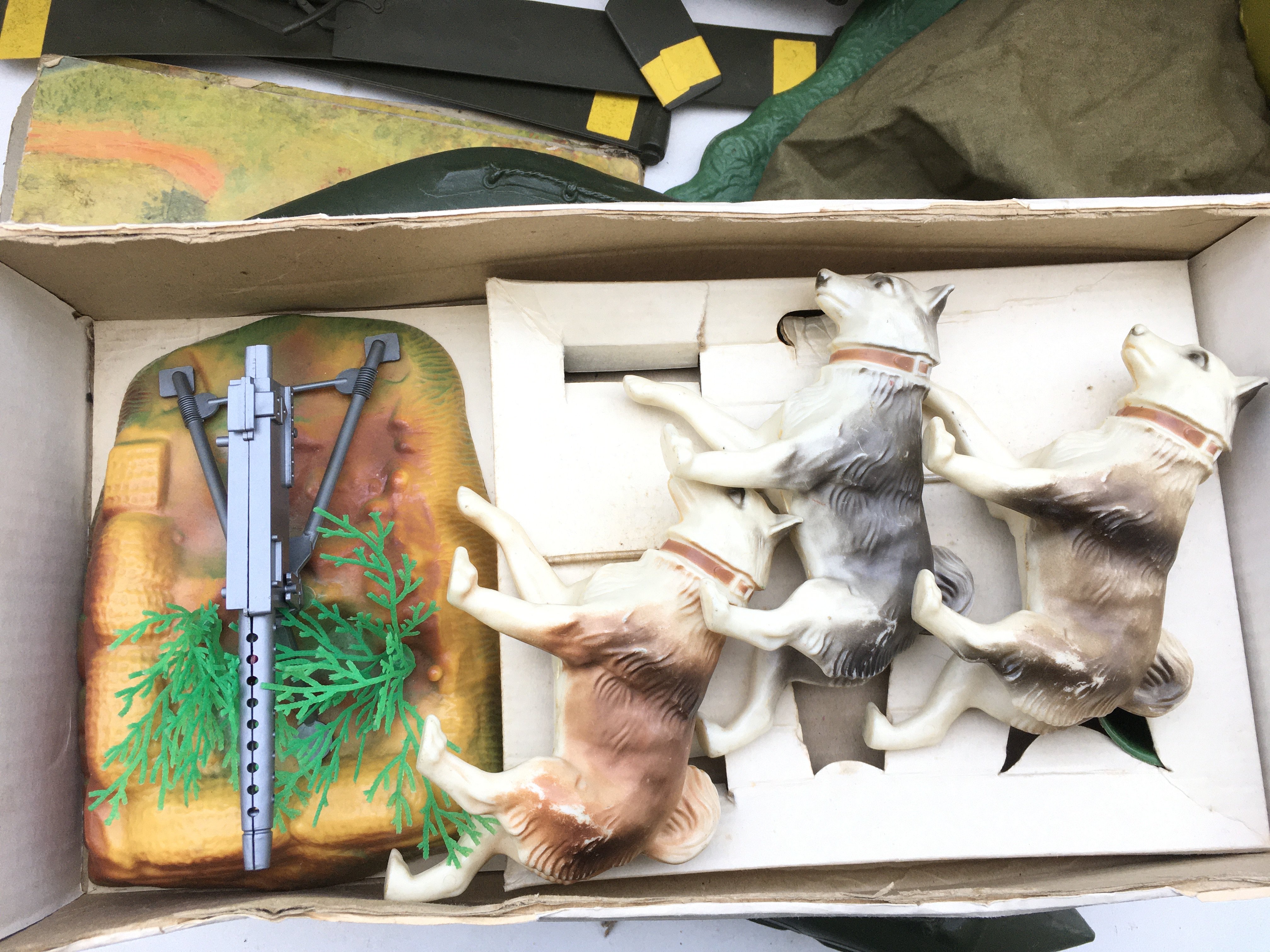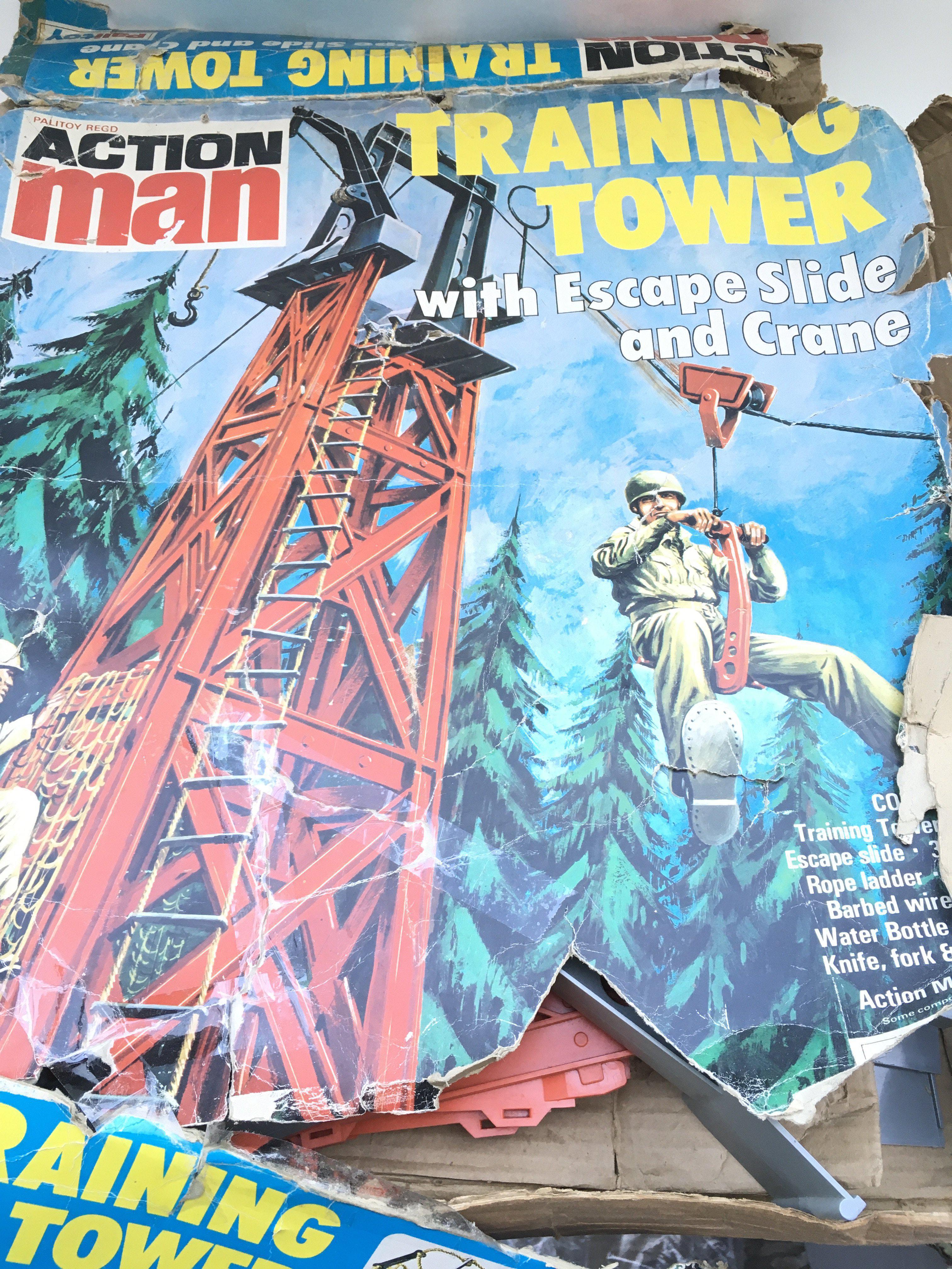 A Collection of Action Man Vehicles And accessories including a Boxed machine gun emplacement And Training Tower. Dogs. Guns etc. Ideal for Spare Parts.No reserve. (2).