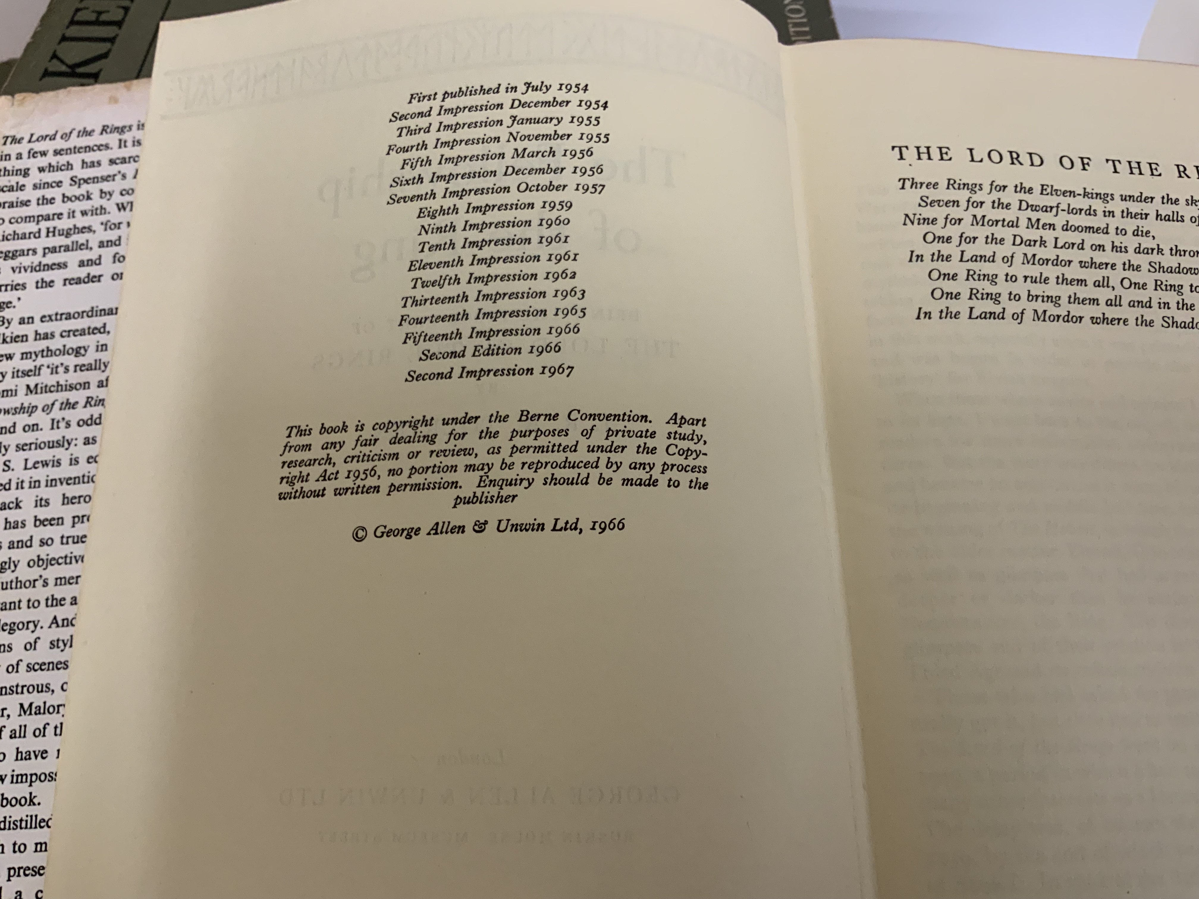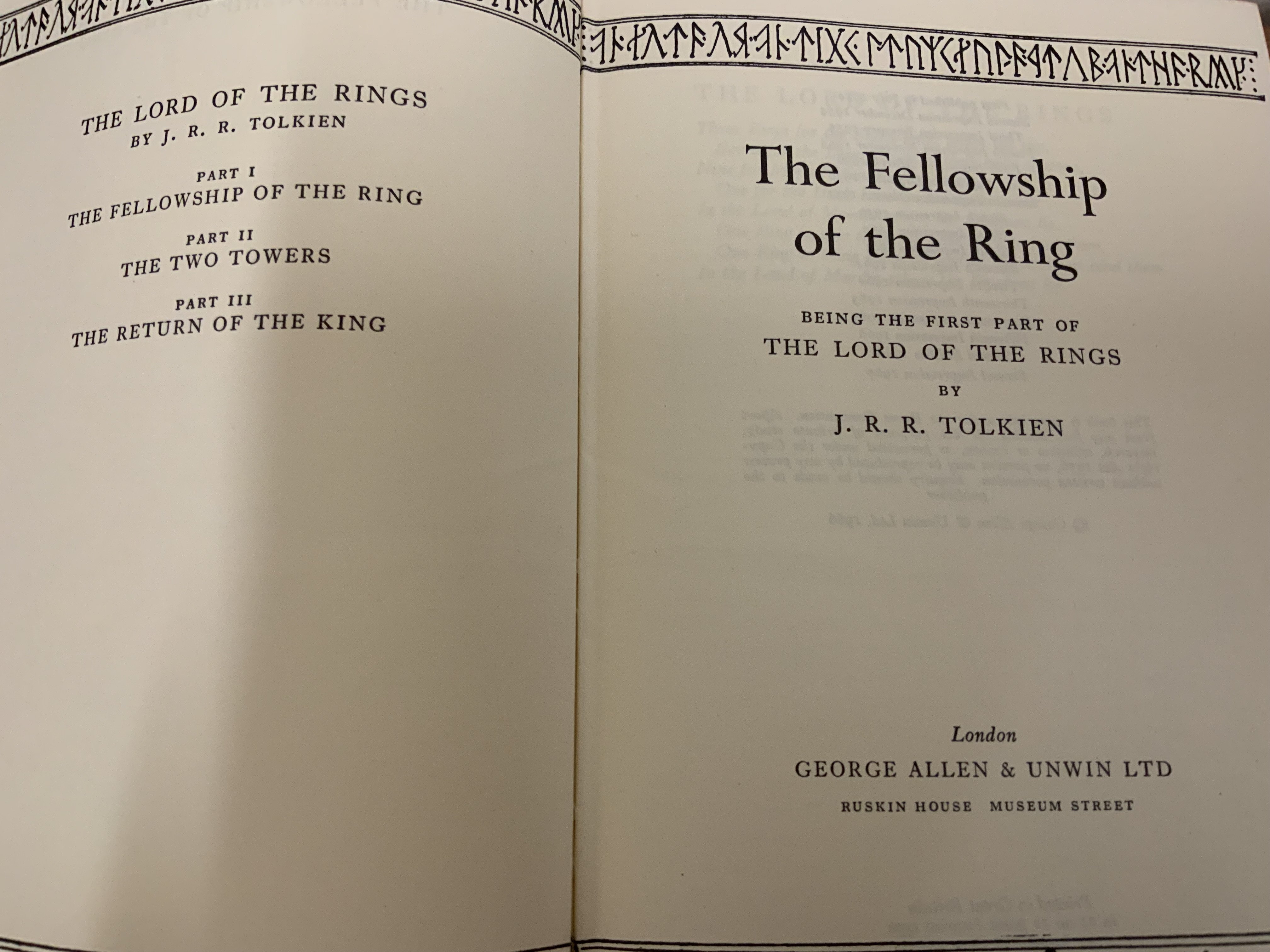 The Lord of The Rings: 1967 second impression three volumes of the Revised Edition comprising of The Fellowship of the Ring The Two Towers The Return of The King J R R Tolkien (B)